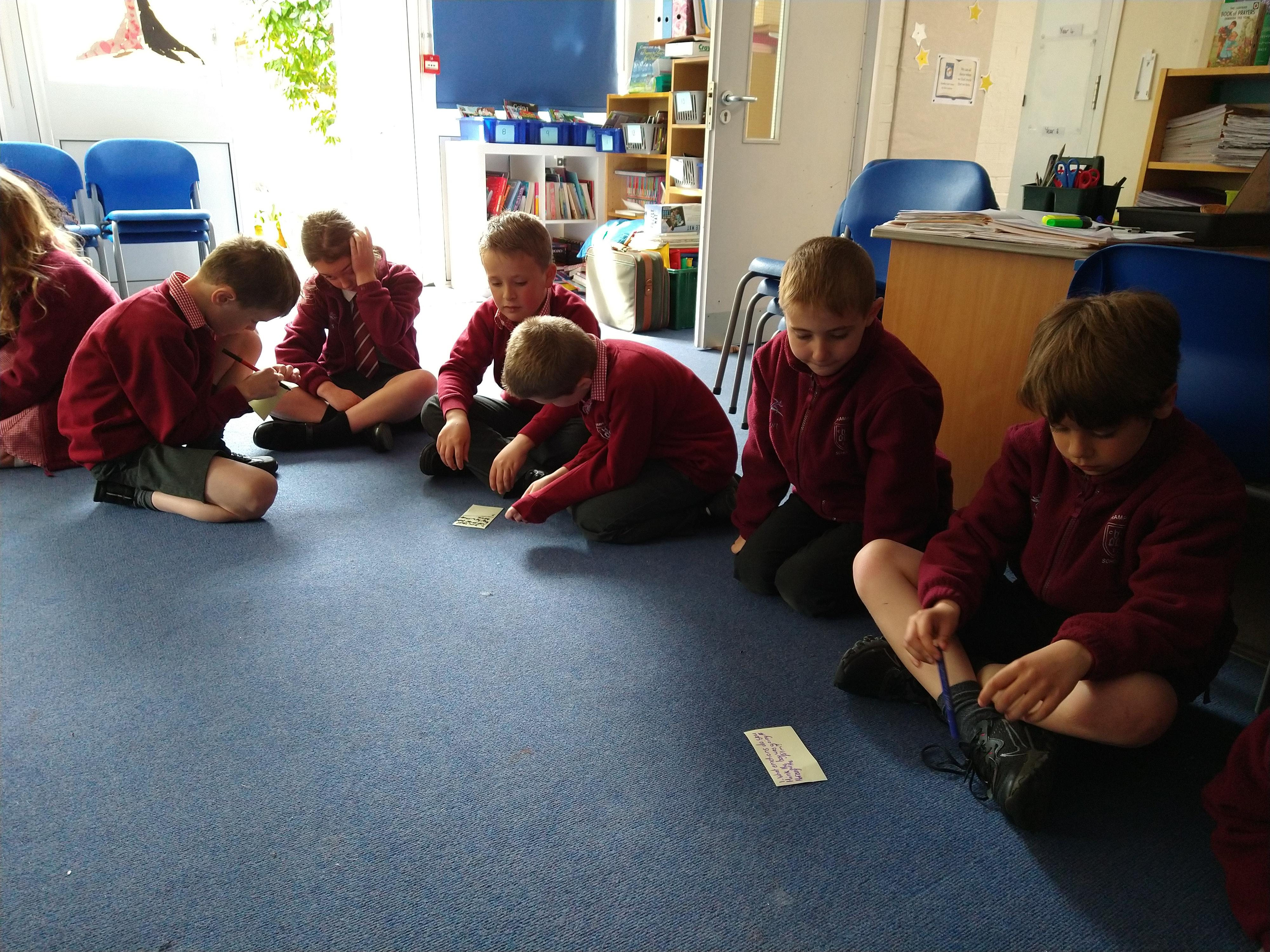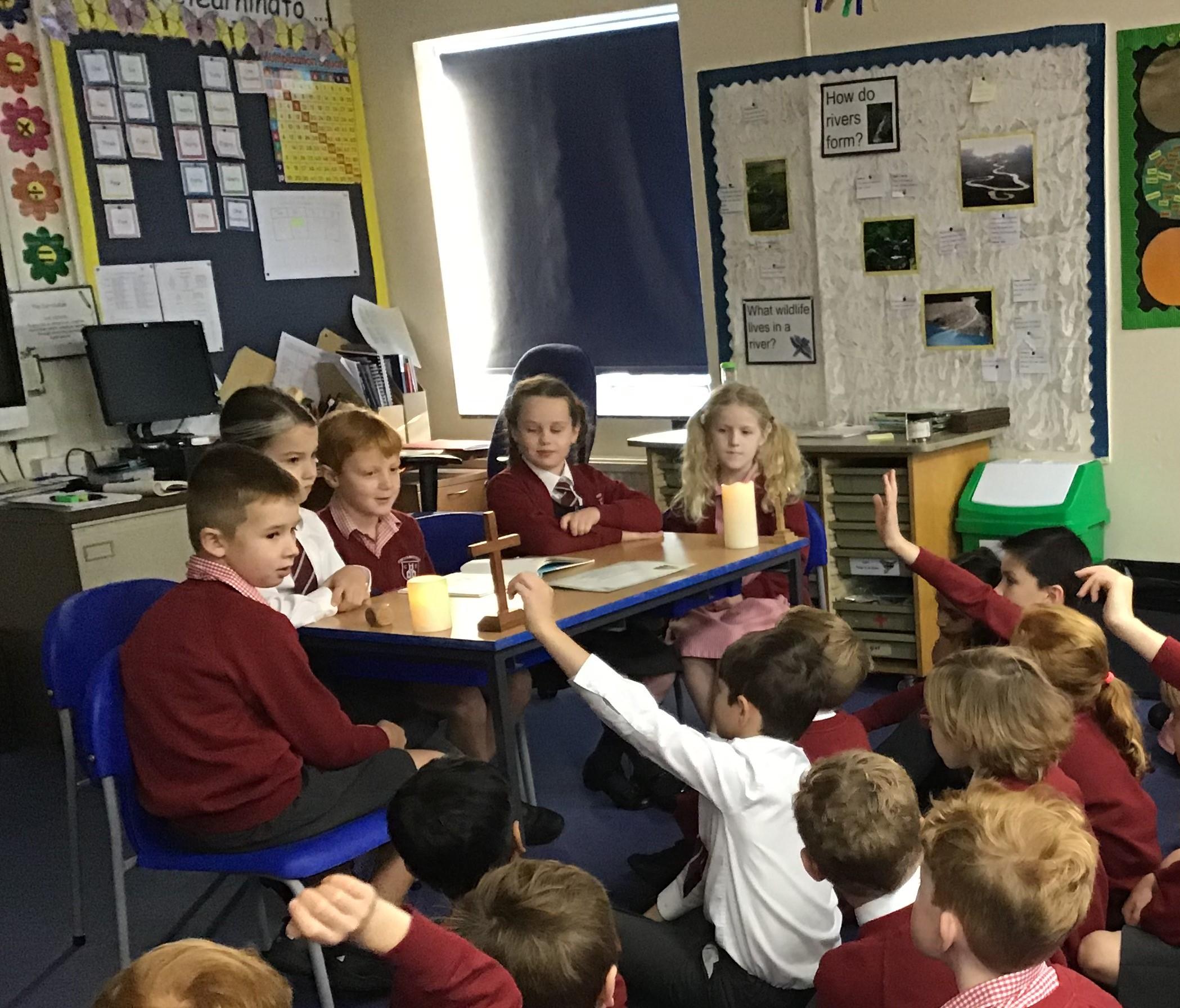 We had a really thoughtful morning thinking about the 40 days Jesus spent in the desert after he was Baptised and how he was tempted by the Devil. We thought really carefully, in small focus groups, and came up with several great philosophical questions before choosing one for our whole class discussion.