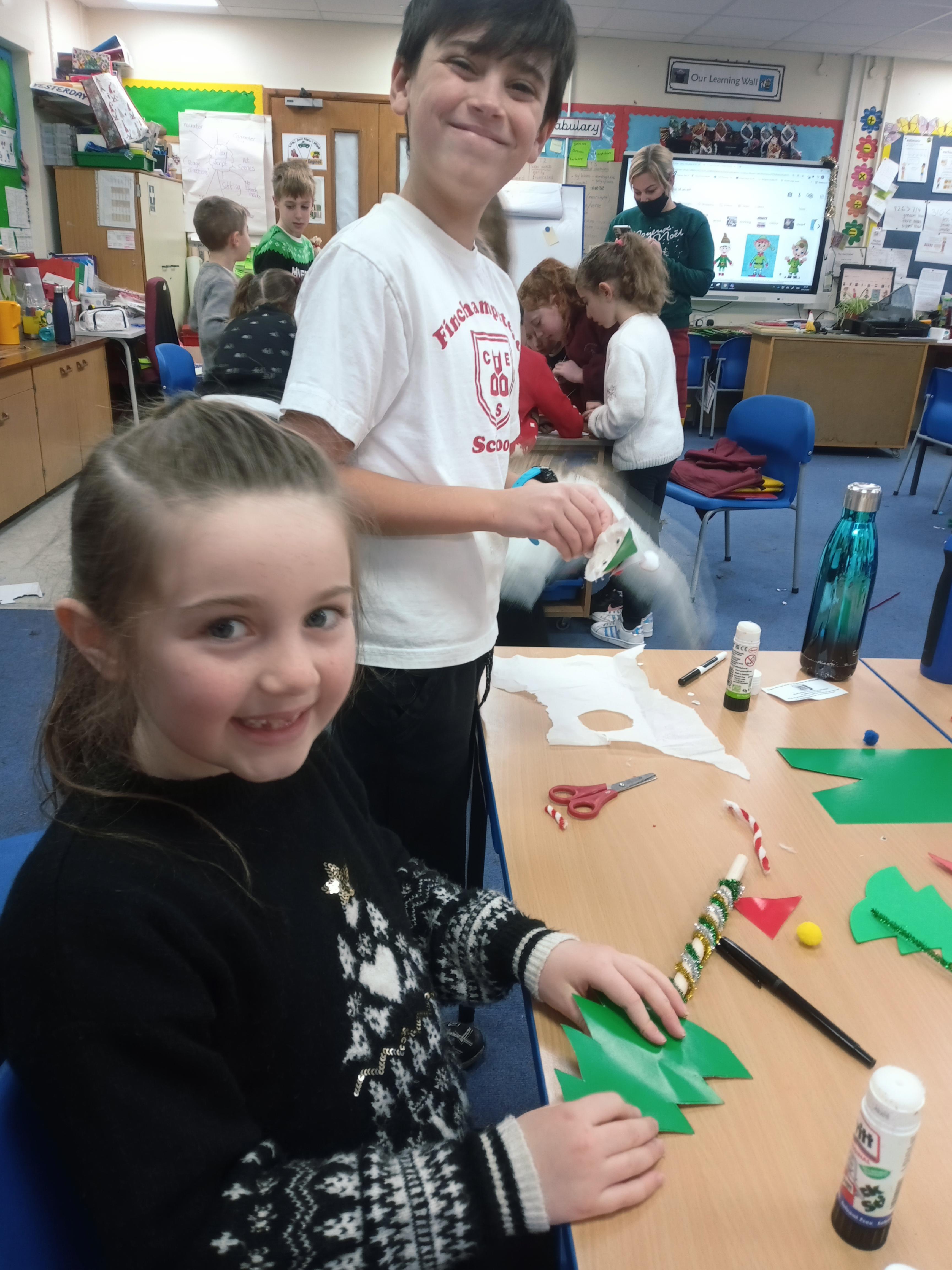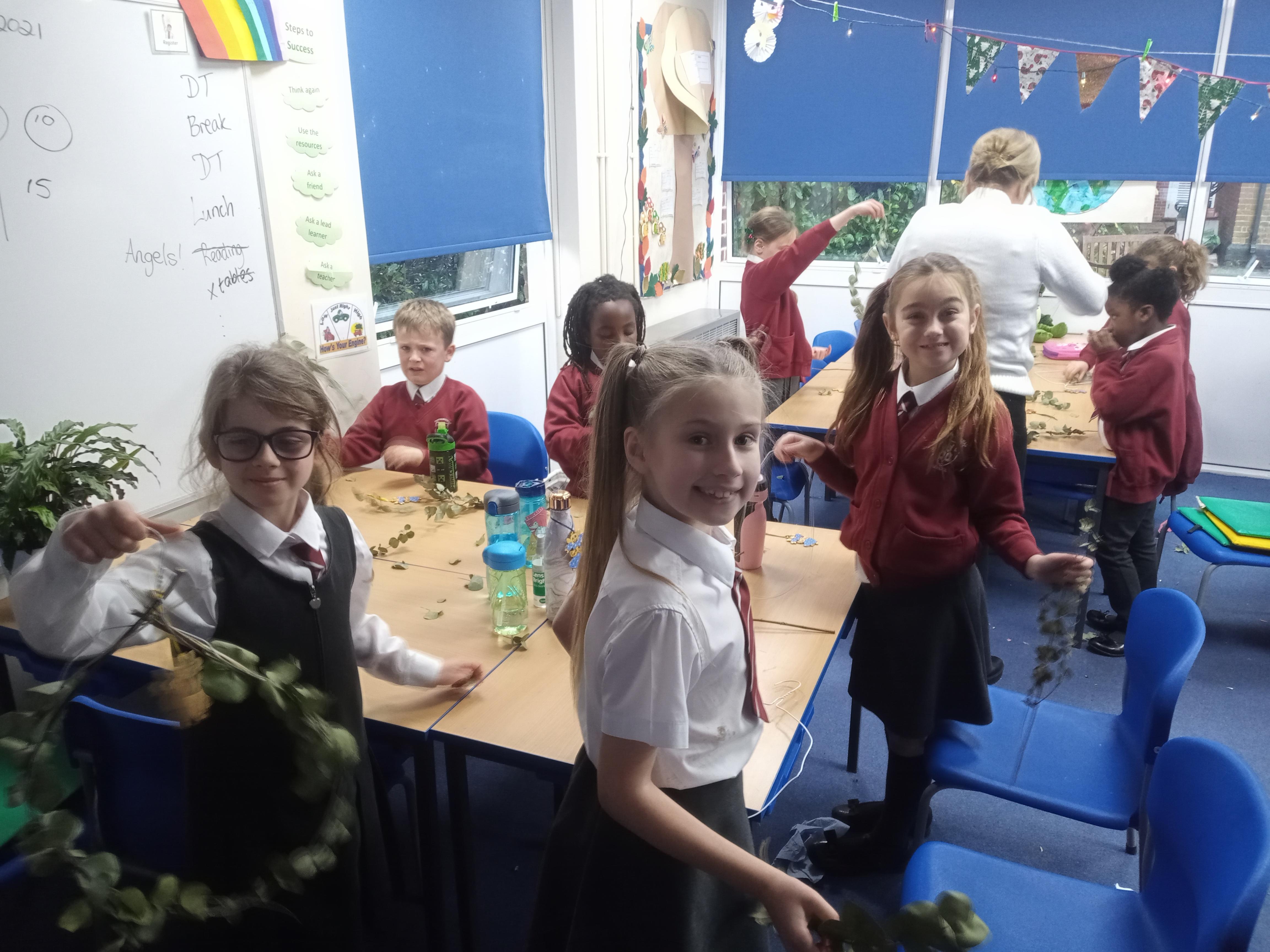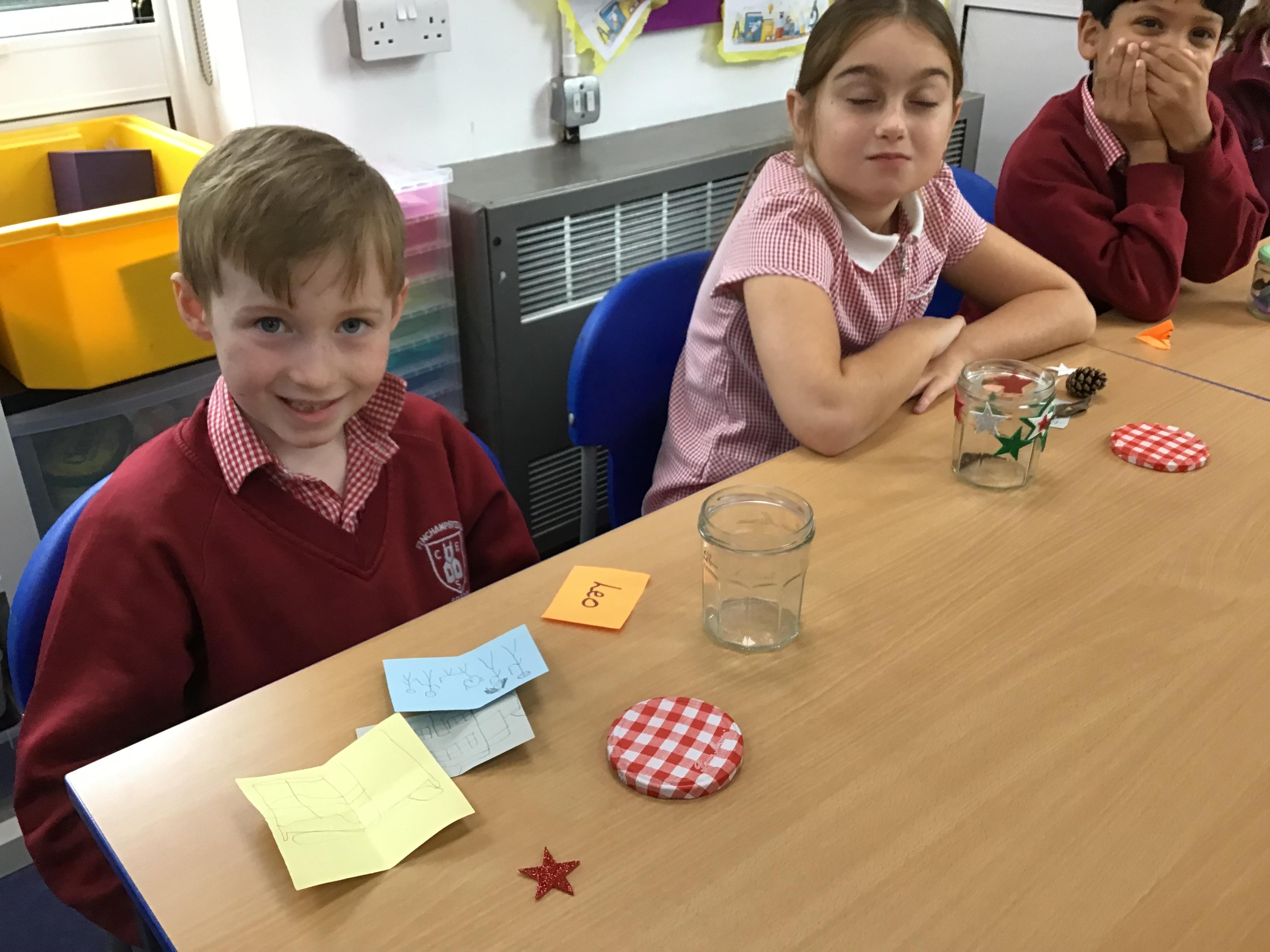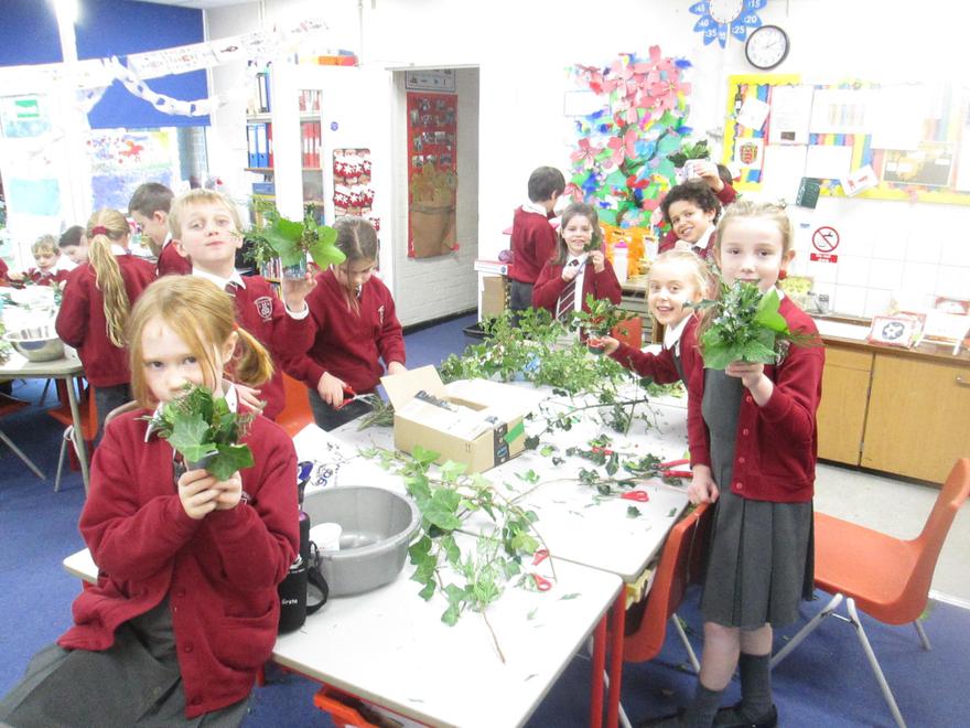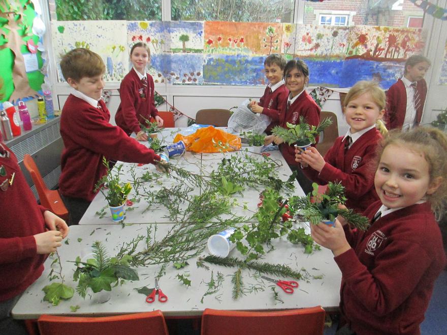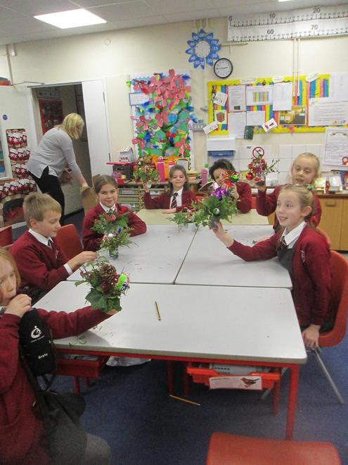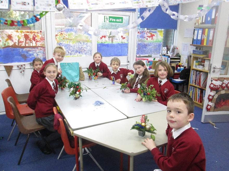 Today we have been working very hard to make super table decorations. We used evergreen leaves (to represent the everlasting love of God) we used candy canes (to represent how sweet life can be) and we used oasis to hold it all together (representing our families). We hope you like them...