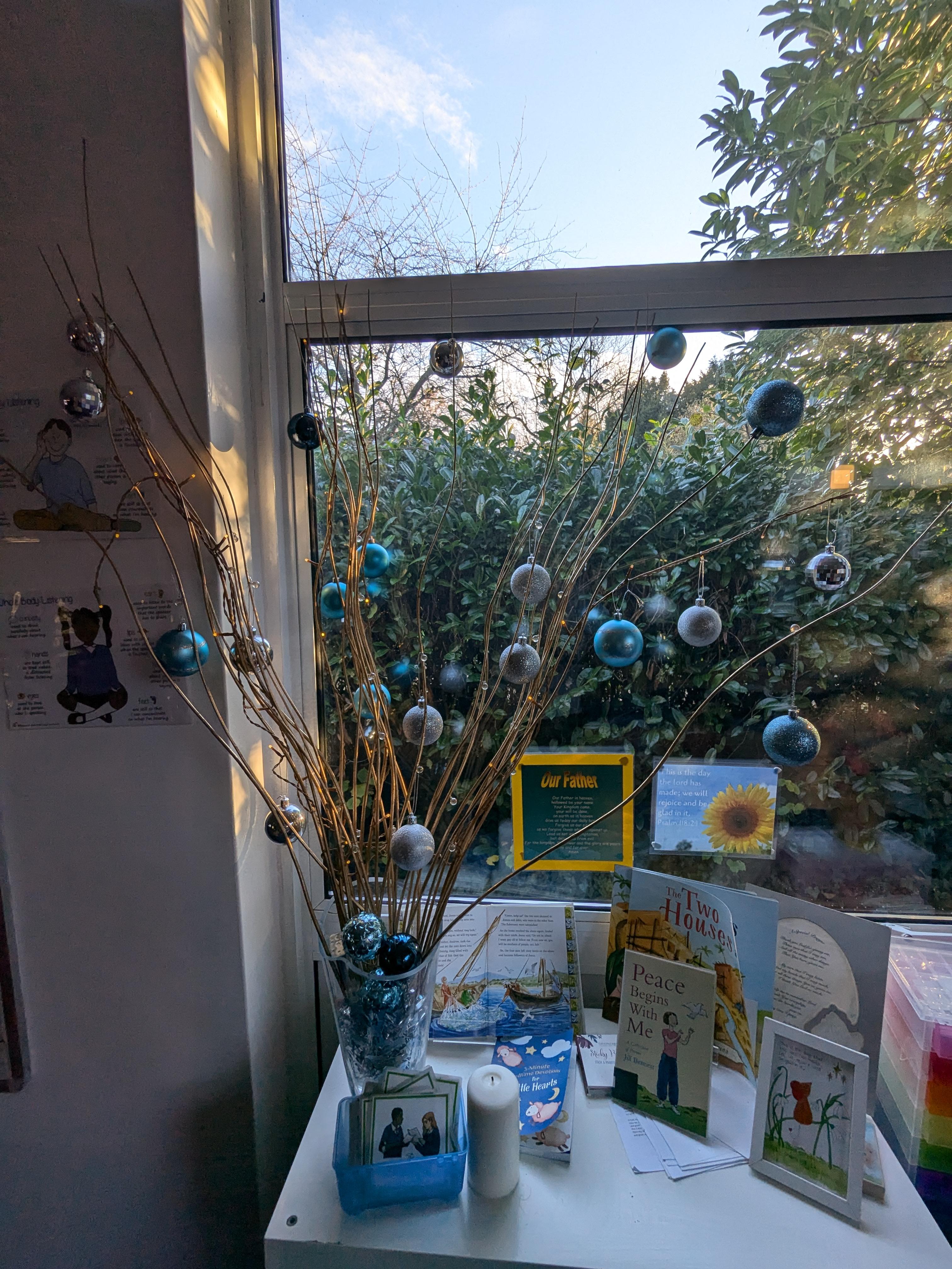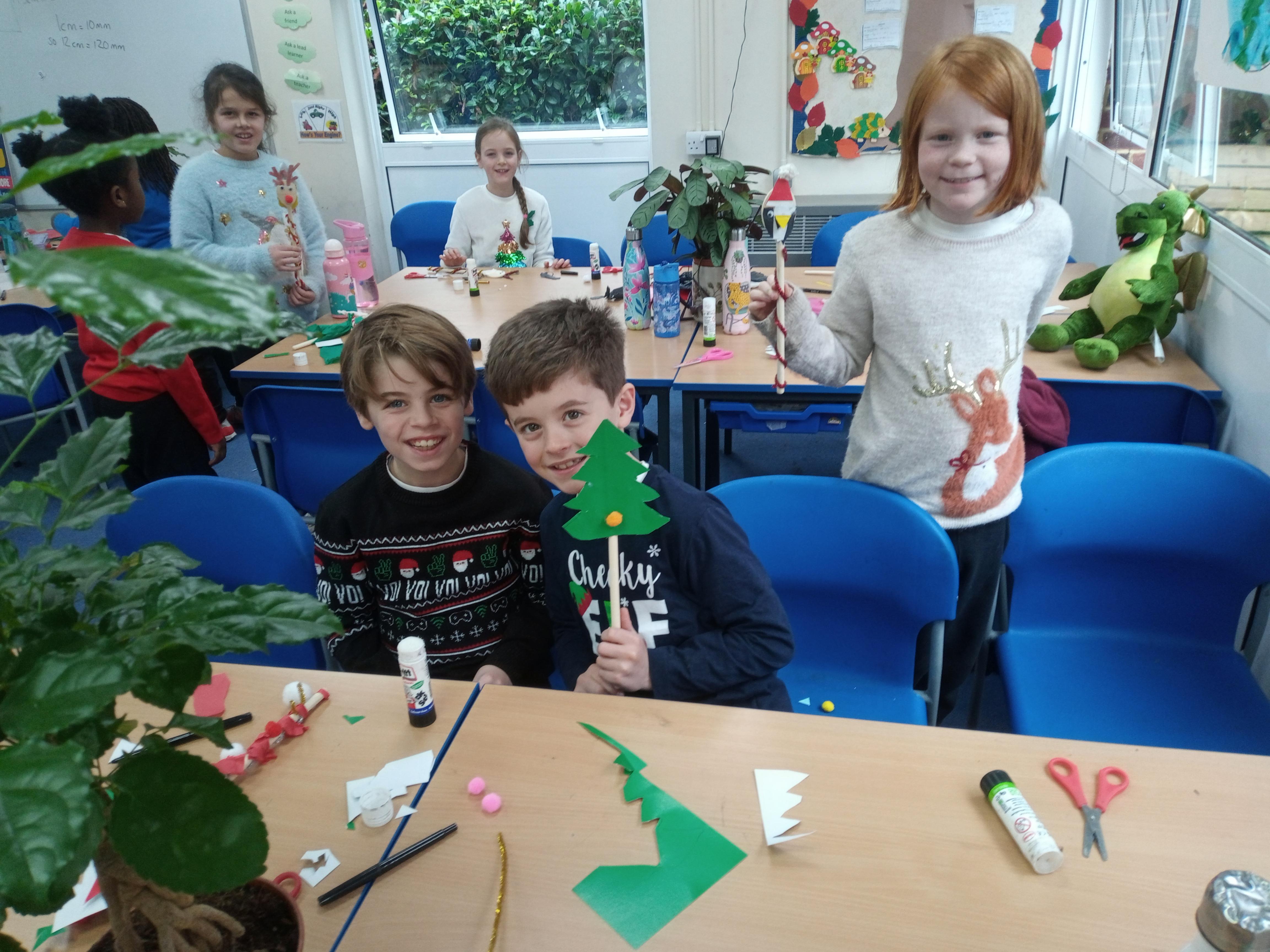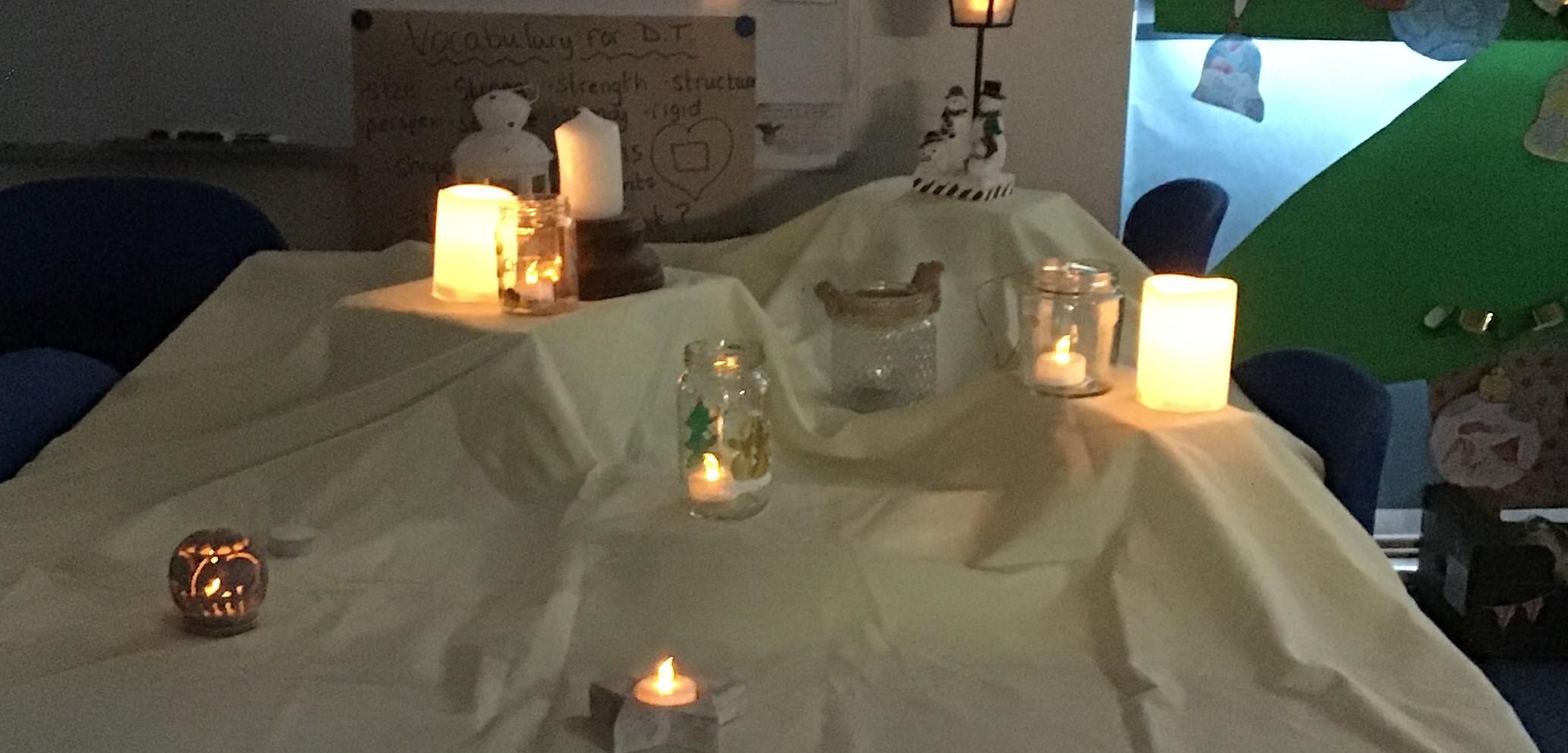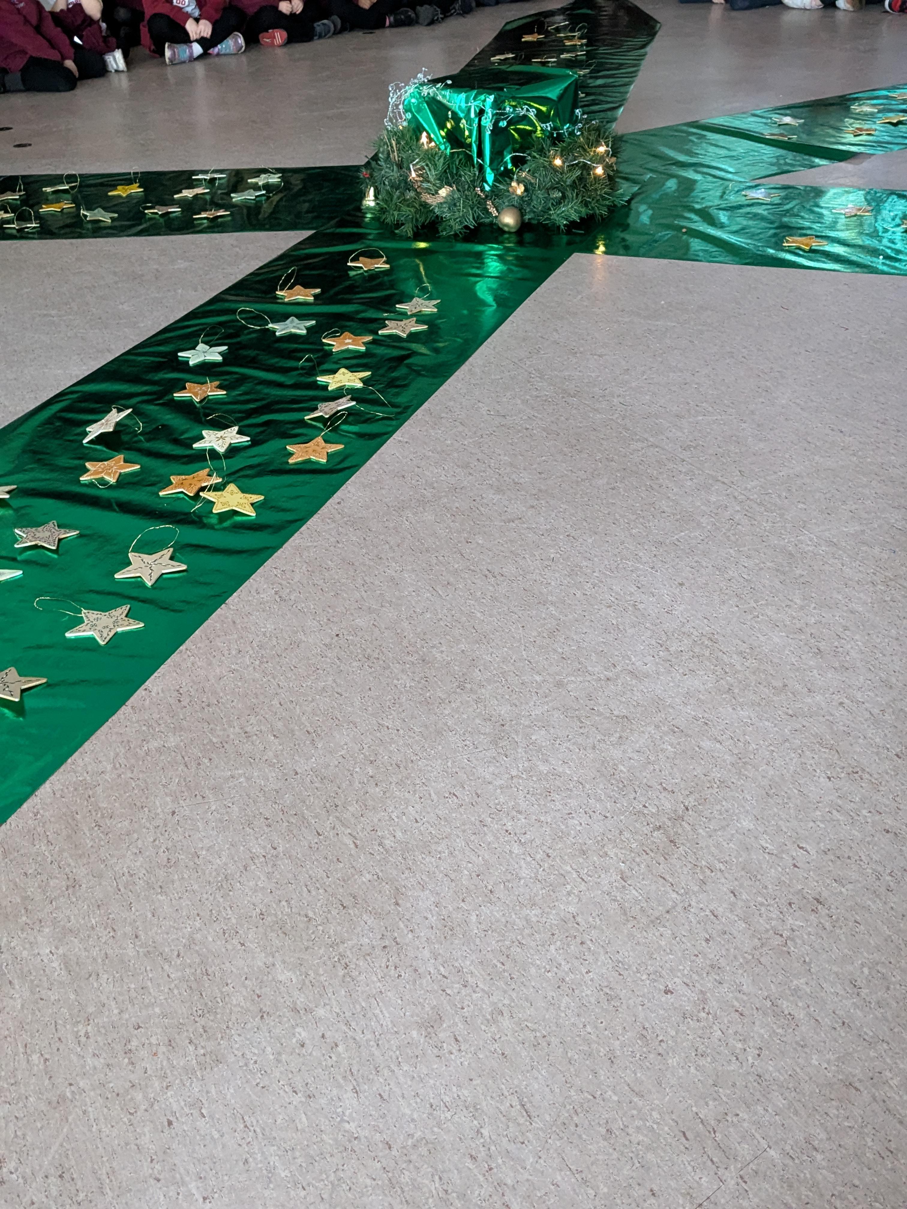 Today we have been working very hard to make super table decorations. We used evergreen leaves (to represent the everlasting love of God) we used candy canes (to represent how sweet life can be) and we used oasis to hold it all together (representing our families). We hope you like them...