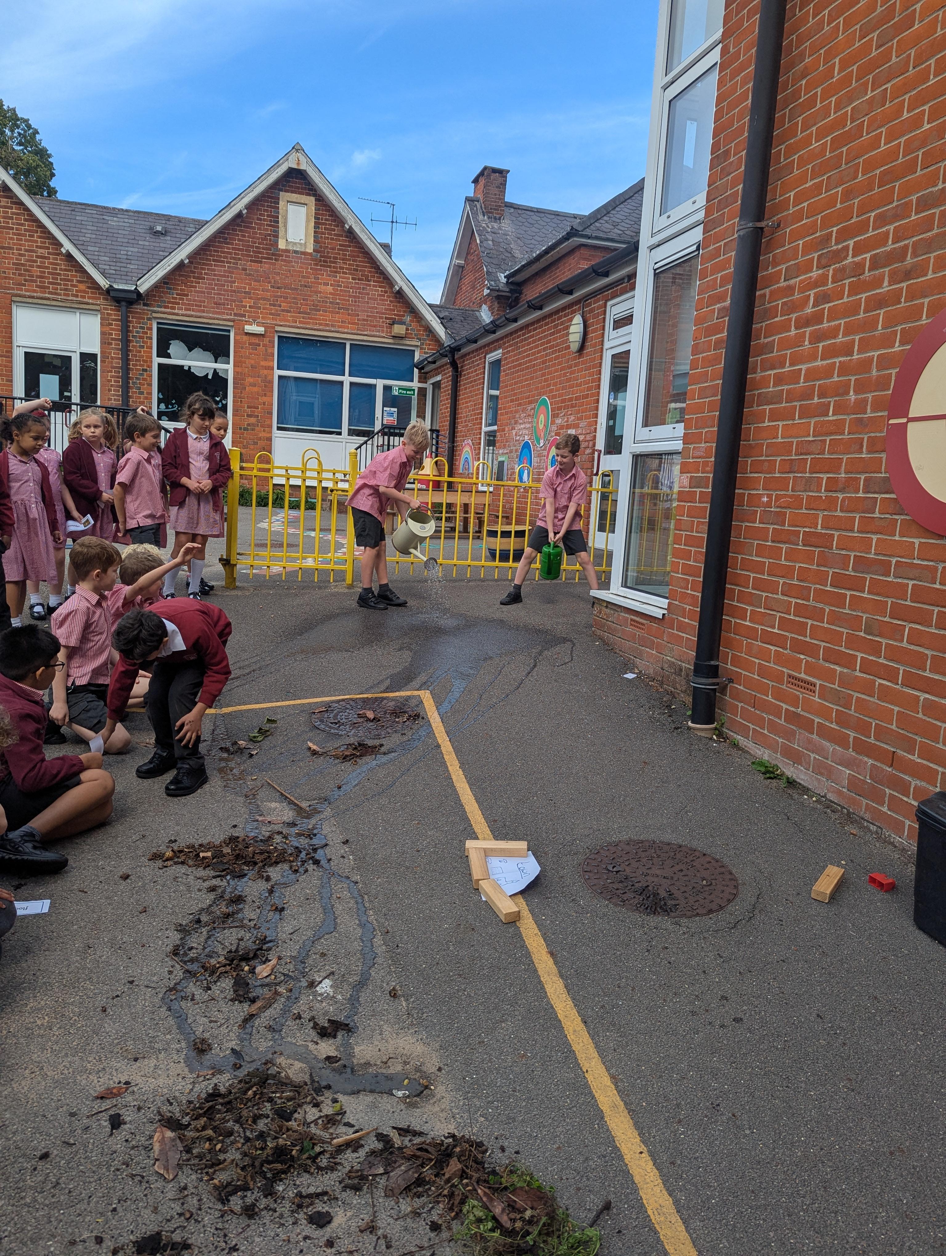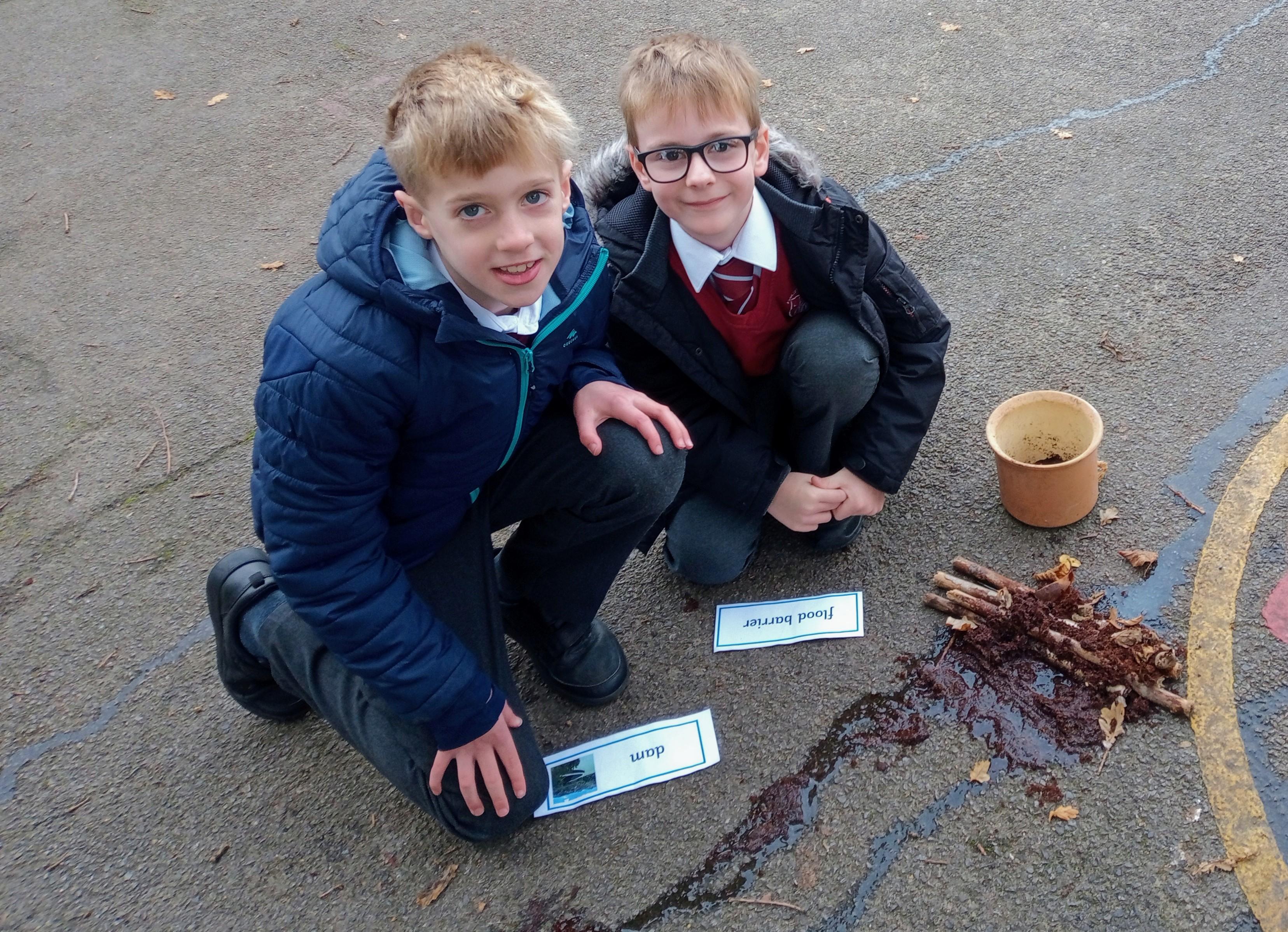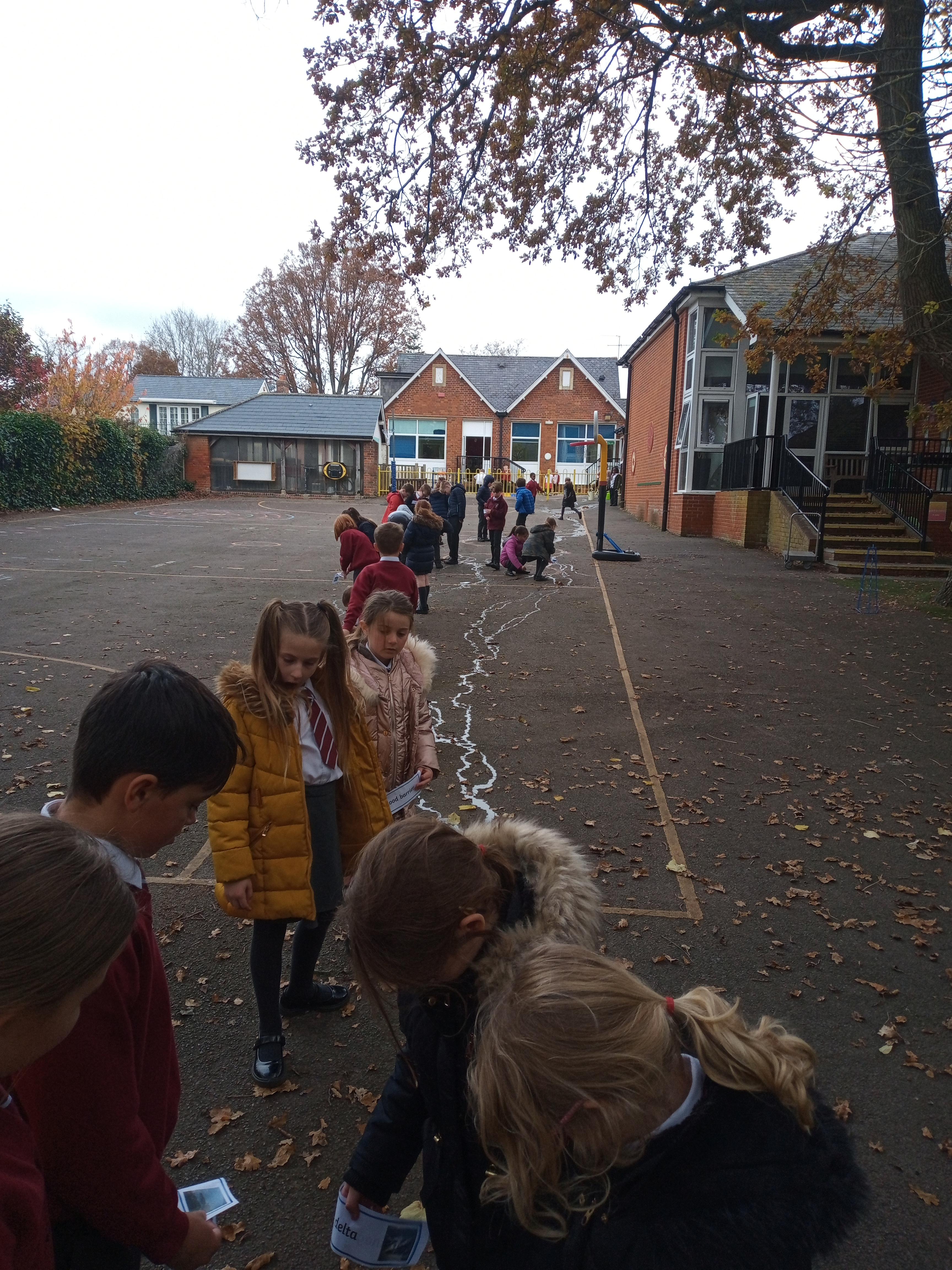 We had an active and exciting lesson on river terms today as we made our own river in the playground. We watched in amazement as all the features appeared before our eyes. It was a great way to learn terms such as confluence, tributary, delta, source, mouth and meander. We even built dams to cause flood plains.