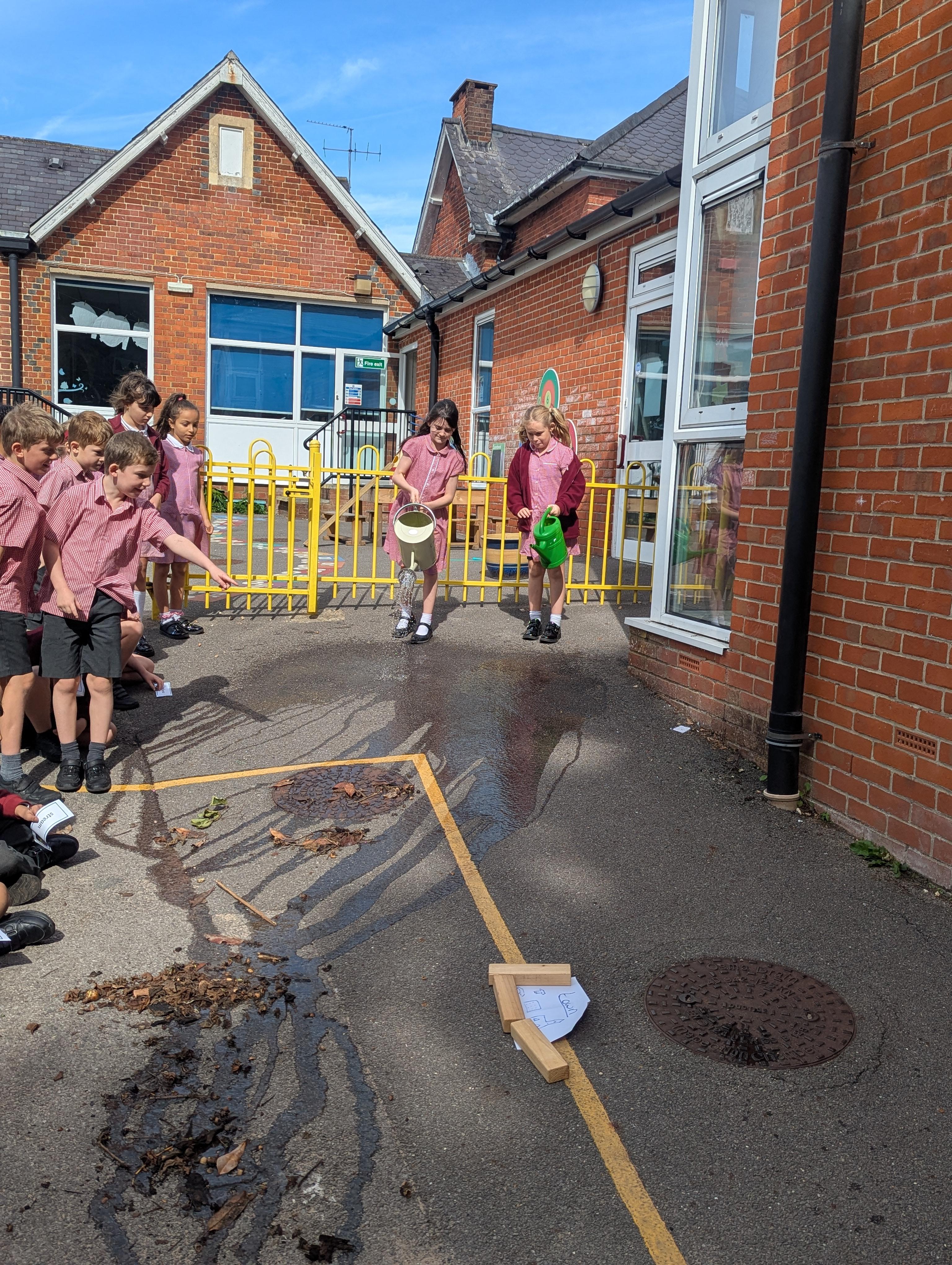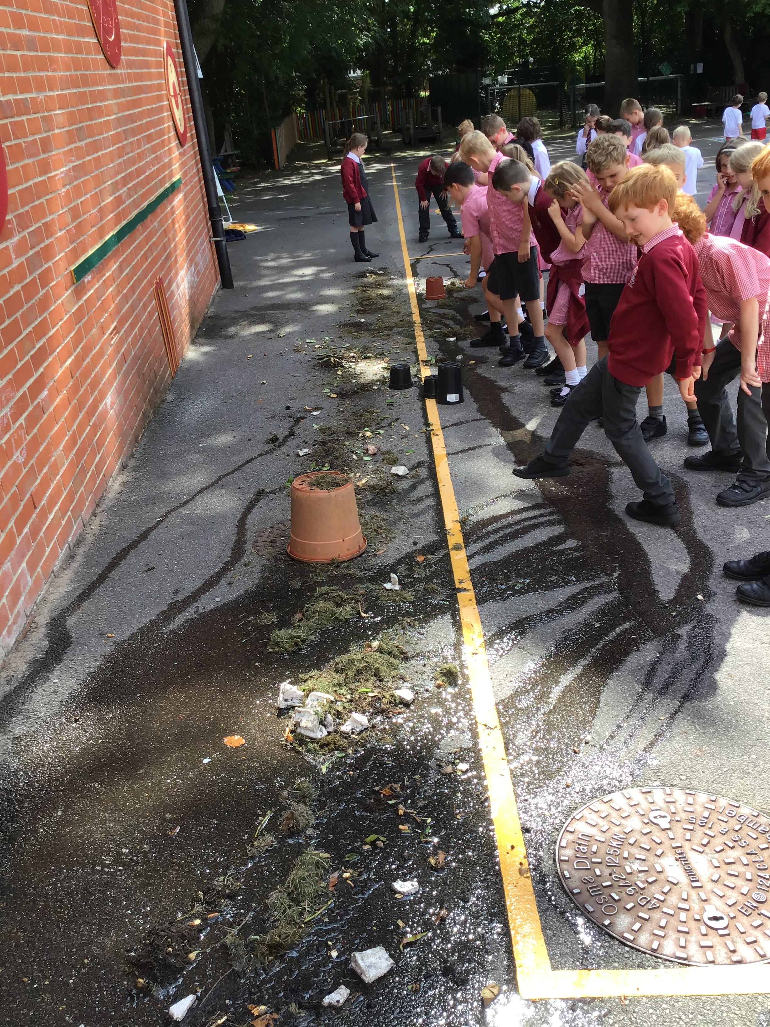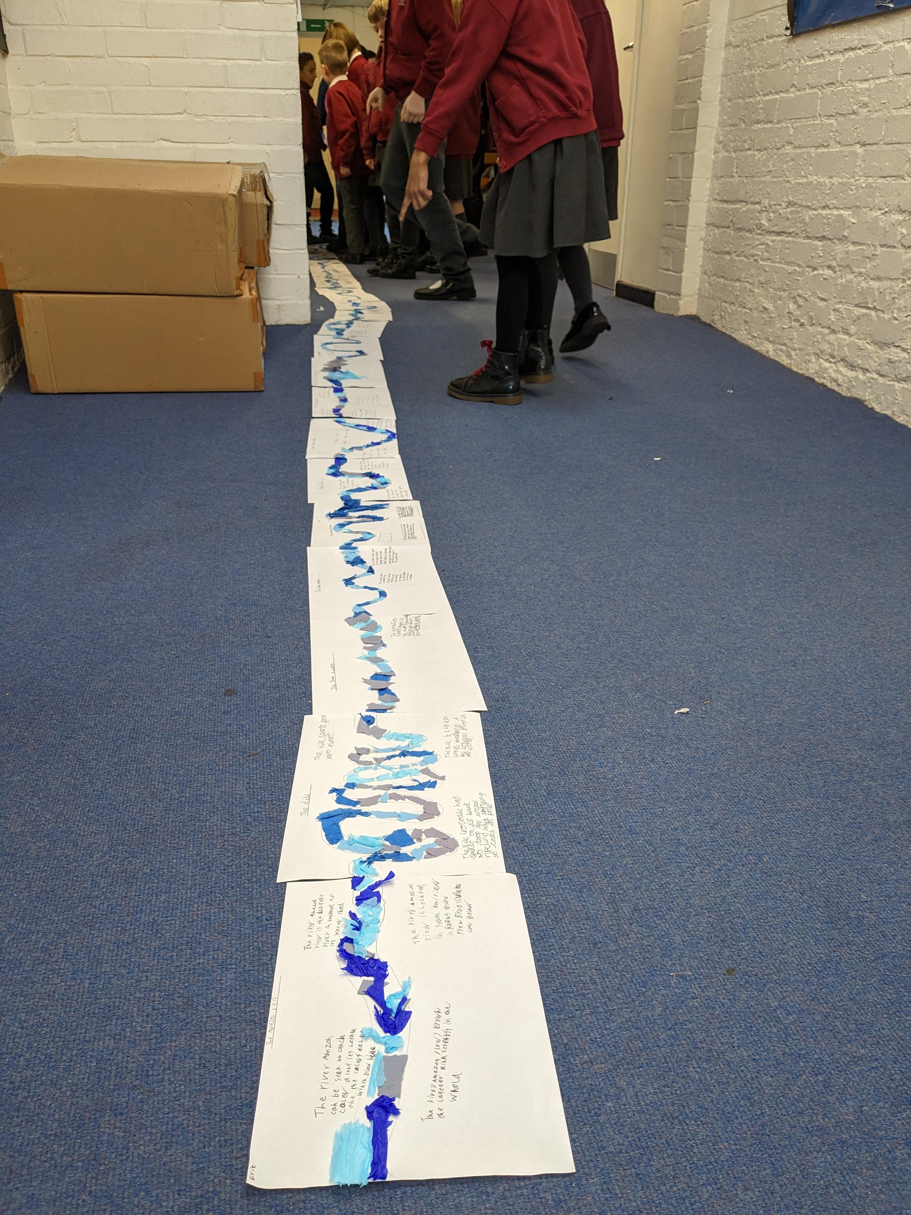 We had an active and exciting lesson on river terms today as we made our own river in the playground. We watched in amazement as all the features appeared before our eyes. It was a great way to learn terms such as confluence, tributary, delta, source, mouth and meander. We even built dams to cause flood plains.