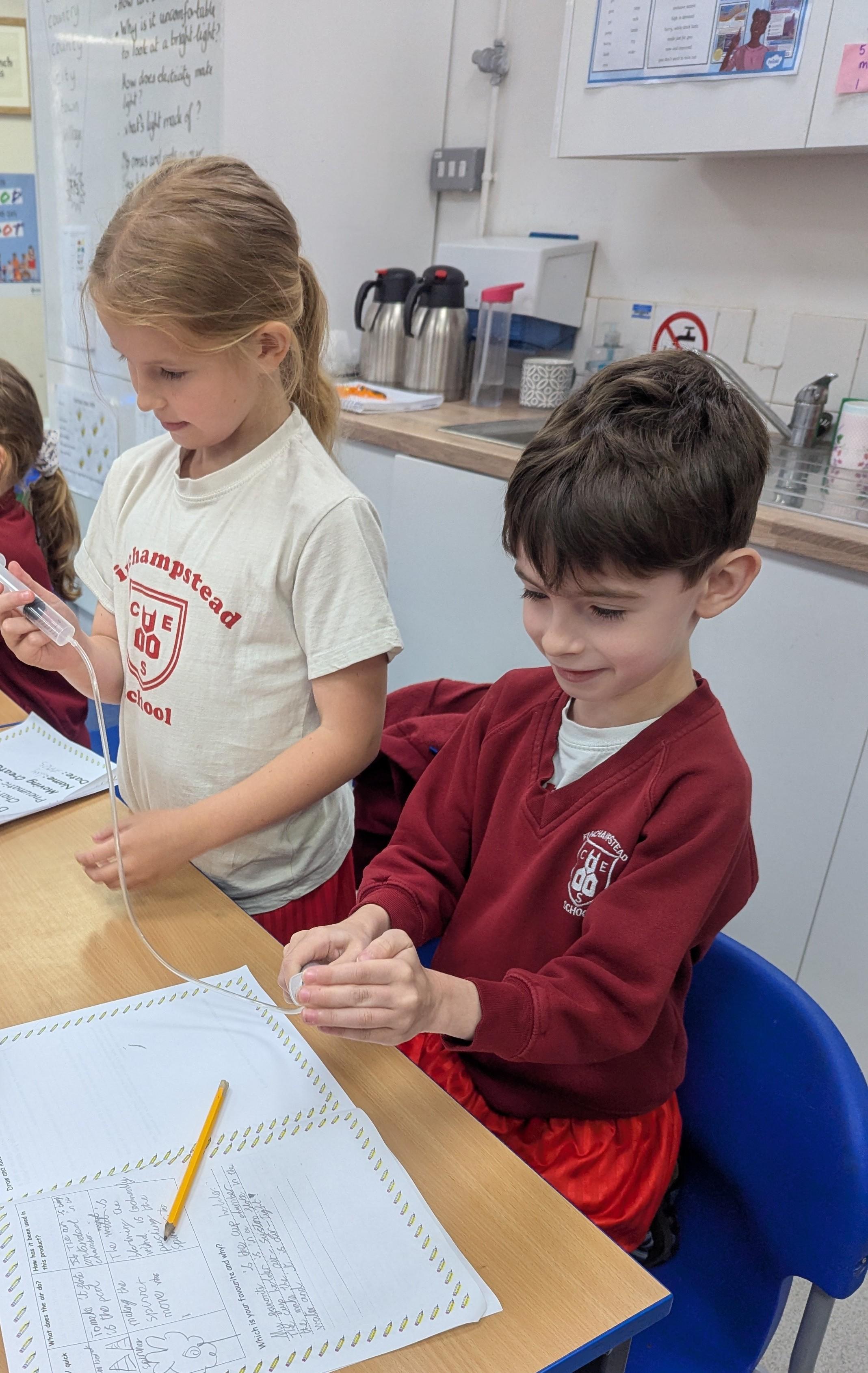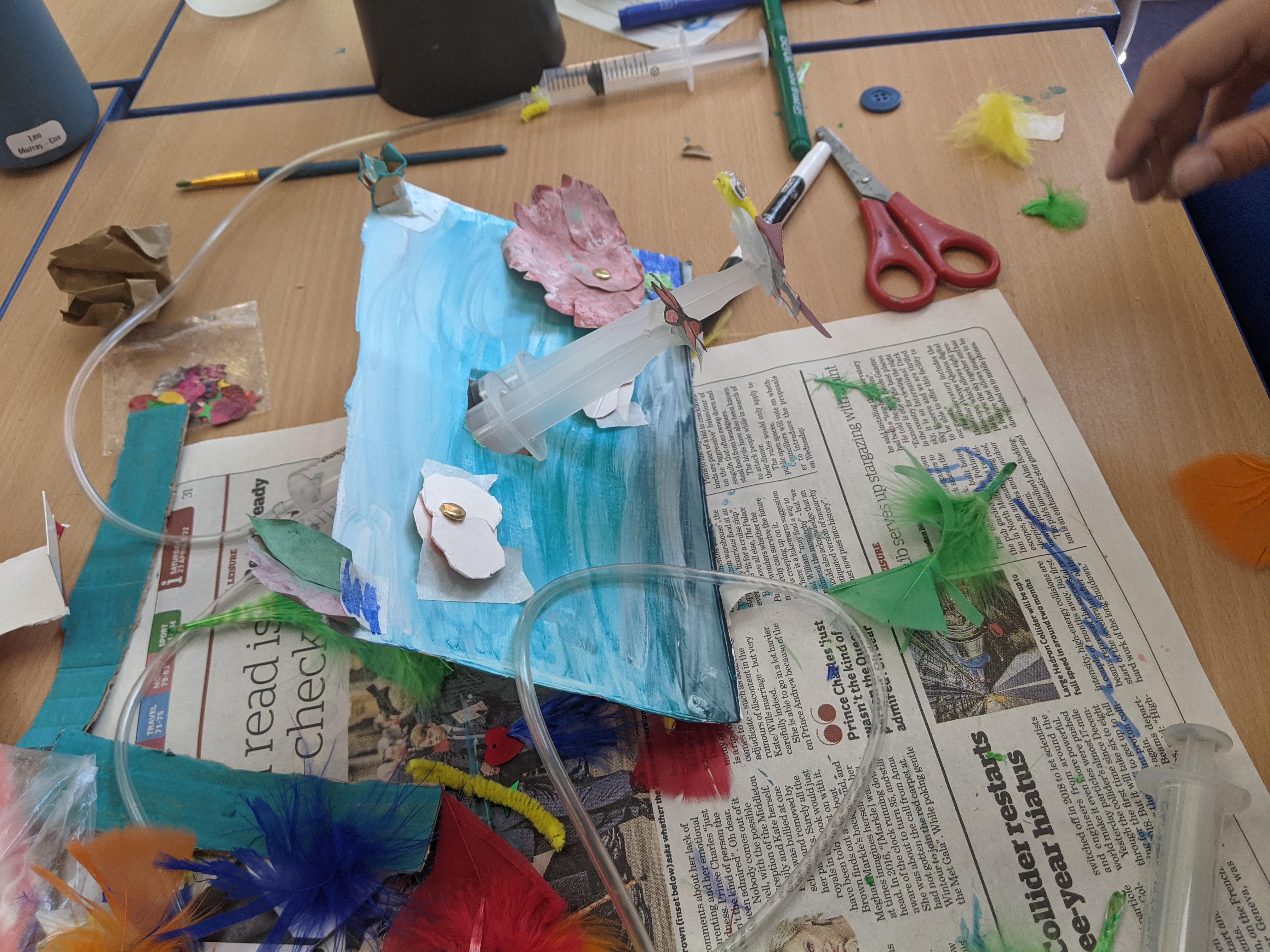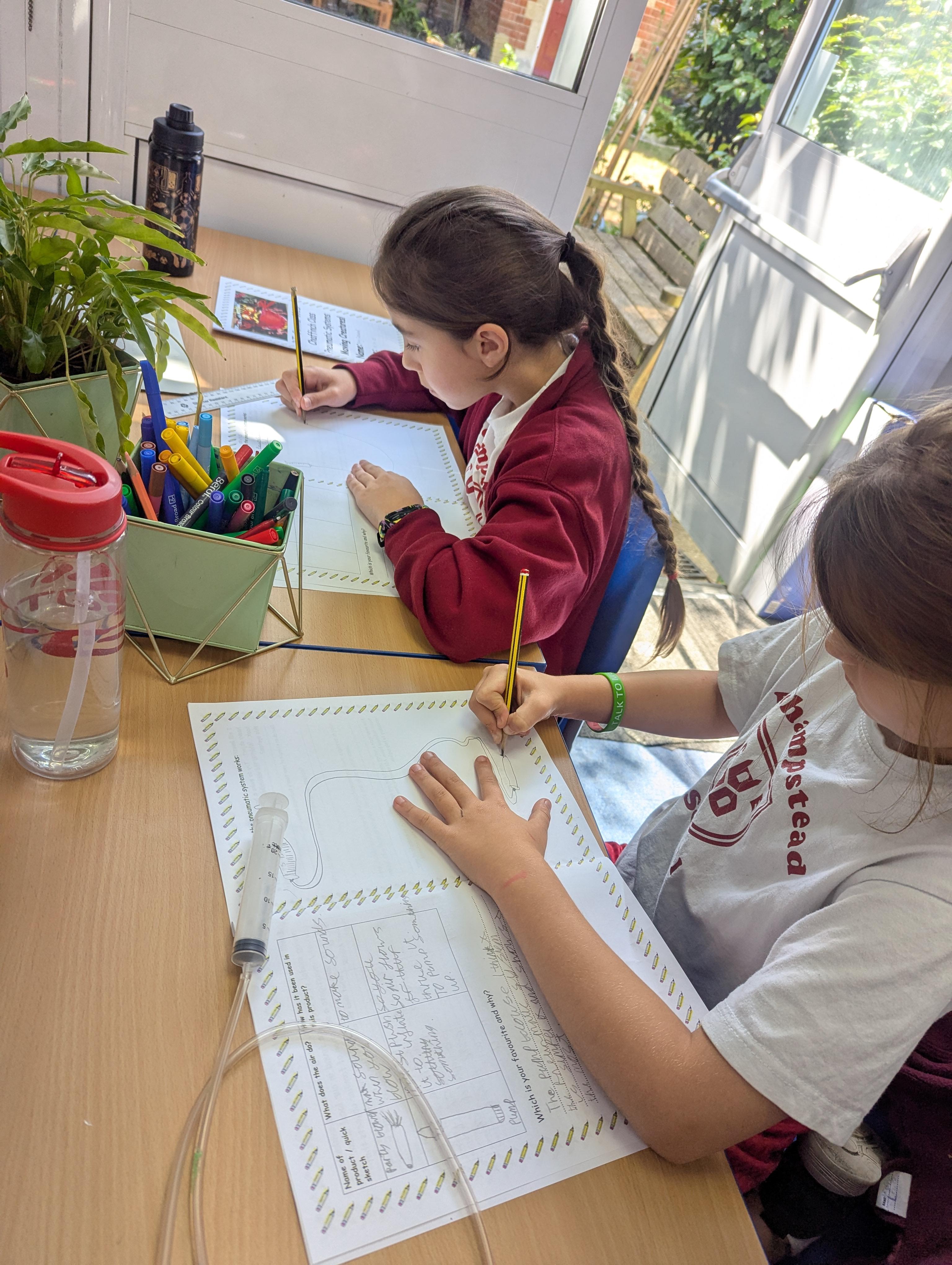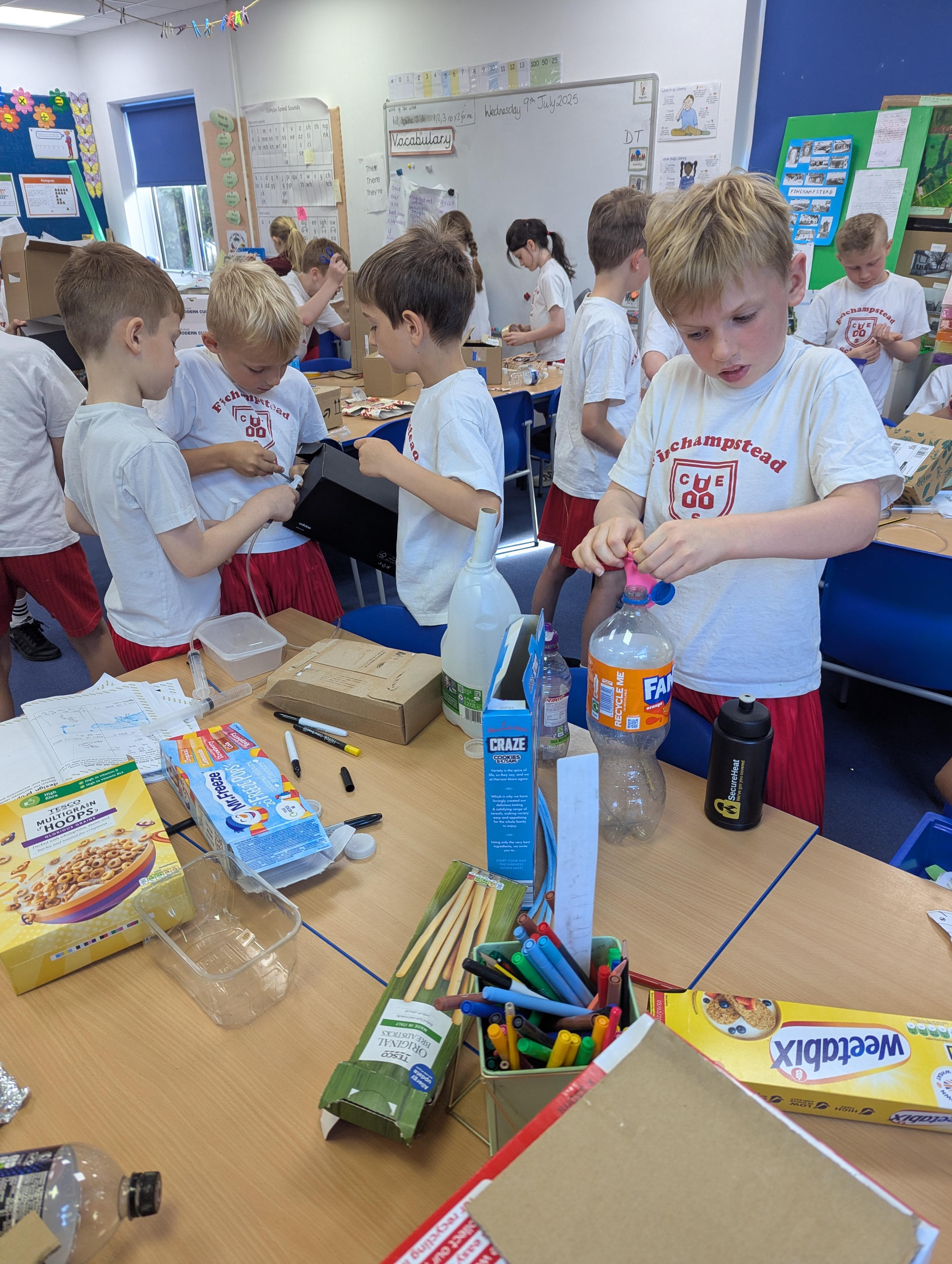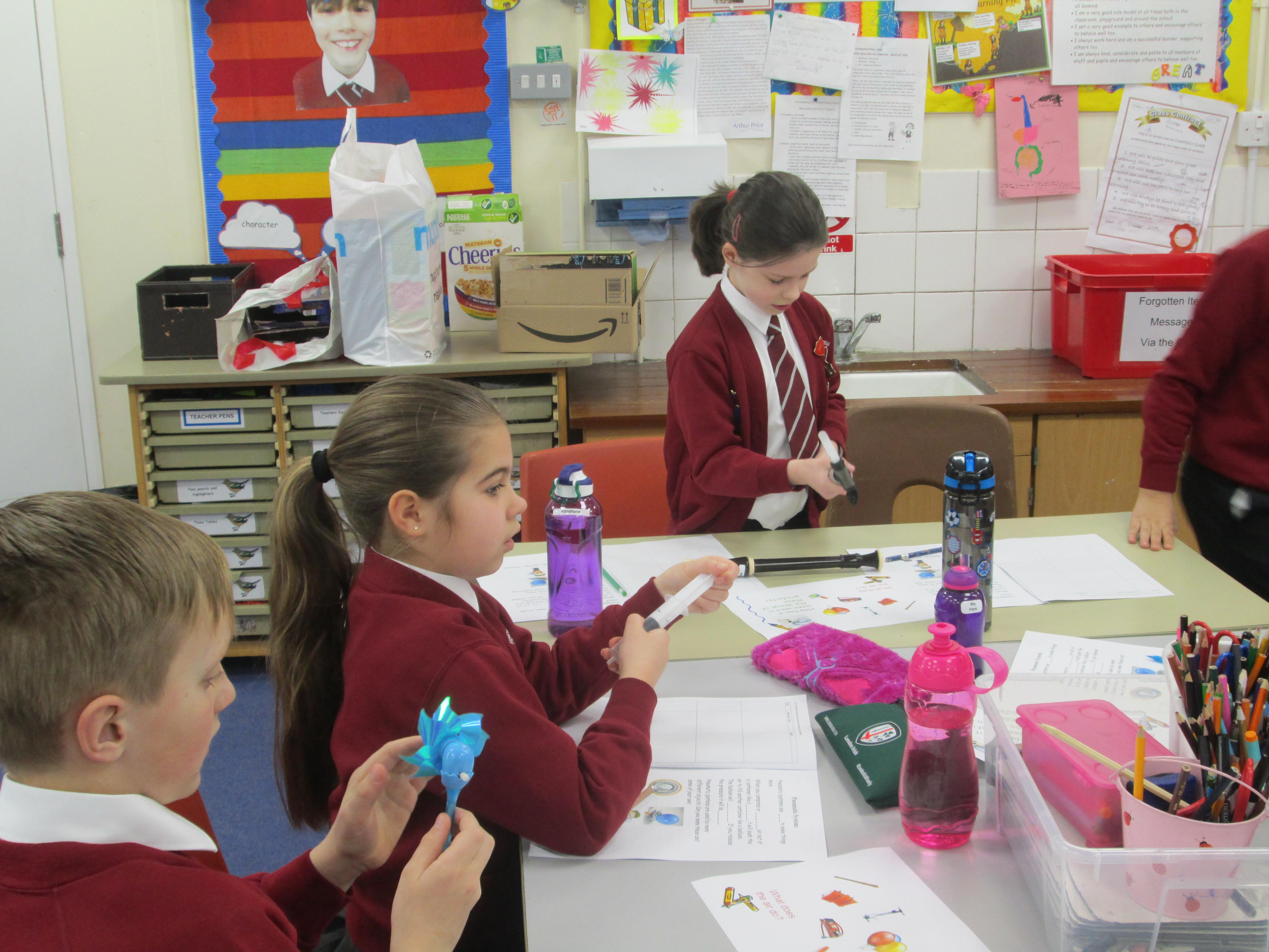 We have all seen an inflated balloon whizz off through the air, if you let go after inflating it, and before you have tied a knot in the neck.These balloons all use that principle, but take it a stage further. This is how we have explored a simple pneumatic system in DT today. Can you explain the input, the process and the output?