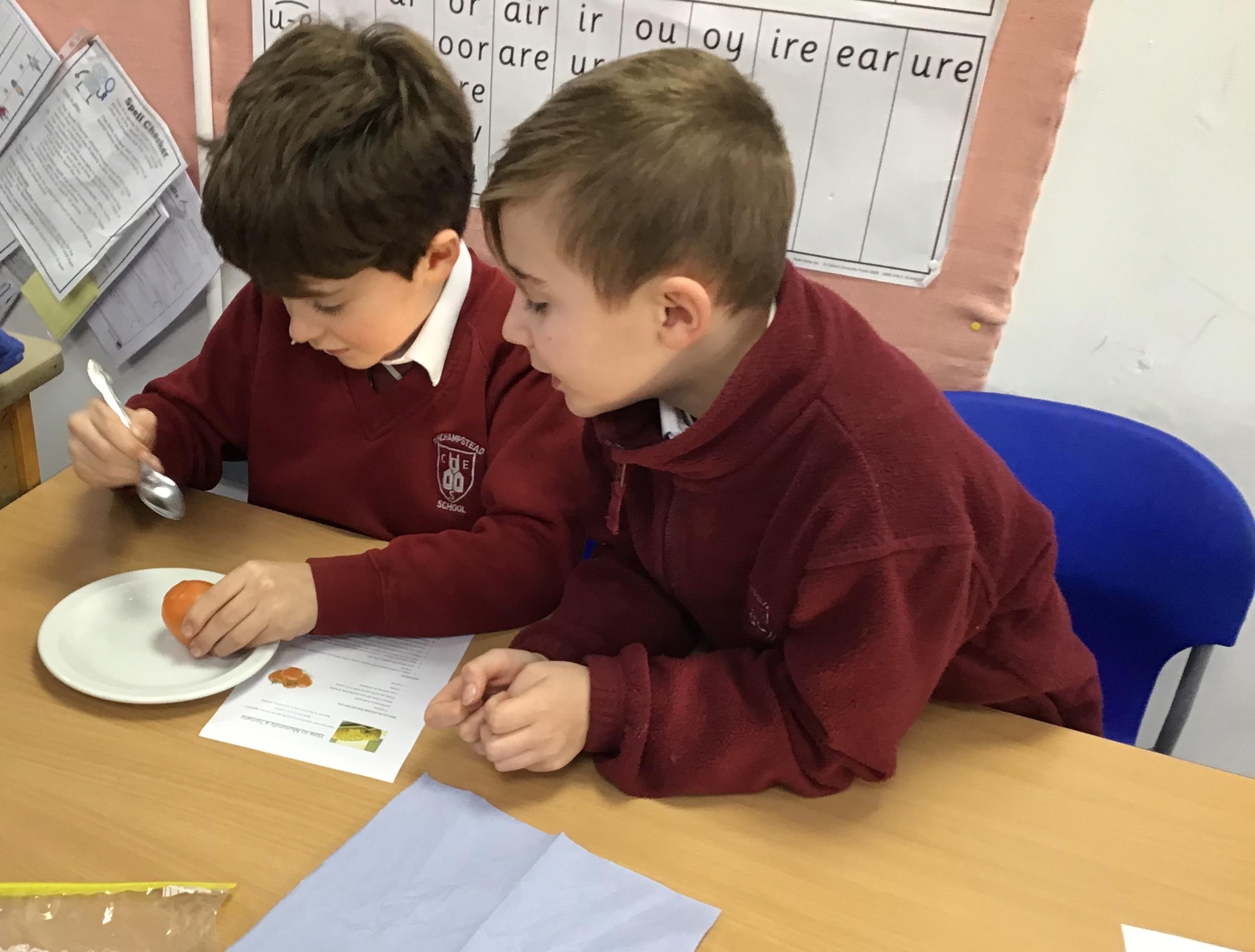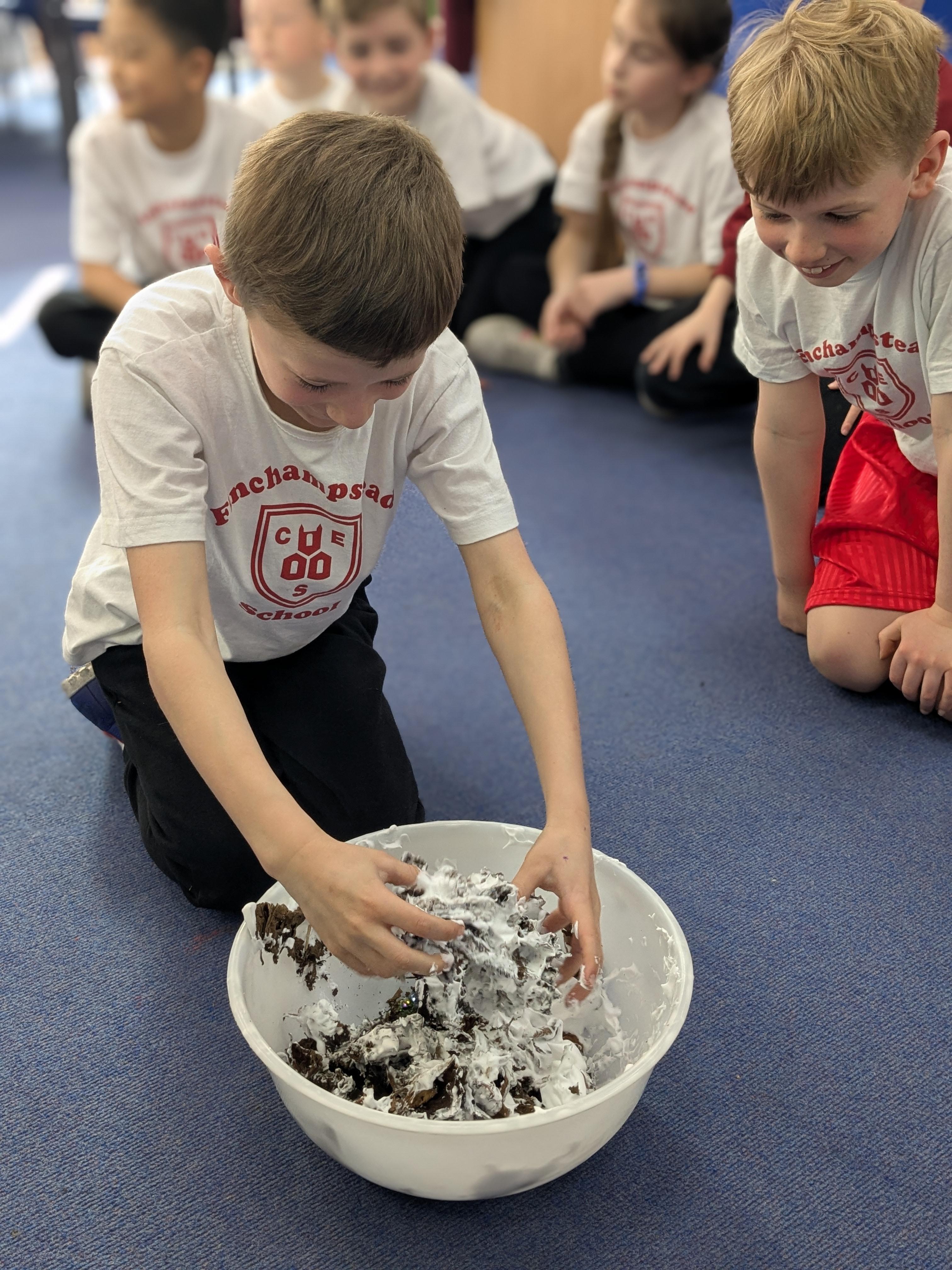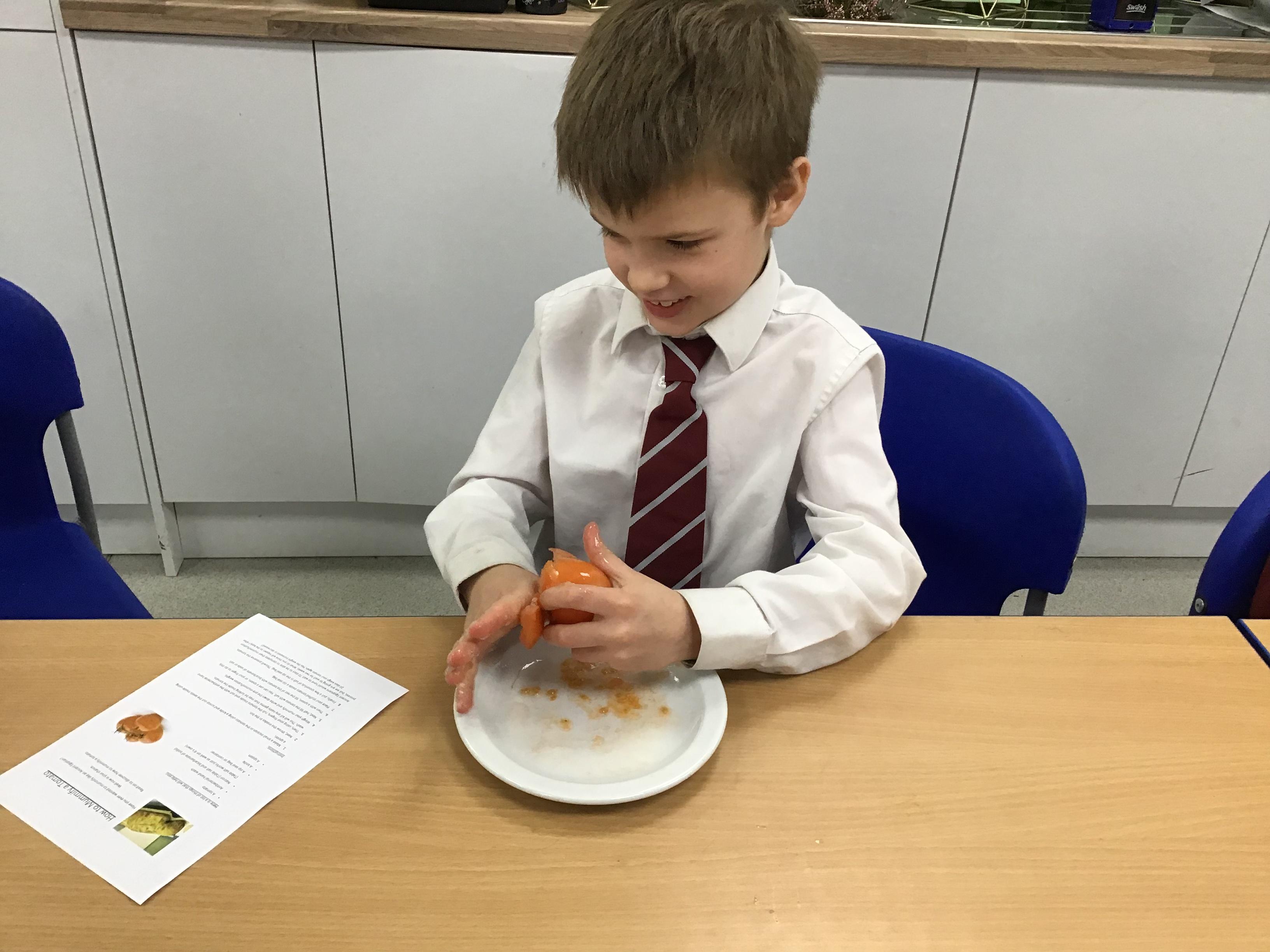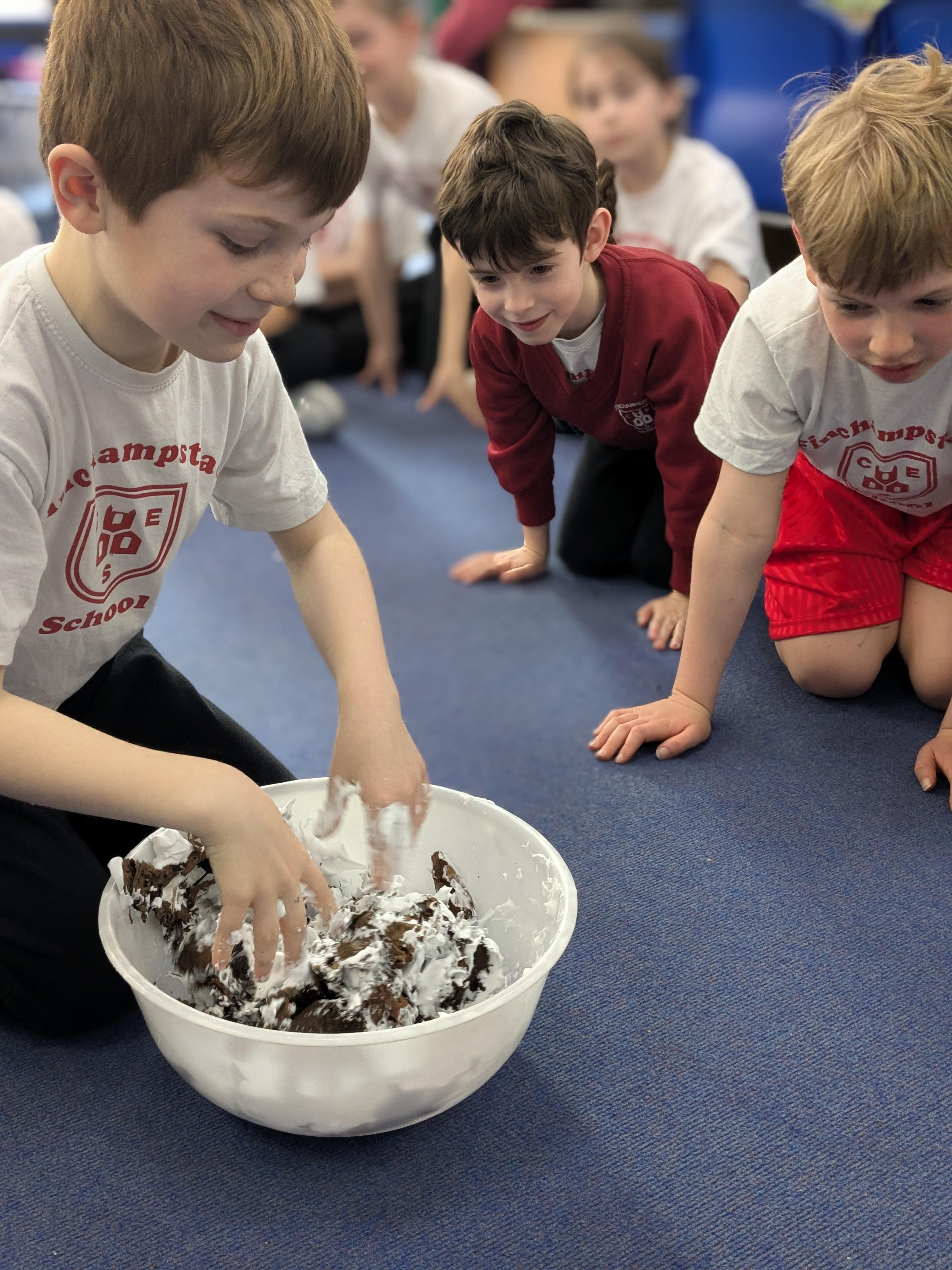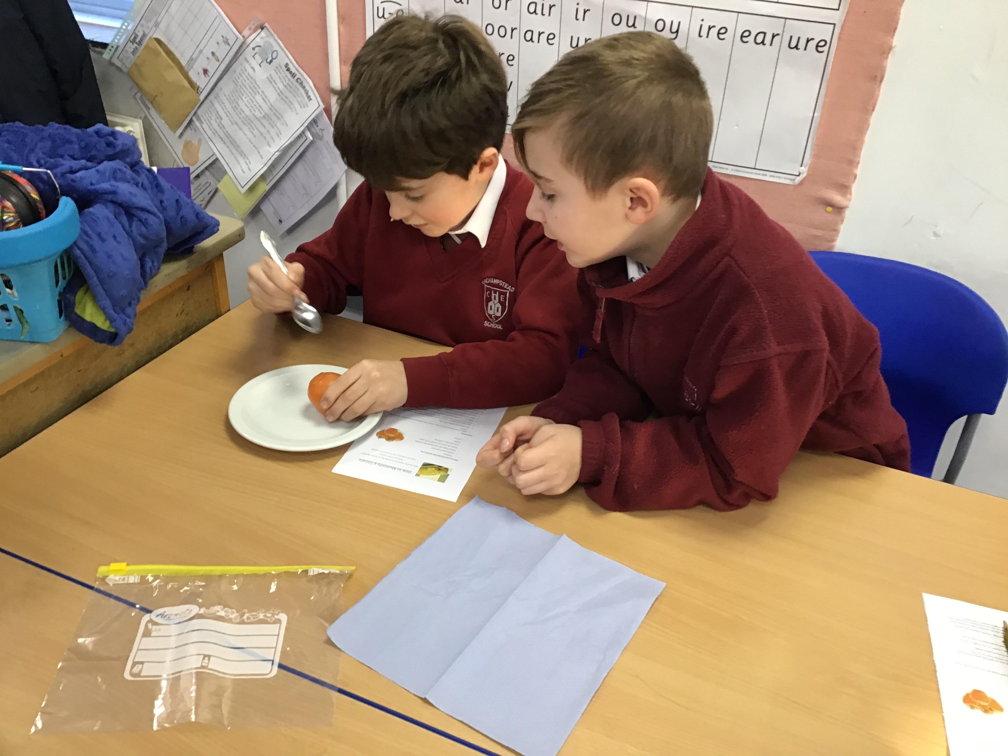 Chaffinch have been learning about the digestive system, the names of the different parts and their functions. We tried an experiment using Weetabix and orange juice to simulate how our bodies process the food we eat.