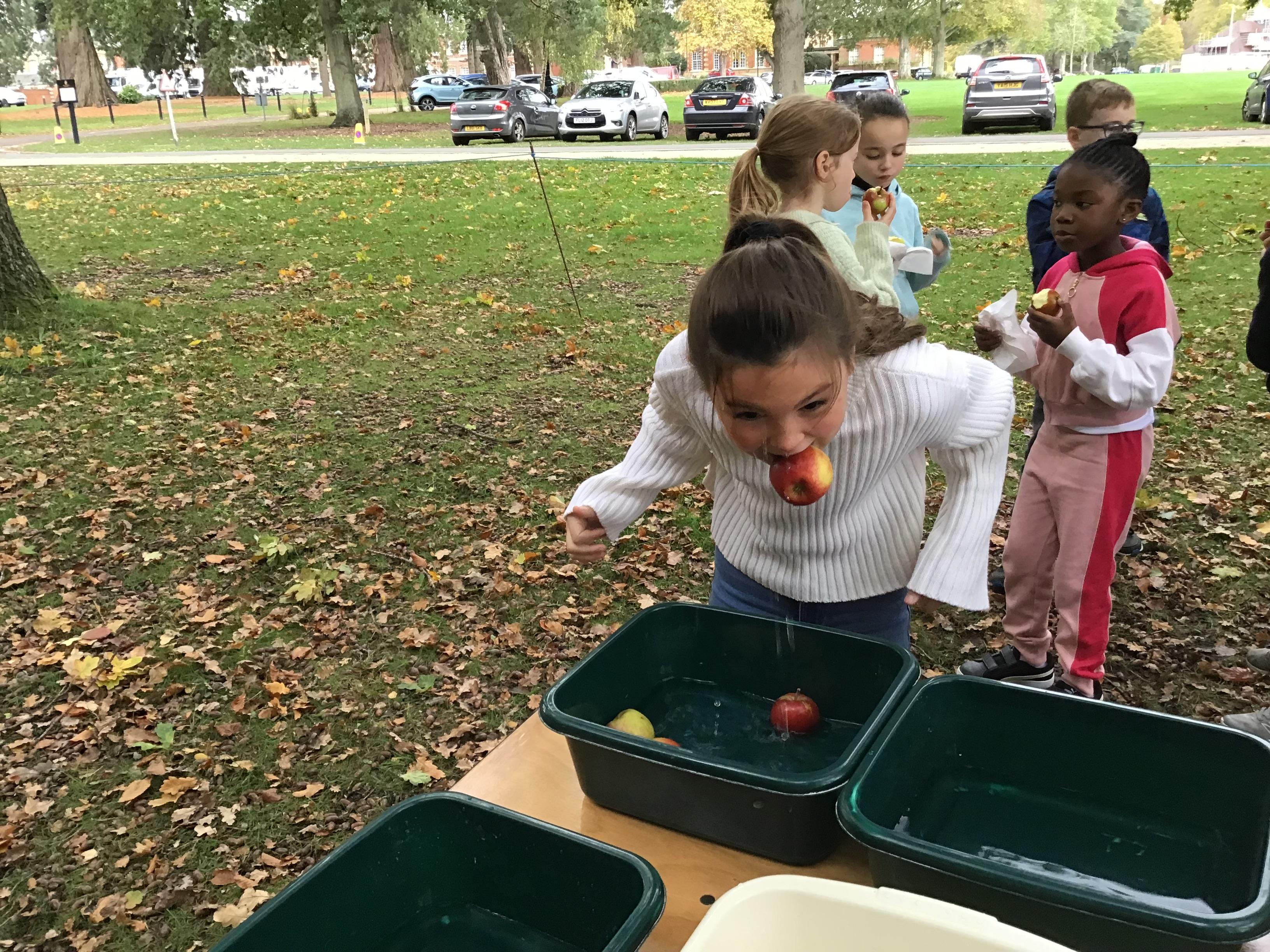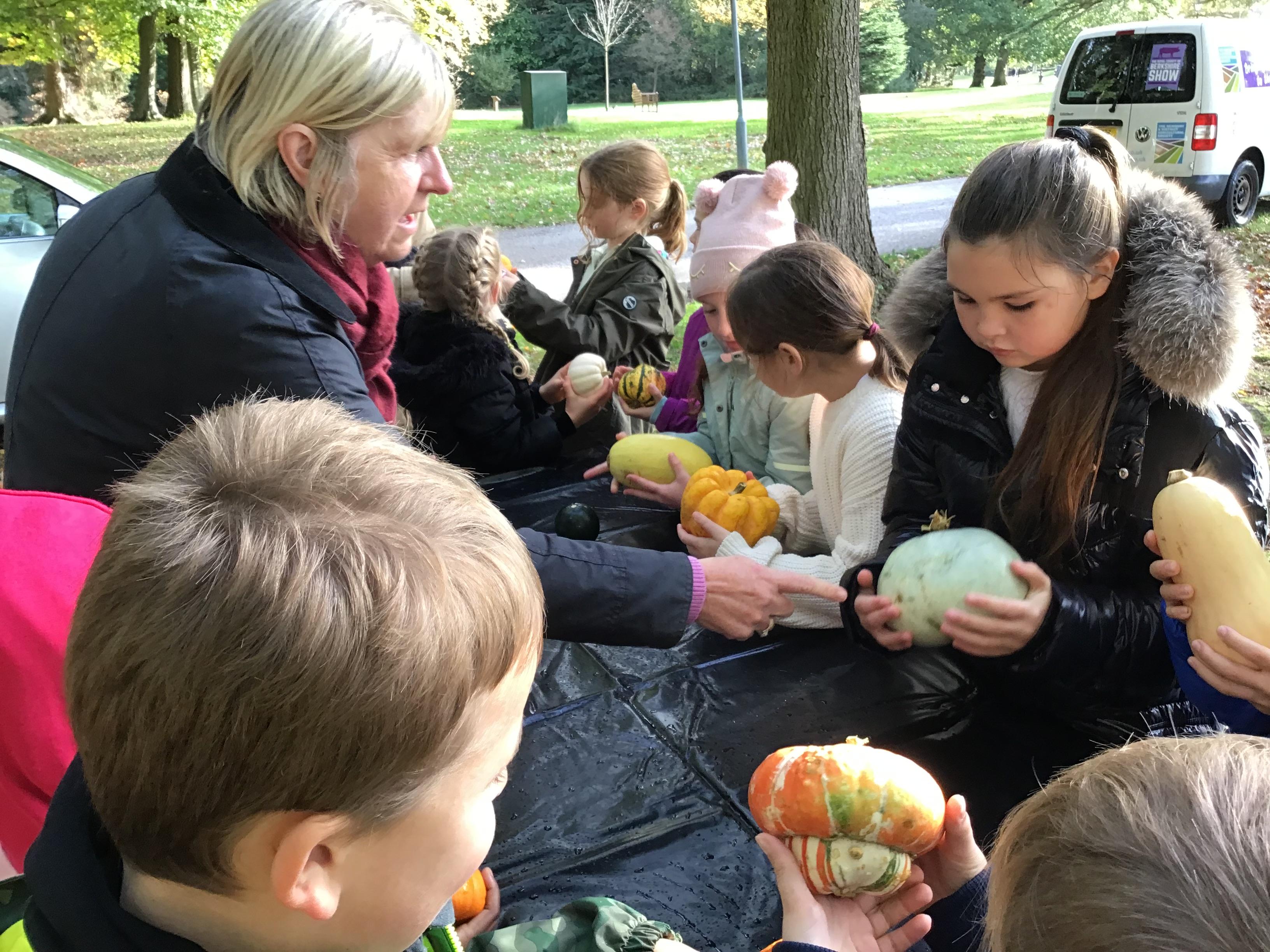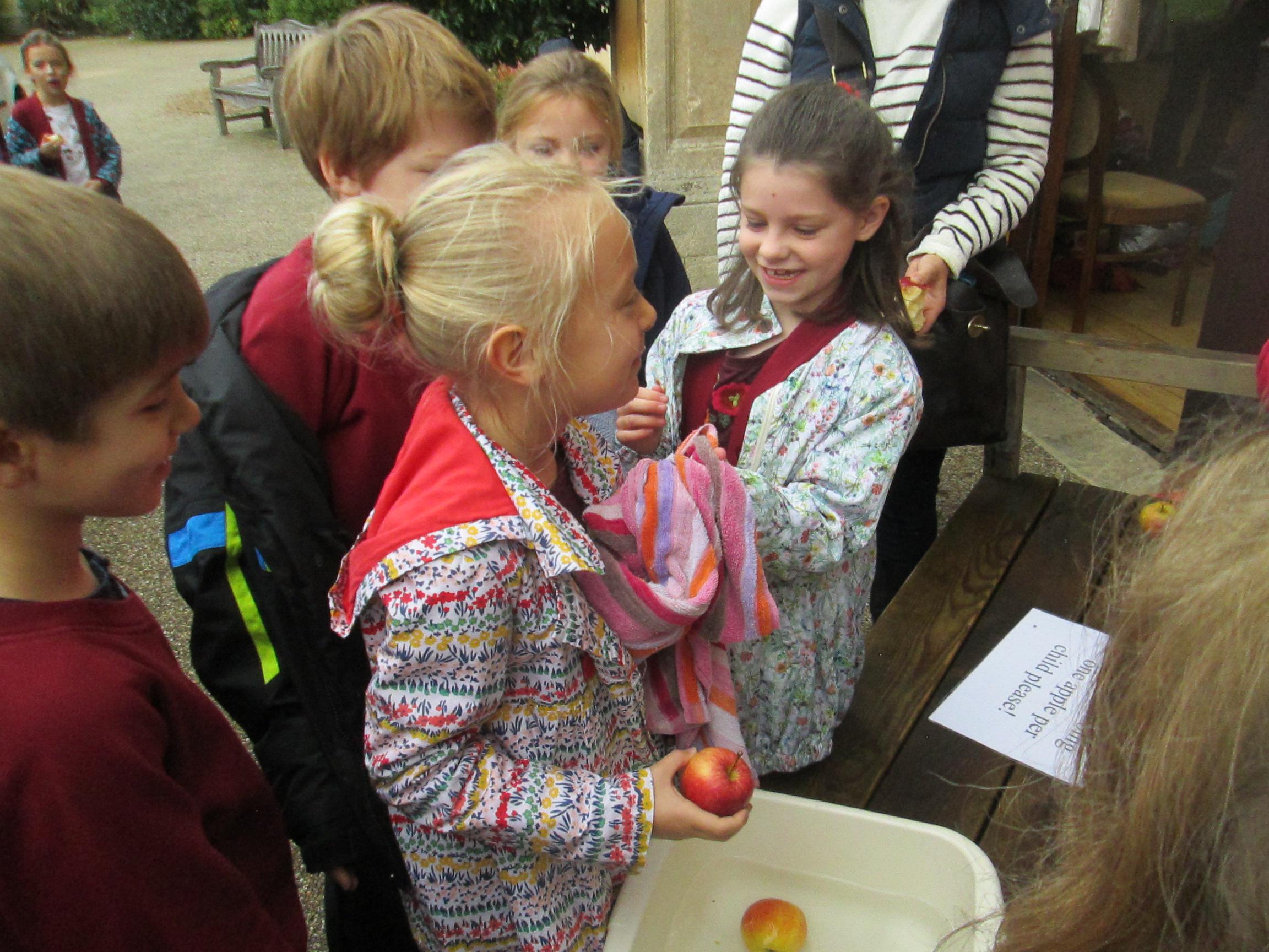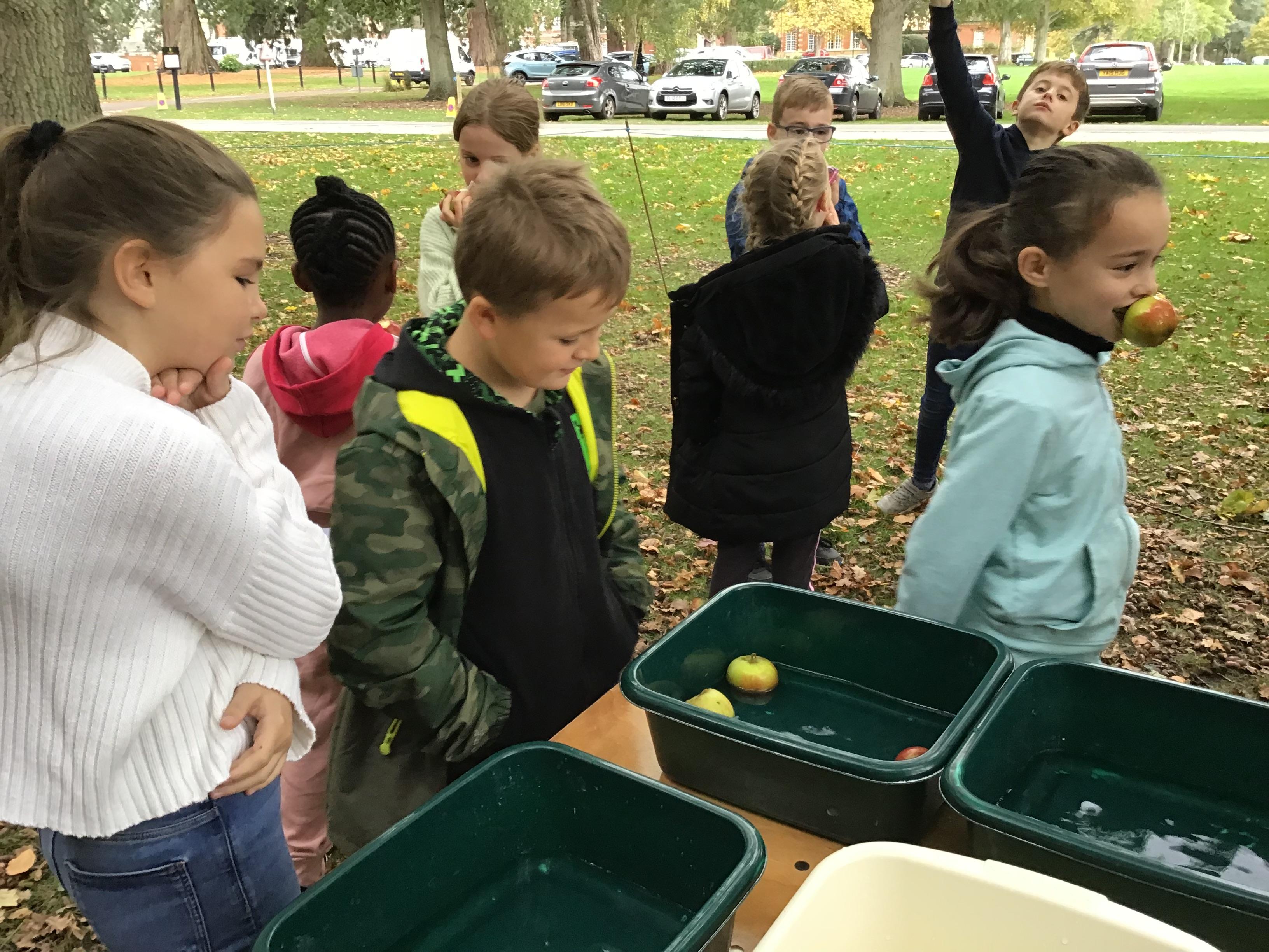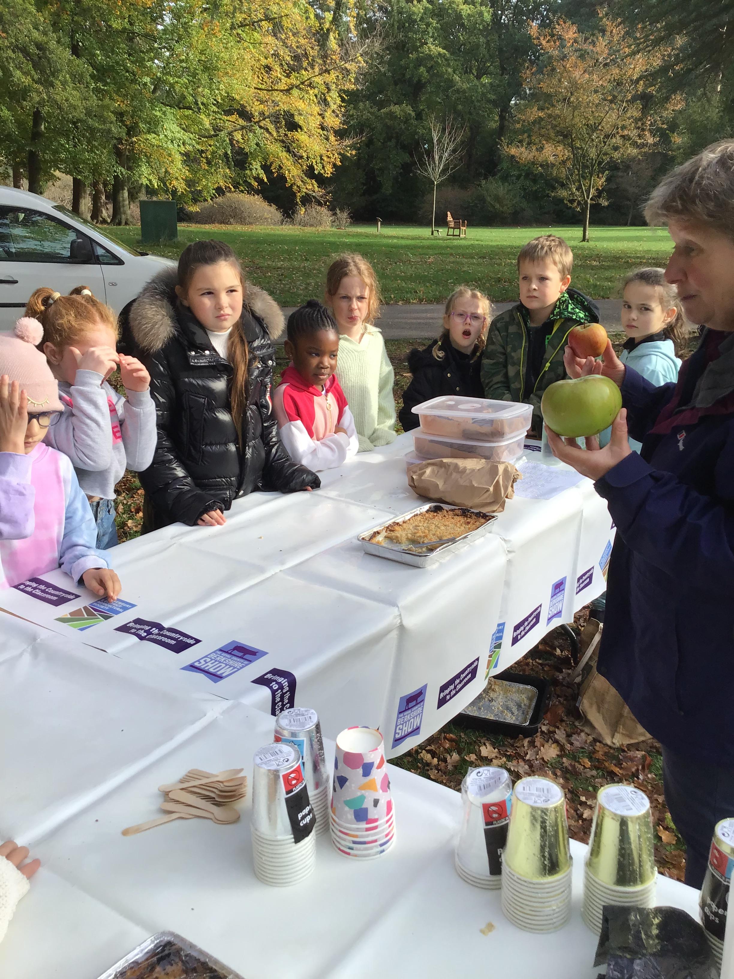 We started the day with an autumn colour walk where we collected tiny snippets of leaves, flowers, seeds etc and attached them to card to make a unique piece of autumn art. Then followed the apple bobbing. It was a ‘marmite’ challenge with some loving and some hating the experience! After that we moved on to a cookery demonstration to learn how fruit and vegetables (apples and beetroot) can be incorporated into sweet treats. The tasting was very popular. The true story of Johnny Appleseed fascinated everyone, as did the beautifully illustrated pictures showing life in the 1800’s USA. Finally we tasted several varieties of apples (Cox’s Orange Pippin, Charles Ross and Russet) as well as learning about many different types of squashes. The day ended with a smile as some of the children got extremely excited by a sign that read 'strictly minibus parking only', as they thought Strictly Come Dancing must be being filmed there!