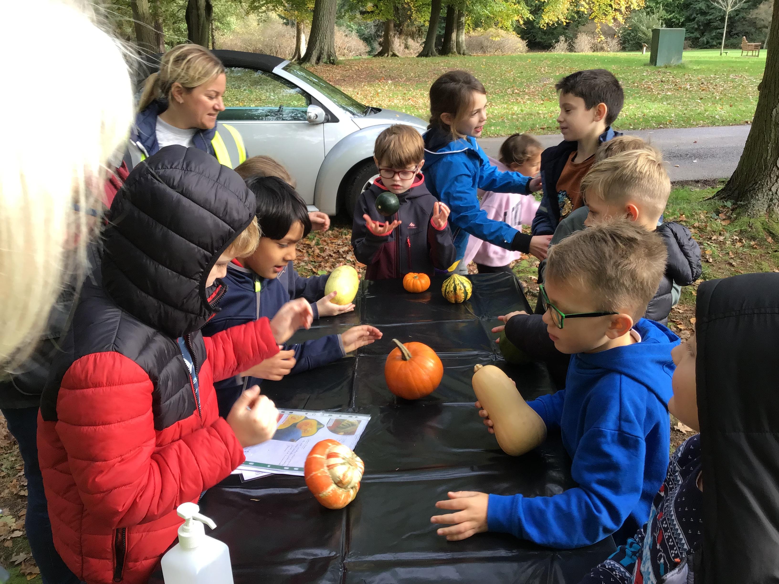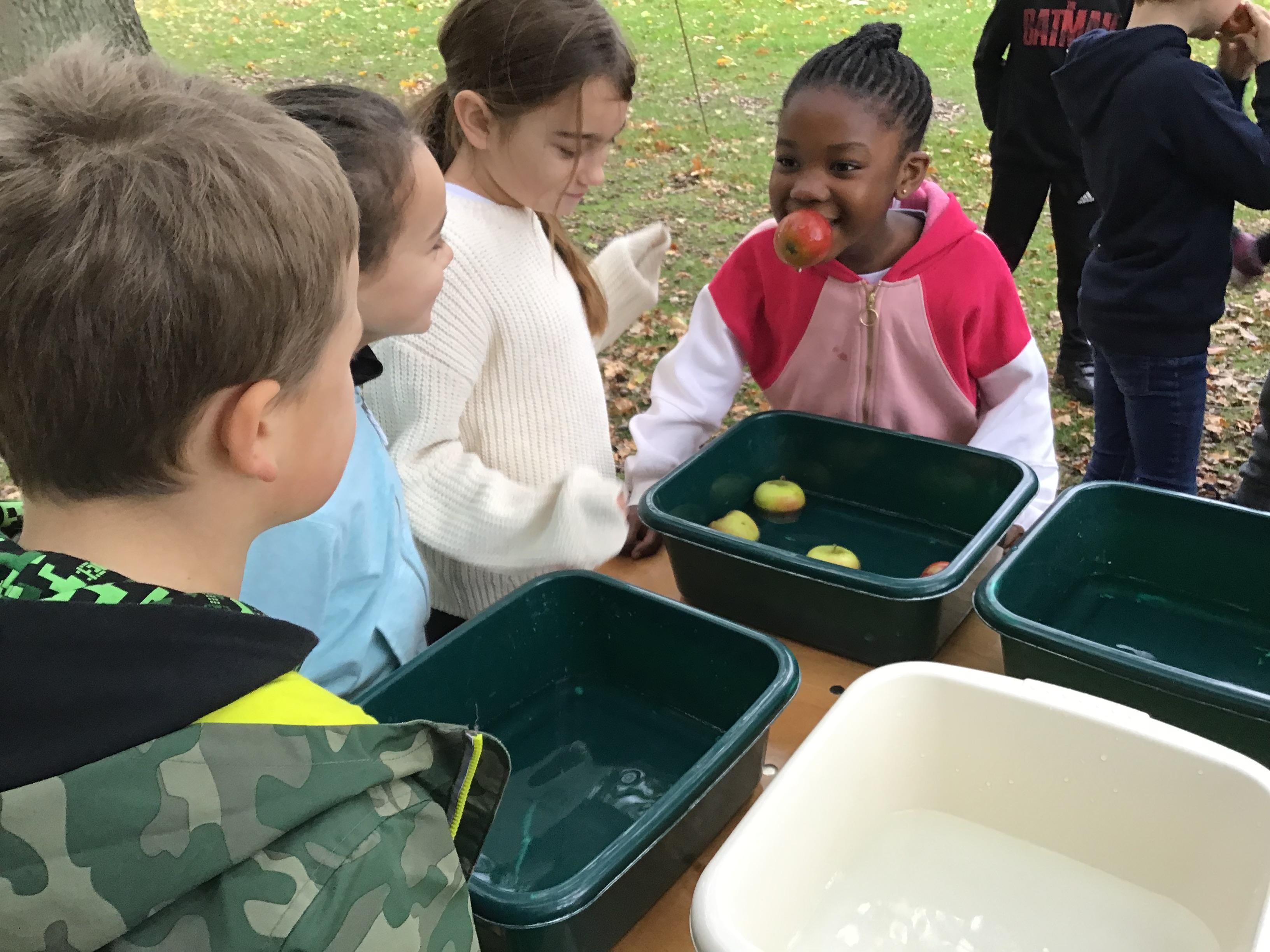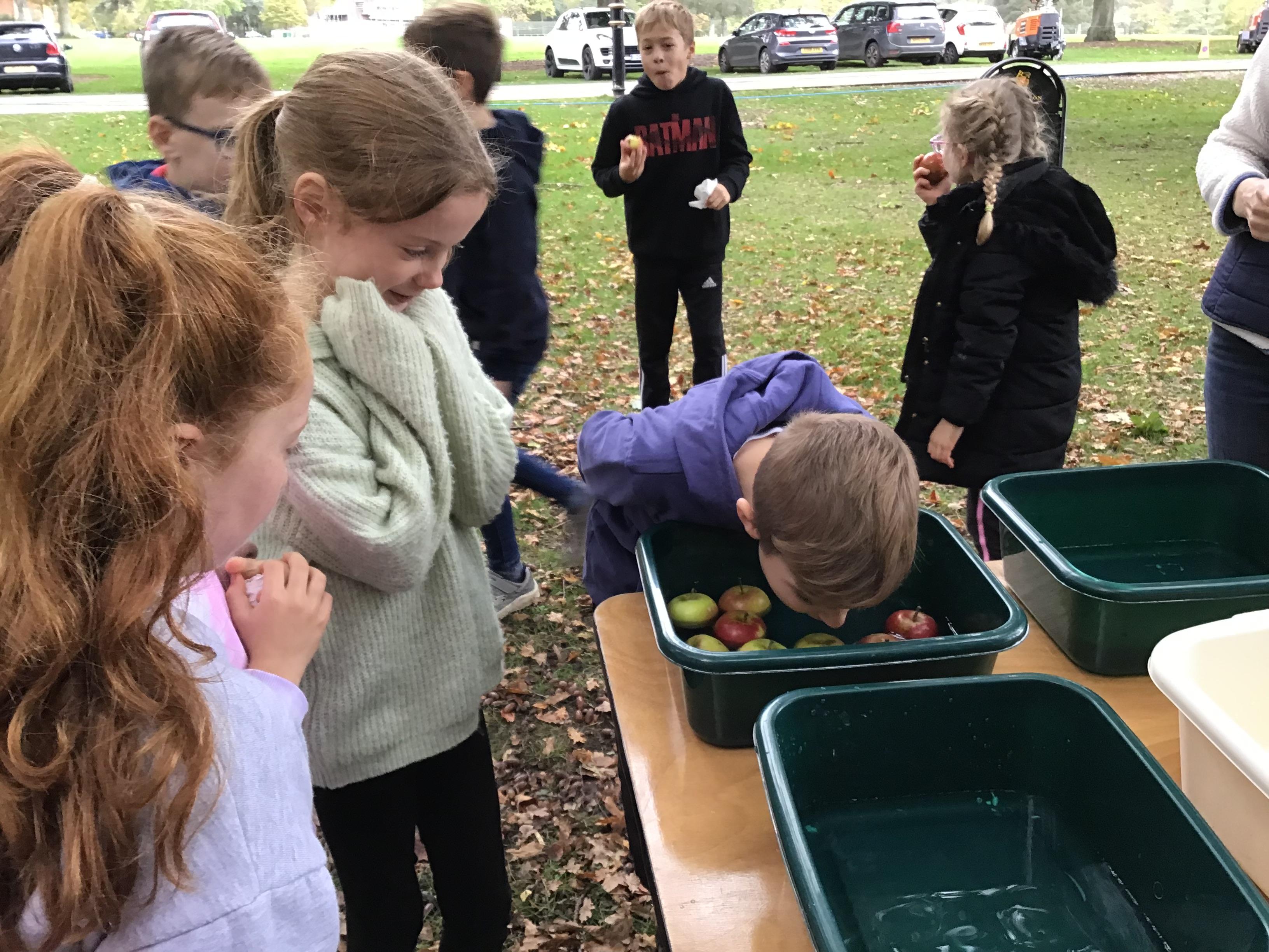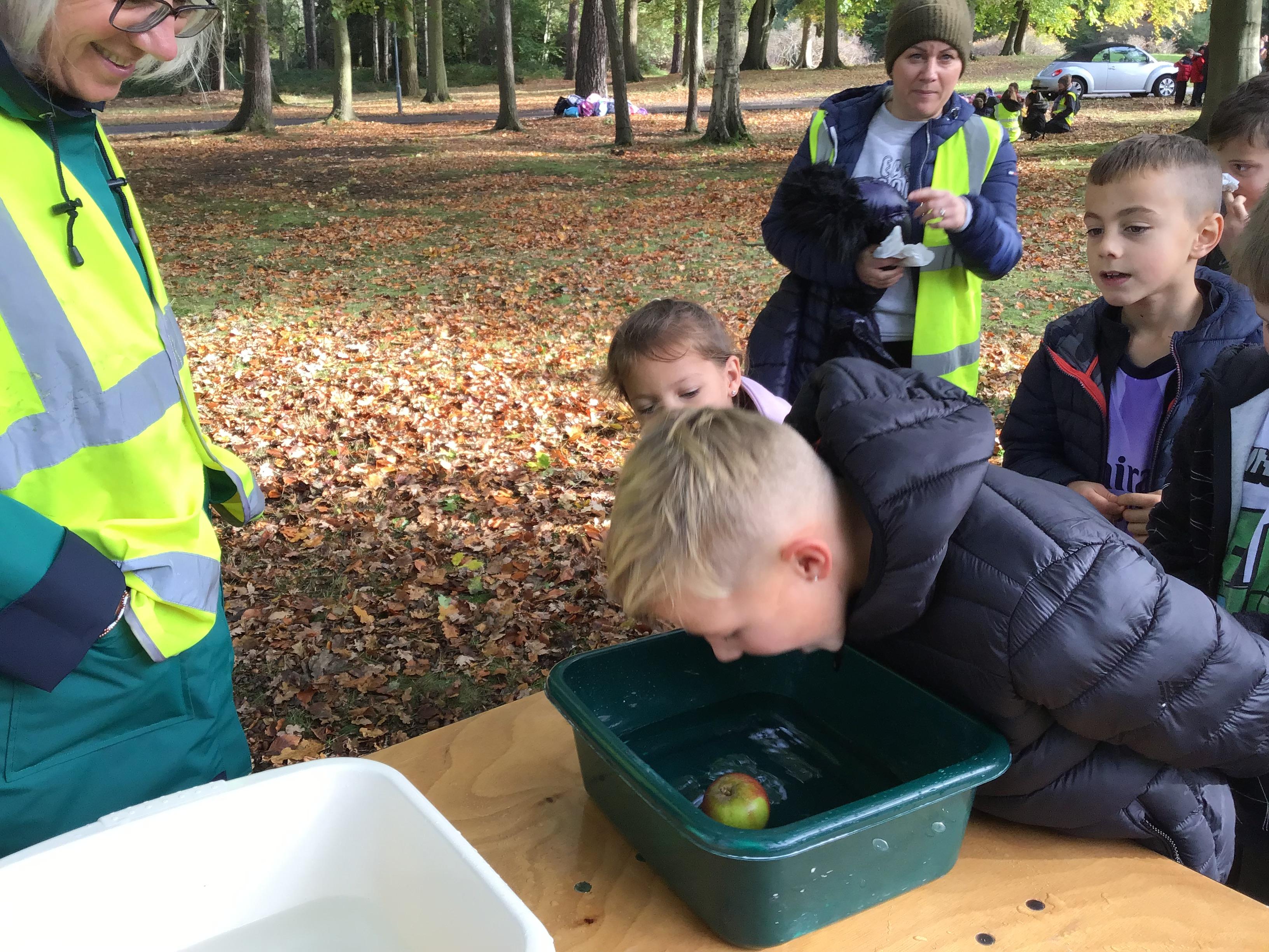 We started the day with an autumn colour walk where we collected tiny snippets of leaves, flowers, seeds etc and attached them to card to make a unique piece of autumn art. Then followed the apple bobbing. It was a ‘marmite’ challenge with some loving and some hating the experience! After that we moved on to a cookery demonstration to learn how fruit and vegetables (apples and beetroot) can be incorporated into sweet treats. The tasting was very popular. The true story of Johnny Appleseed fascinated everyone, as did the beautifully illustrated pictures showing life in the 1800’s USA. Finally we tasted several varieties of apples (Cox’s Orange Pippin, Charles Ross and Russet) as well as learning about many different types of squashes. The day ended with a smile as some of the children got extremely excited by a sign that read 'strictly minibus parking only', as they thought Strictly Come Dancing must be being filmed there!
