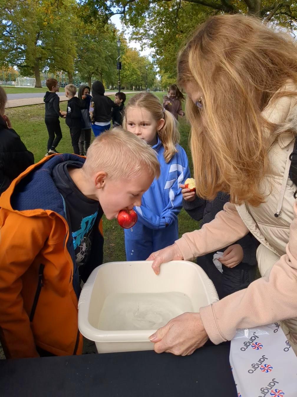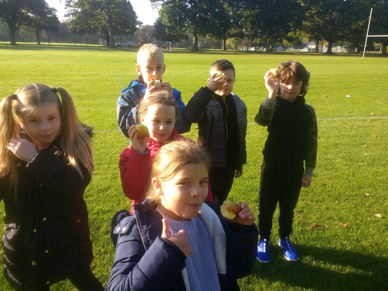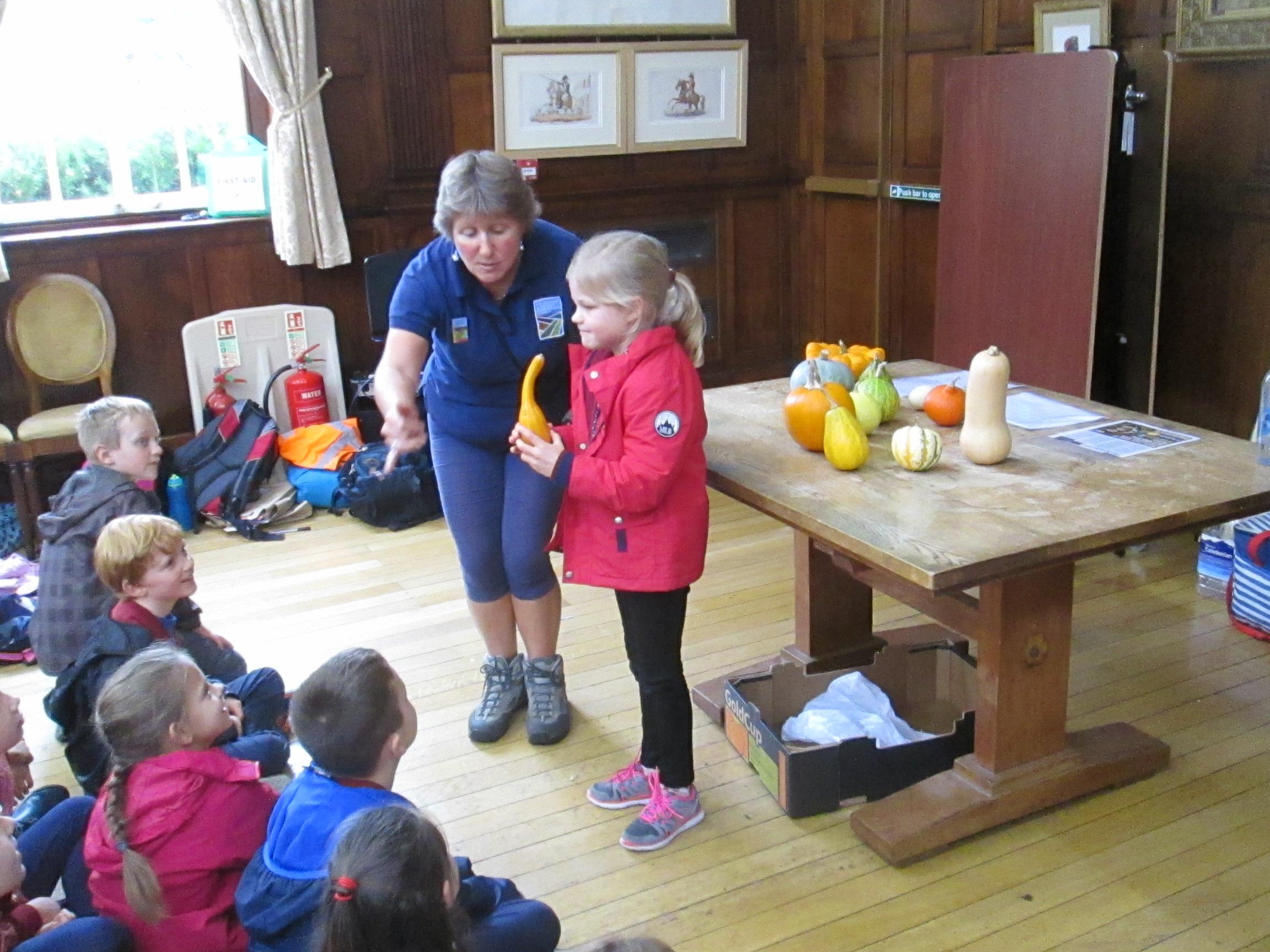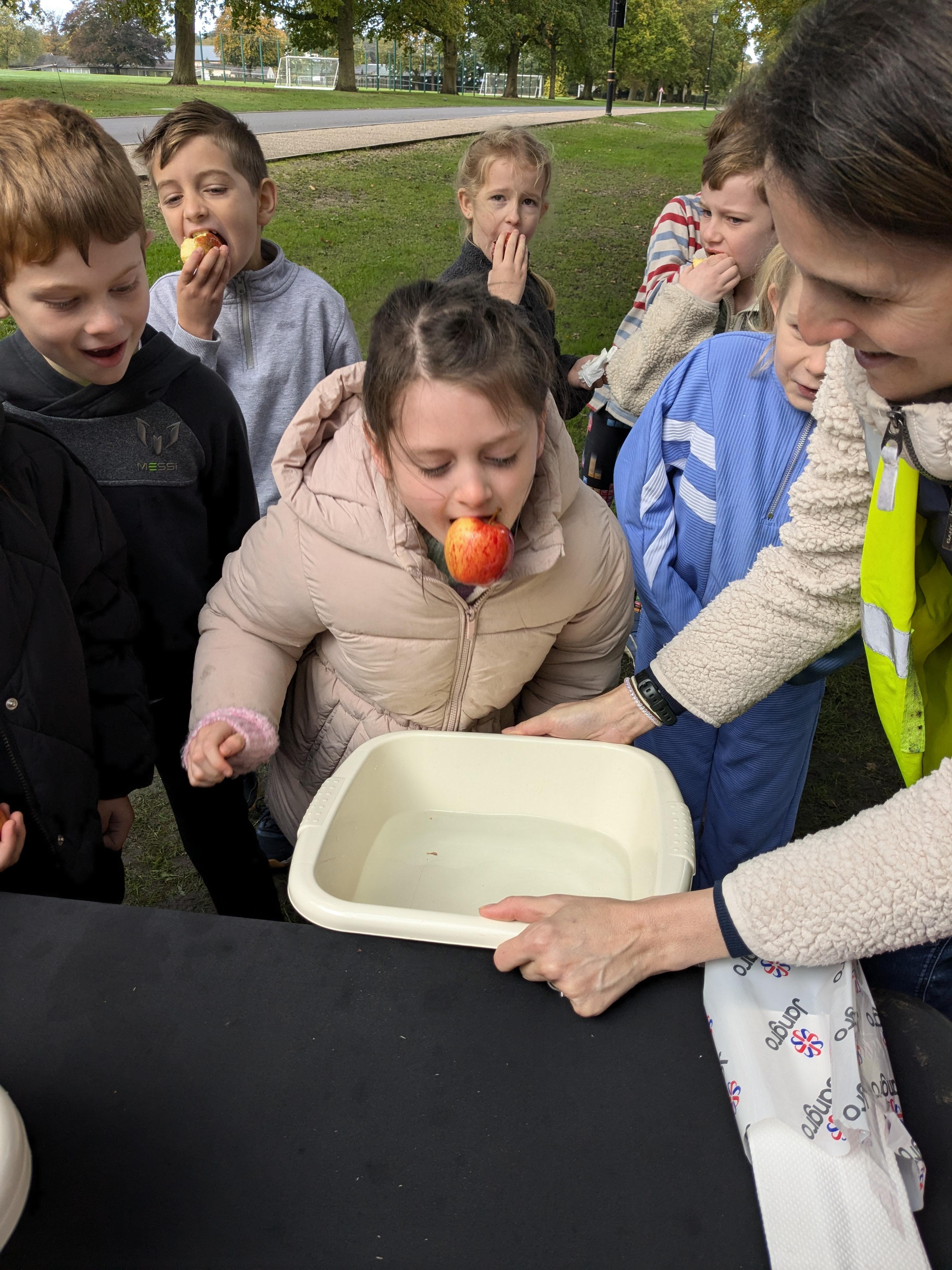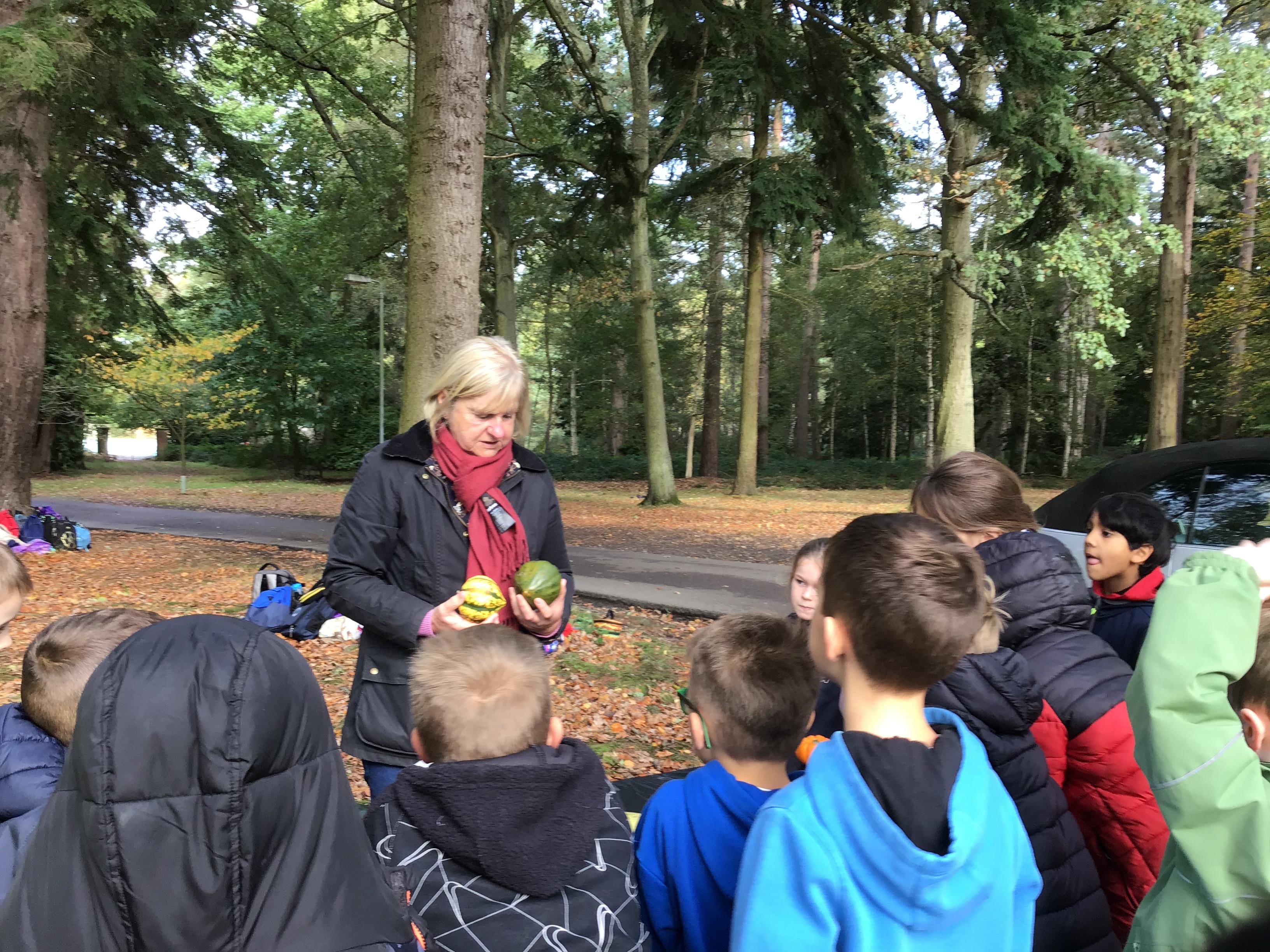We started the day with an autumn colour walk where we collected tiny snippets of leaves, flowers, seeds etc and attached them to card to make a unique piece of autumn art. Then followed the apple bobbing. It was a ‘marmite’ challenge with some loving and some hating the experience! After that we moved on to a cookery demonstration to learn how fruit and vegetables (apples and beetroot) can be incorporated into sweet treats. The tasting was very popular. The true story of Johnny Appleseed fascinated everyone, as did the beautifully illustrated pictures showing life in the 1800’s USA. Finally we tasted several varieties of apples (Cox’s Orange Pippin, Charles Ross and Russet) as well as learning about many different types of squashes. The day ended with a smile as some of the children got extremely excited by a sign that read 'strictly minibus parking only', as they thought Strictly Come Dancing must be being filmed there!