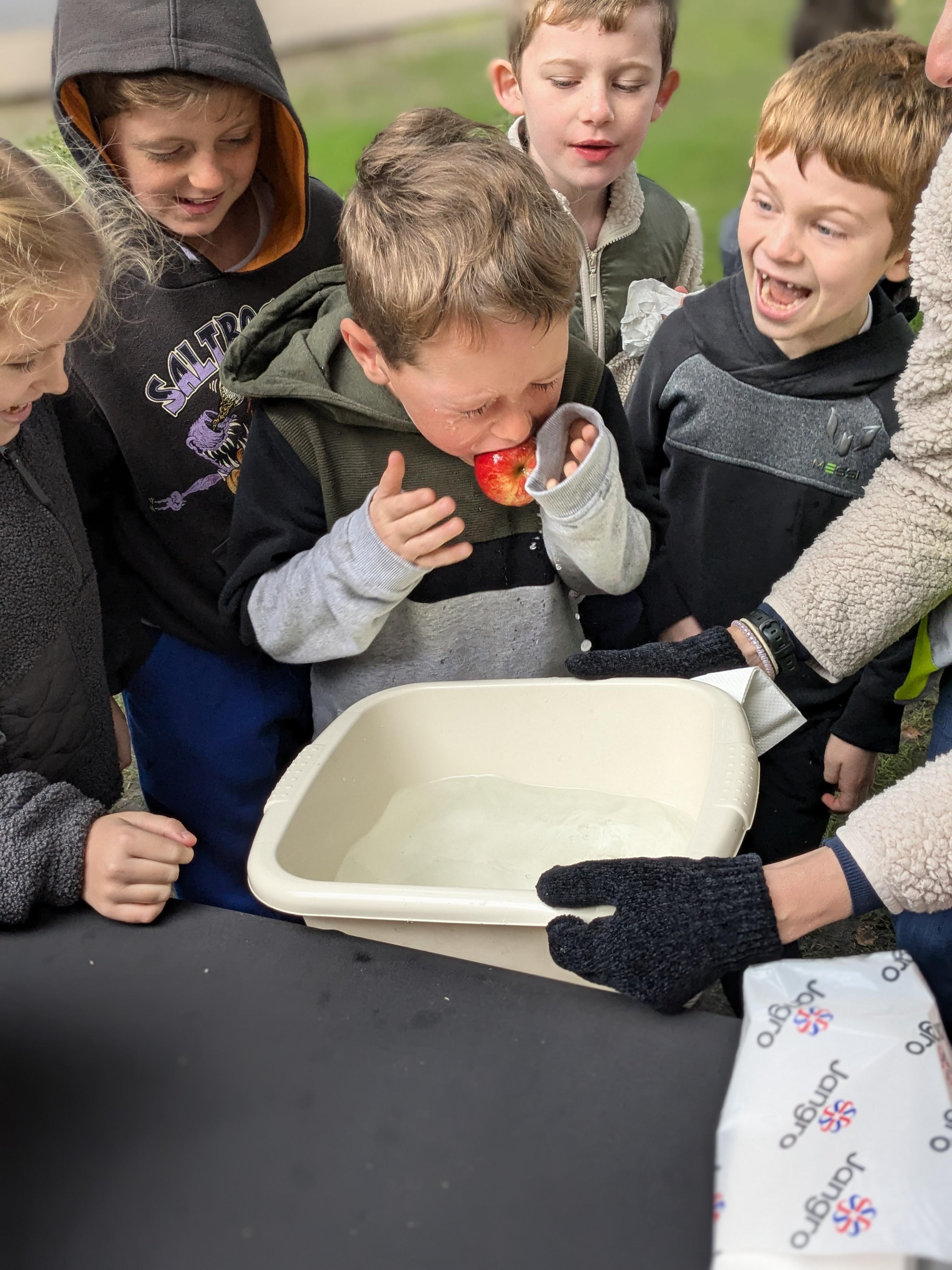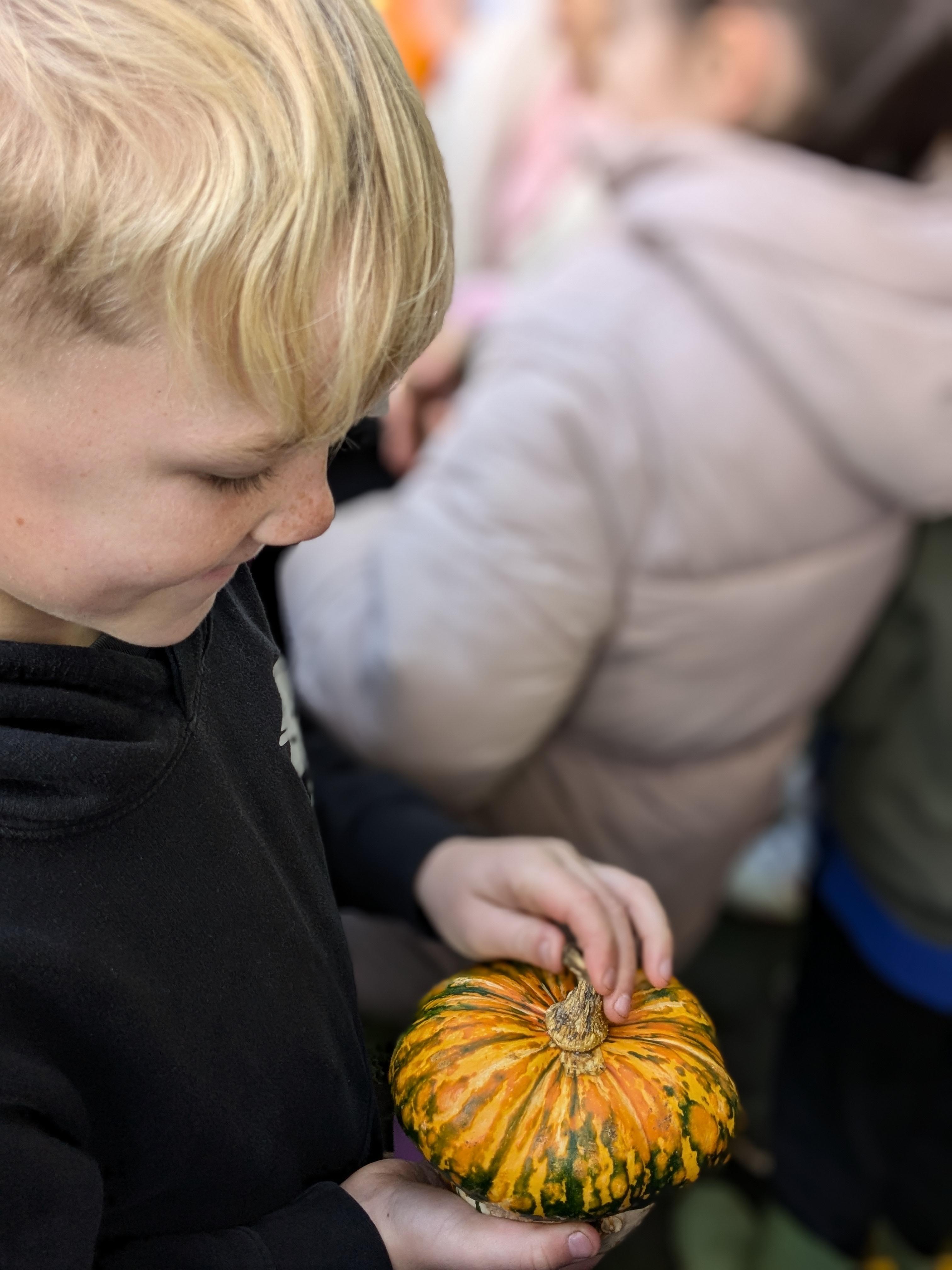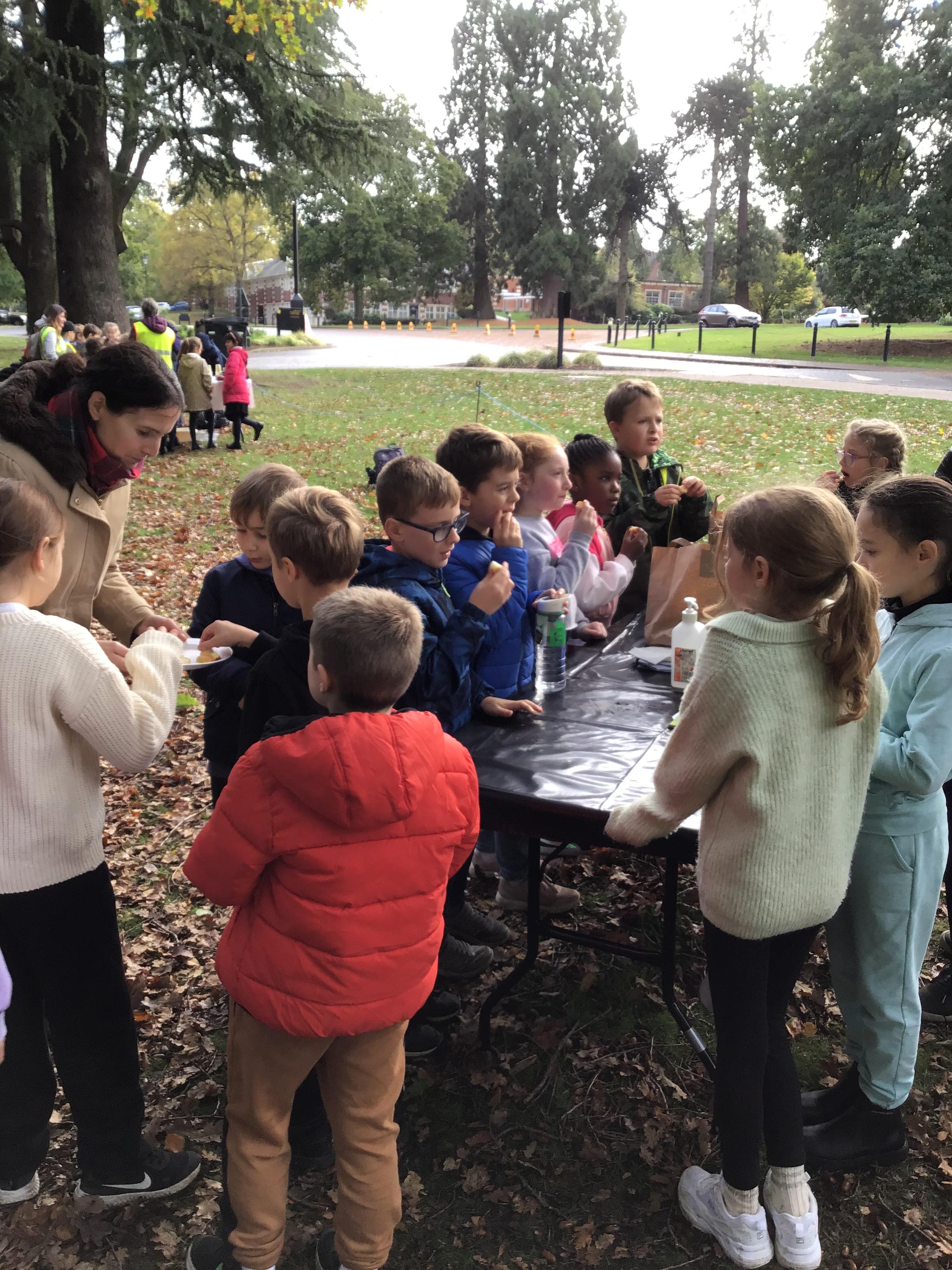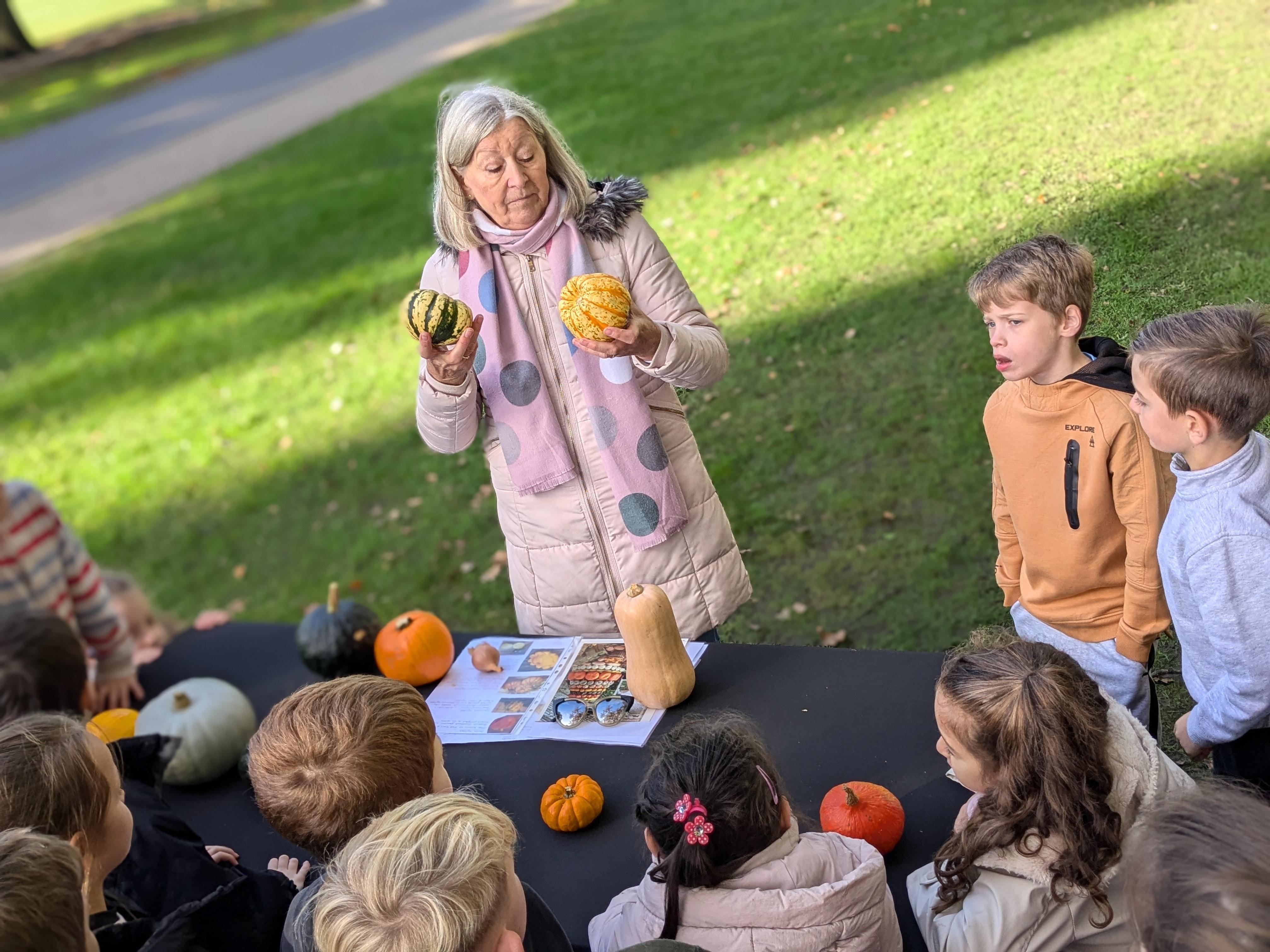 We started the day with an autumn colour walk where we collected tiny snippets of leaves, flowers, seeds etc and attached them to card to make a unique piece of autumn art. Then followed the apple bobbing. It was a ‘marmite’ challenge with some loving and some hating the experience! After that we moved on to a cookery demonstration to learn how fruit and vegetables (apples and beetroot) can be incorporated into sweet treats. The tasting was very popular. The true story of Johnny Appleseed fascinated everyone, as did the beautifully illustrated pictures showing life in the 1800’s USA. Finally we tasted several varieties of apples (Cox’s Orange Pippin, Charles Ross and Russet) as well as learning about many different types of squashes. The day ended with a smile as some of the children got extremely excited by a sign that read 'strictly minibus parking only', as they thought Strictly Come Dancing must be being filmed there!