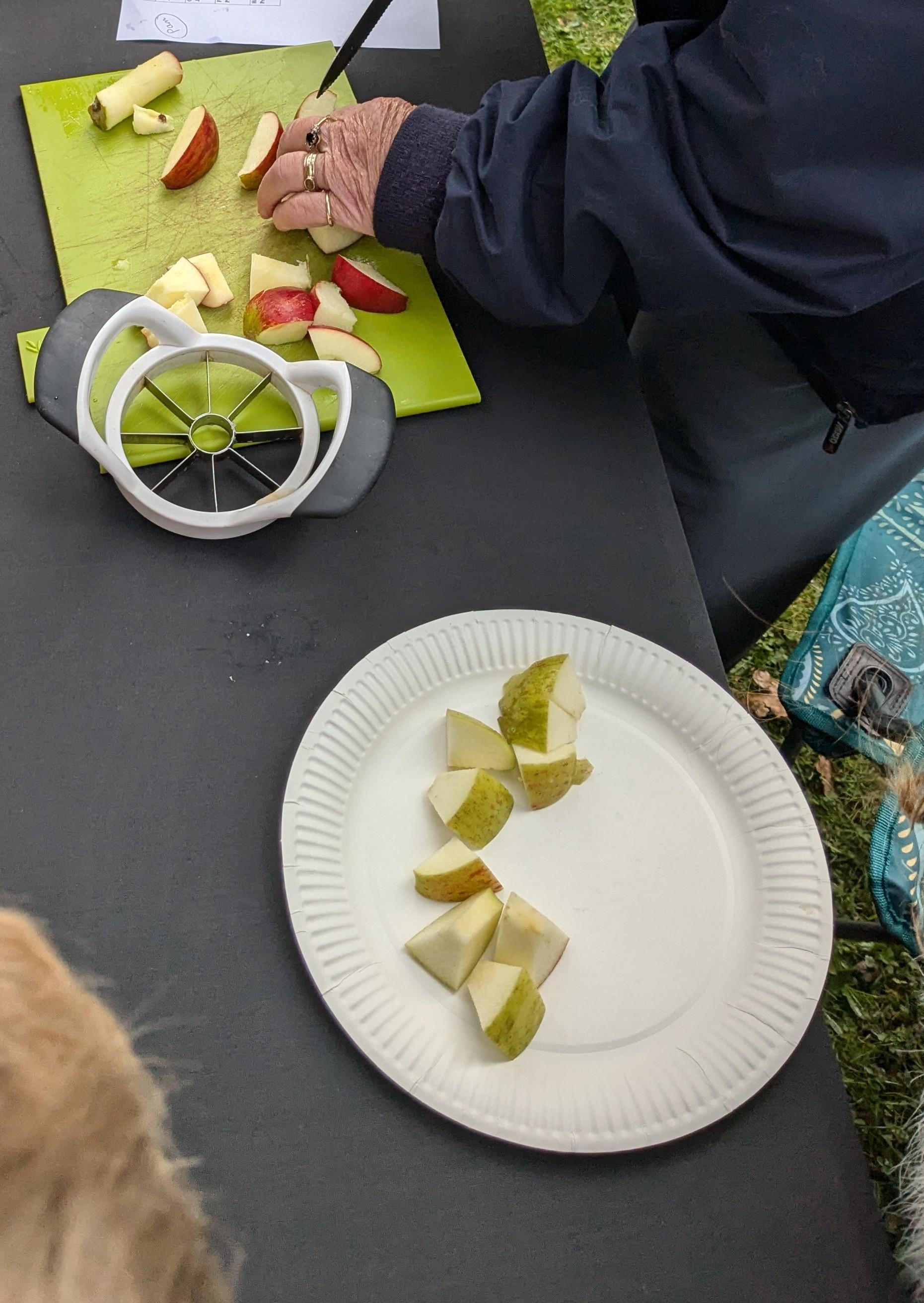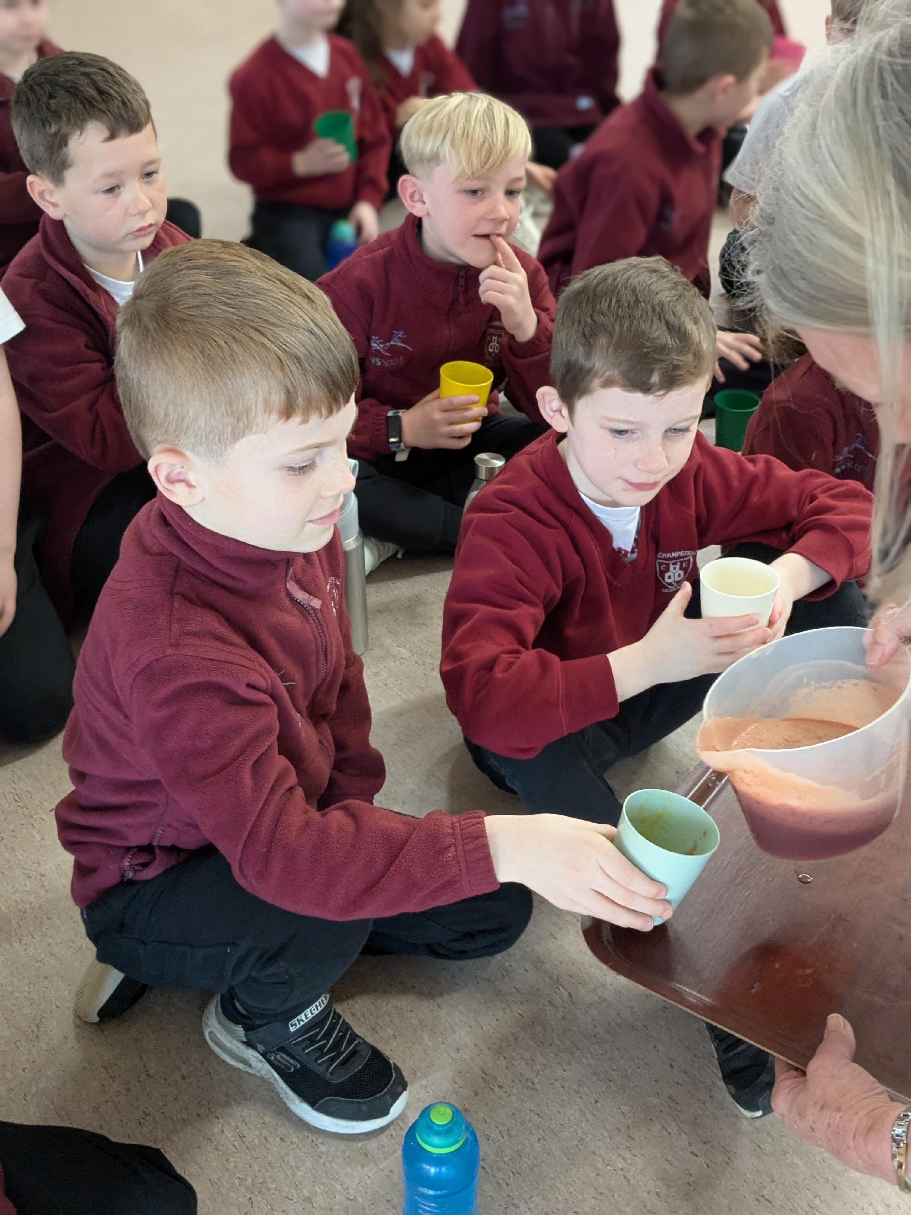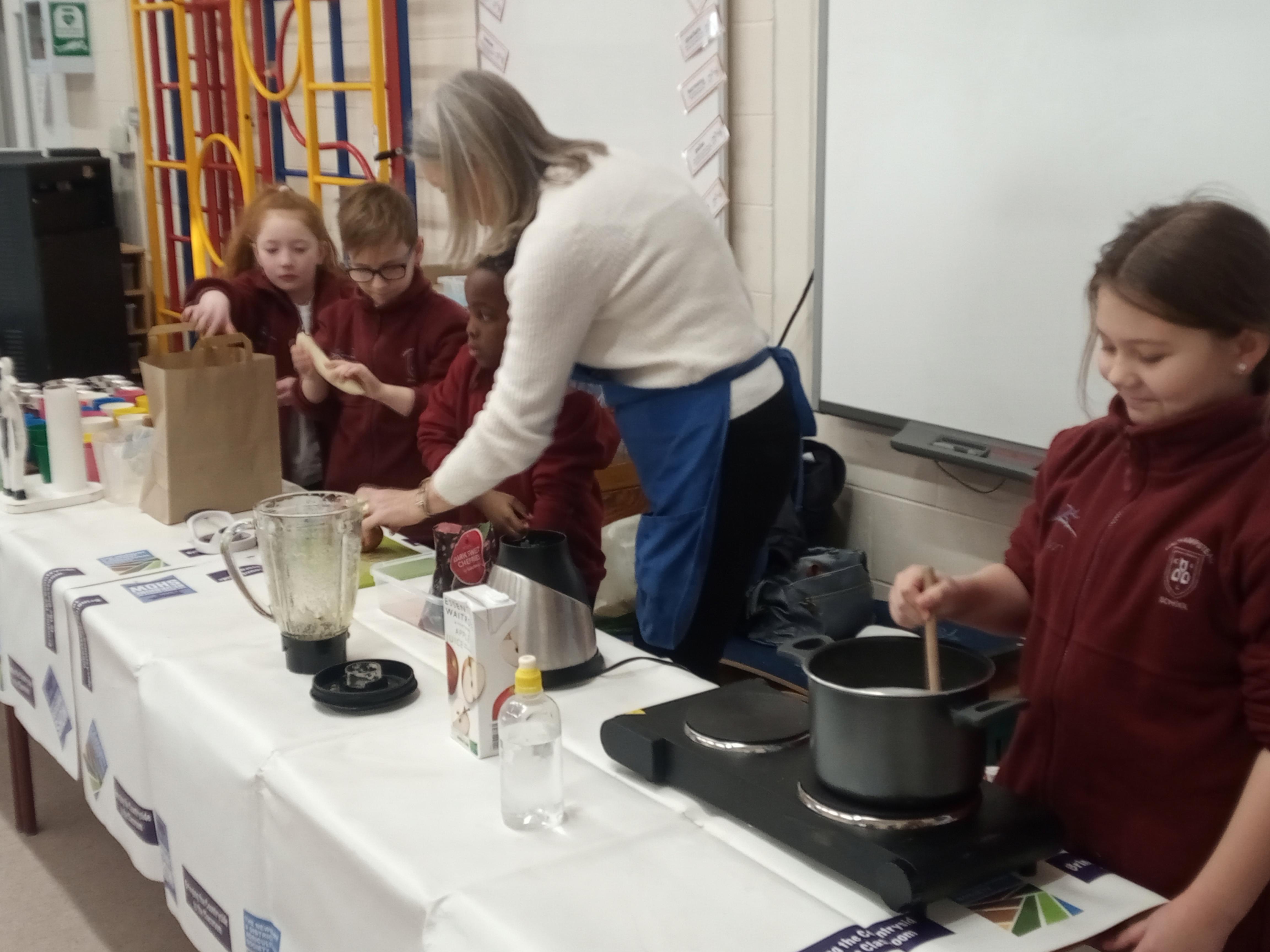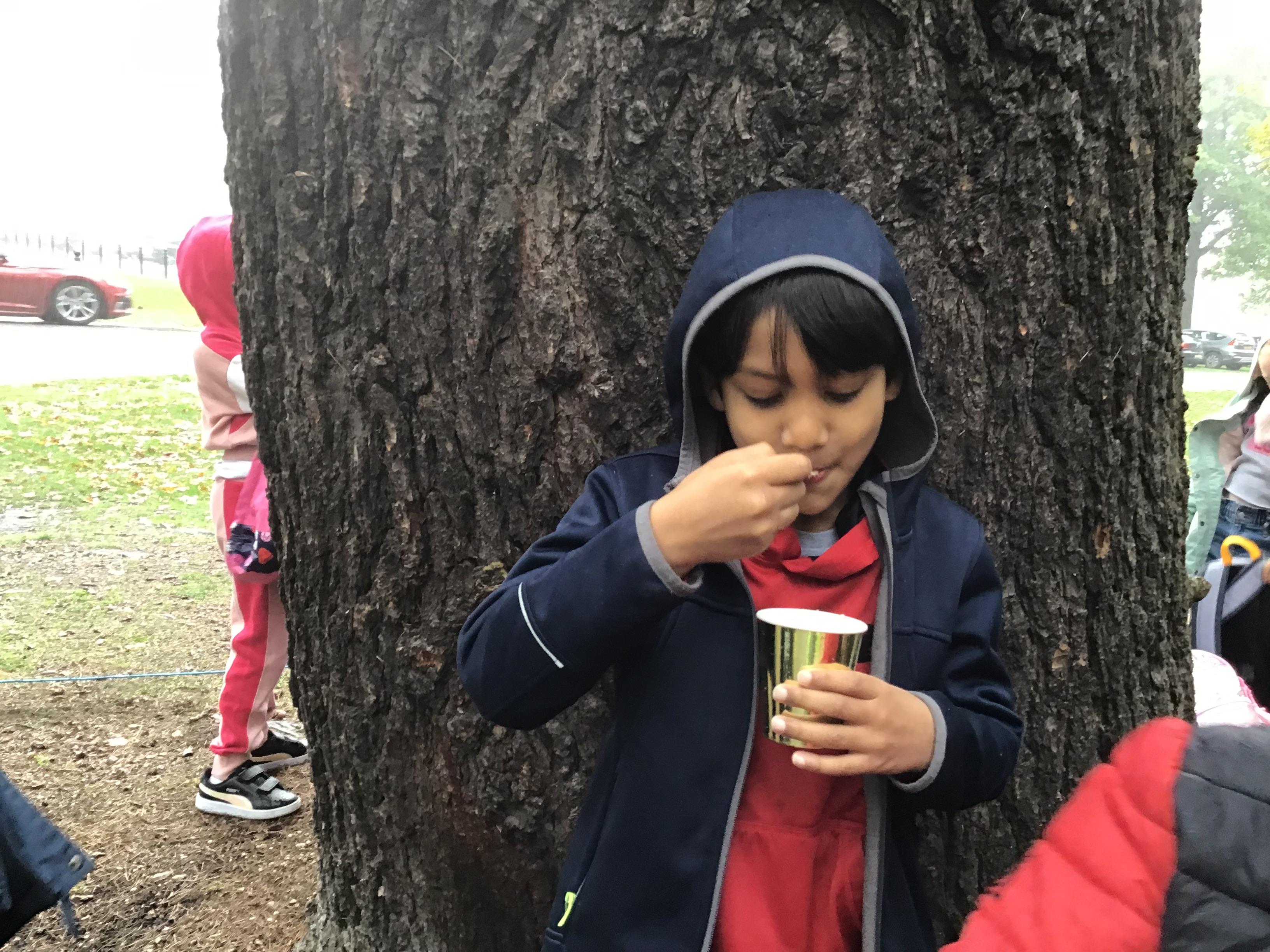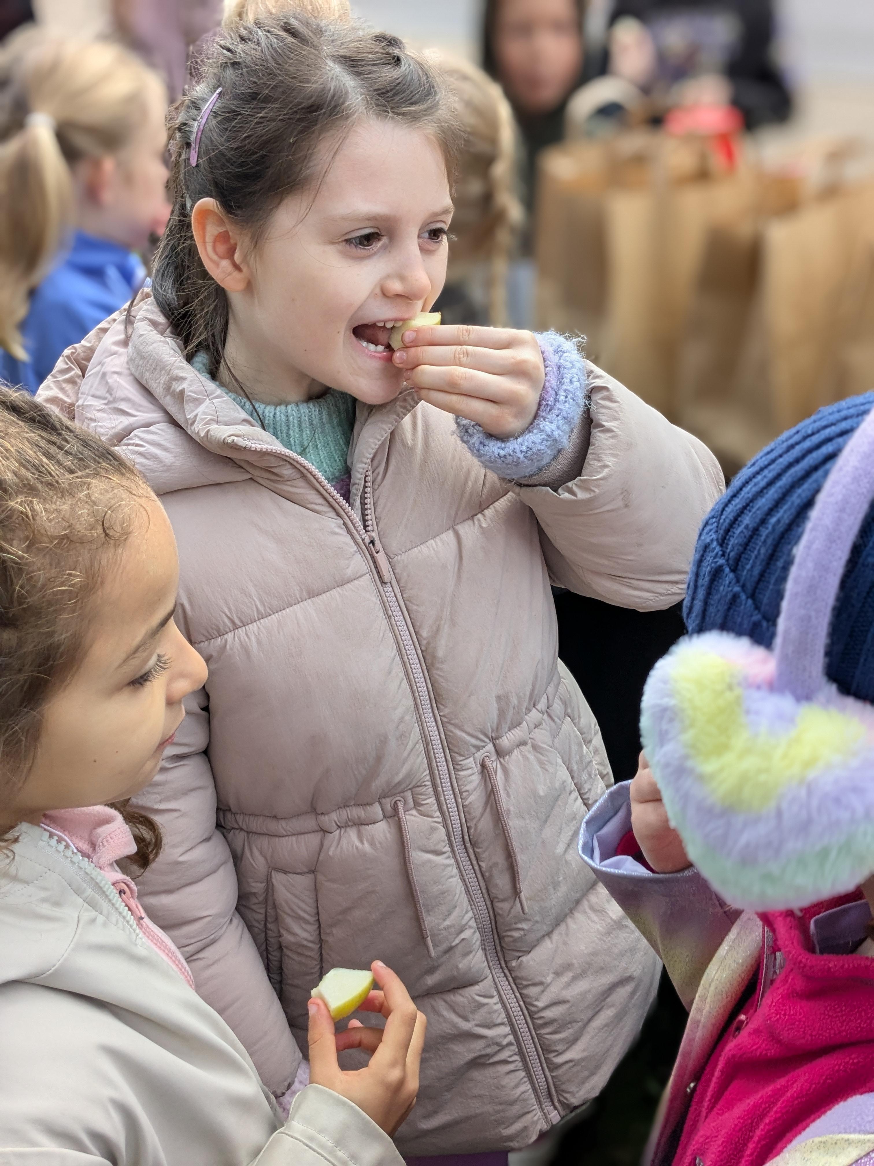 We started the day with an autumn colour walk where we collected tiny snippets of leaves, flowers, seeds etc and attached them to card to make a unique piece of autumn art. Then followed the apple bobbing. It was a ‘marmite’ challenge with some loving and some hating the experience! After that we moved on to a cookery demonstration to learn how fruit and vegetables (apples and beetroot) can be incorporated into sweet treats. The tasting was very popular. The true story of Johnny Appleseed fascinated everyone, as did the beautifully illustrated pictures showing life in the 1800’s USA. Finally we tasted several varieties of apples (Cox’s Orange Pippin, Charles Ross and Russet) as well as learning about many different types of squashes. The day ended with a smile as some of the children got extremely excited by a sign that read 'strictly minibus parking only', as they thought Strictly Come Dancing must be being filmed there!