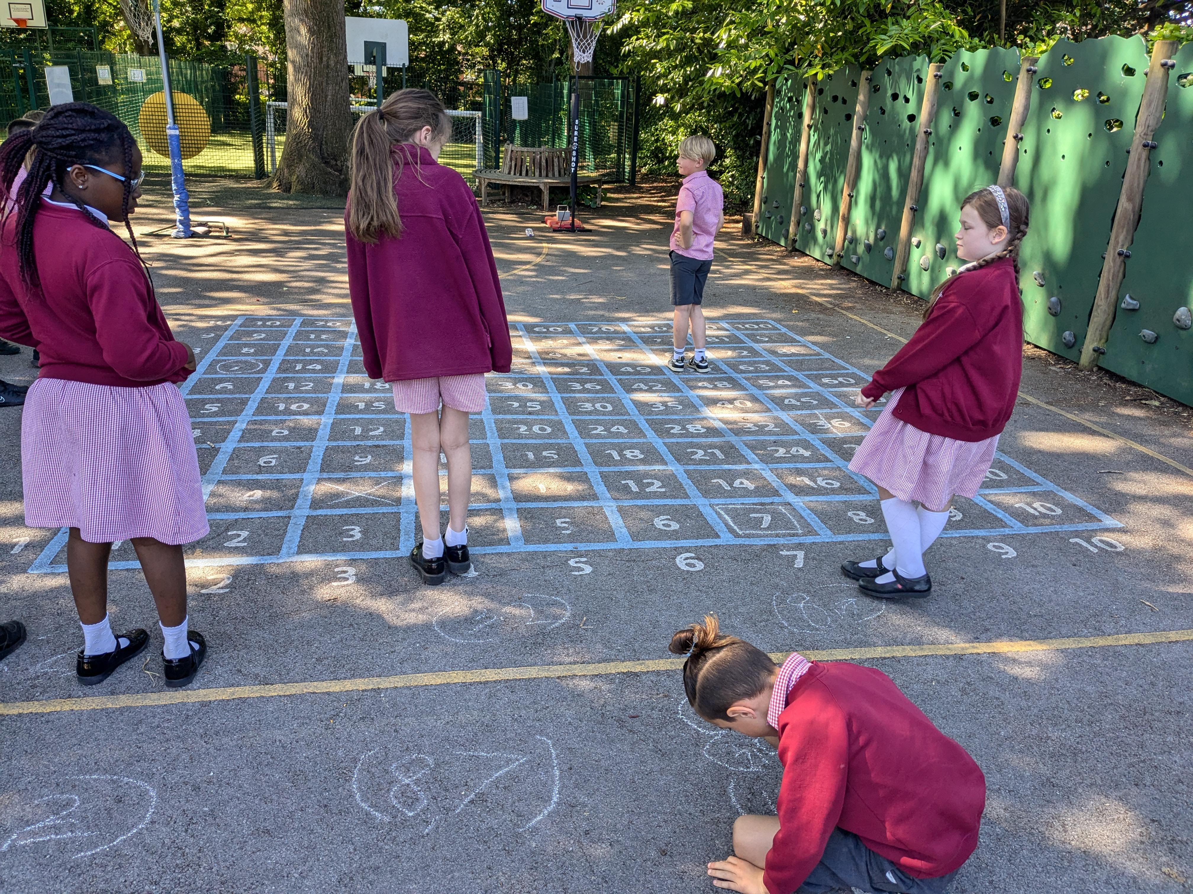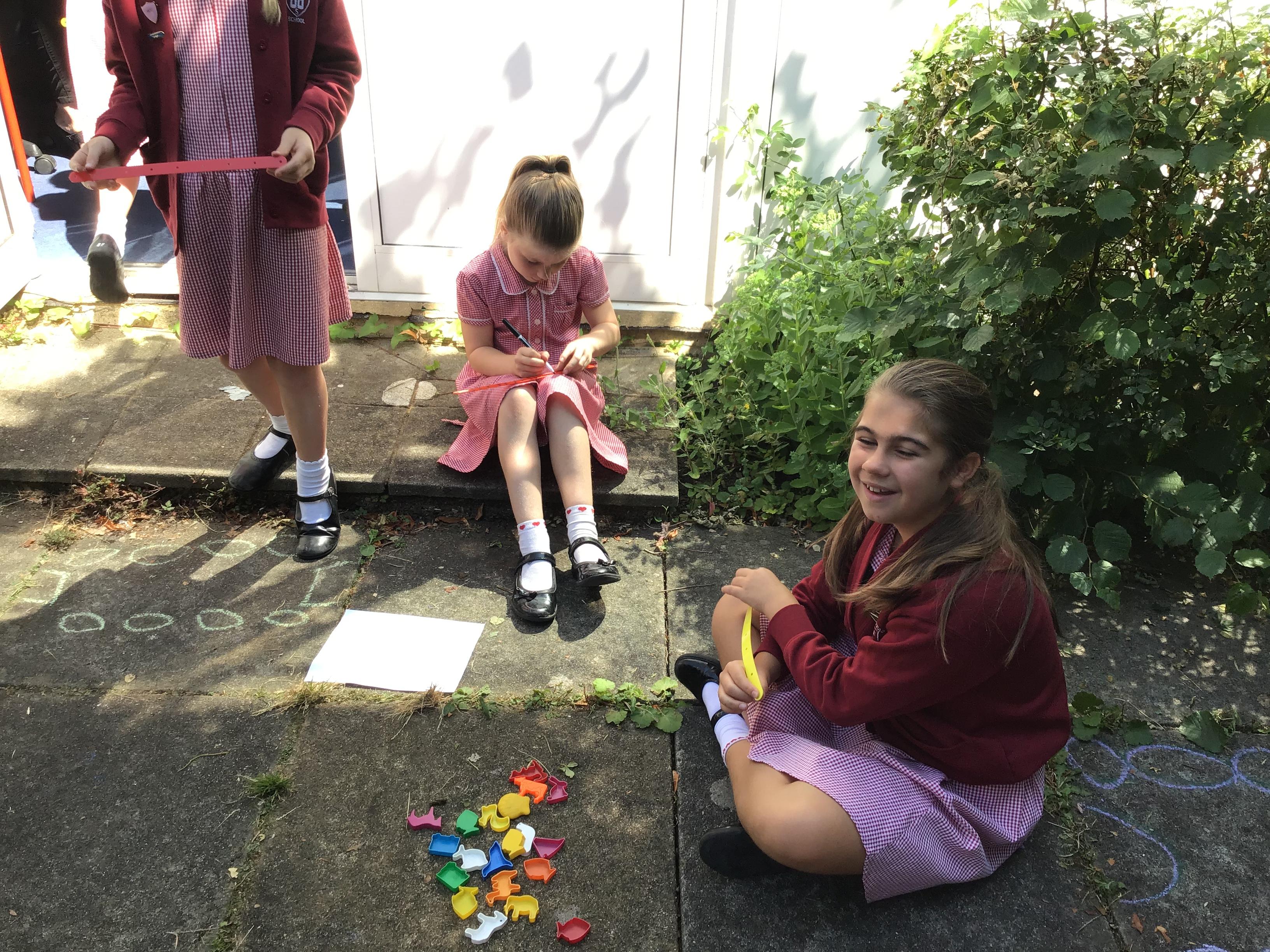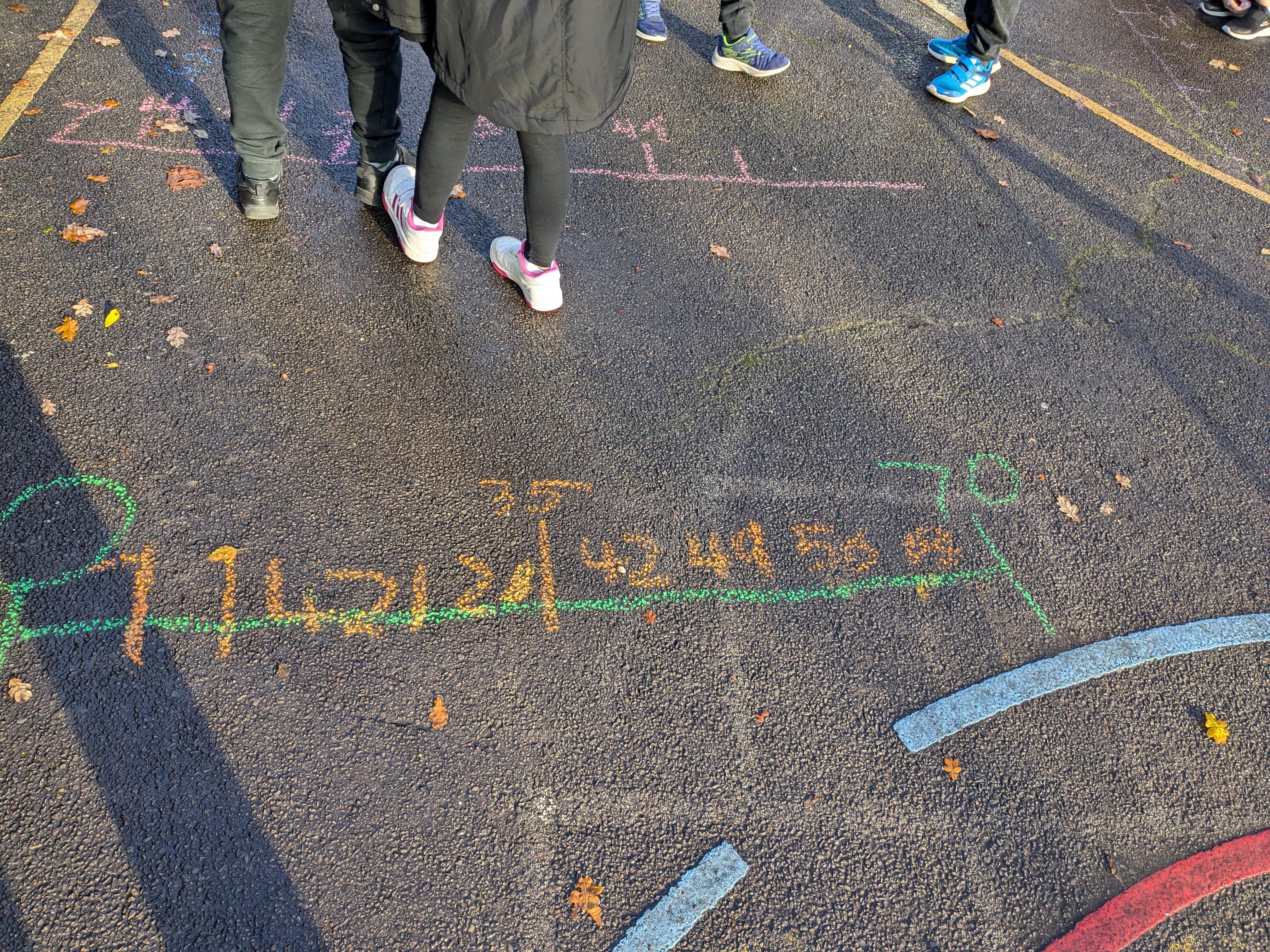 We had a fun outdoor maths lesson today, multiplying and dividing by 10 and 100. (5.6.18)