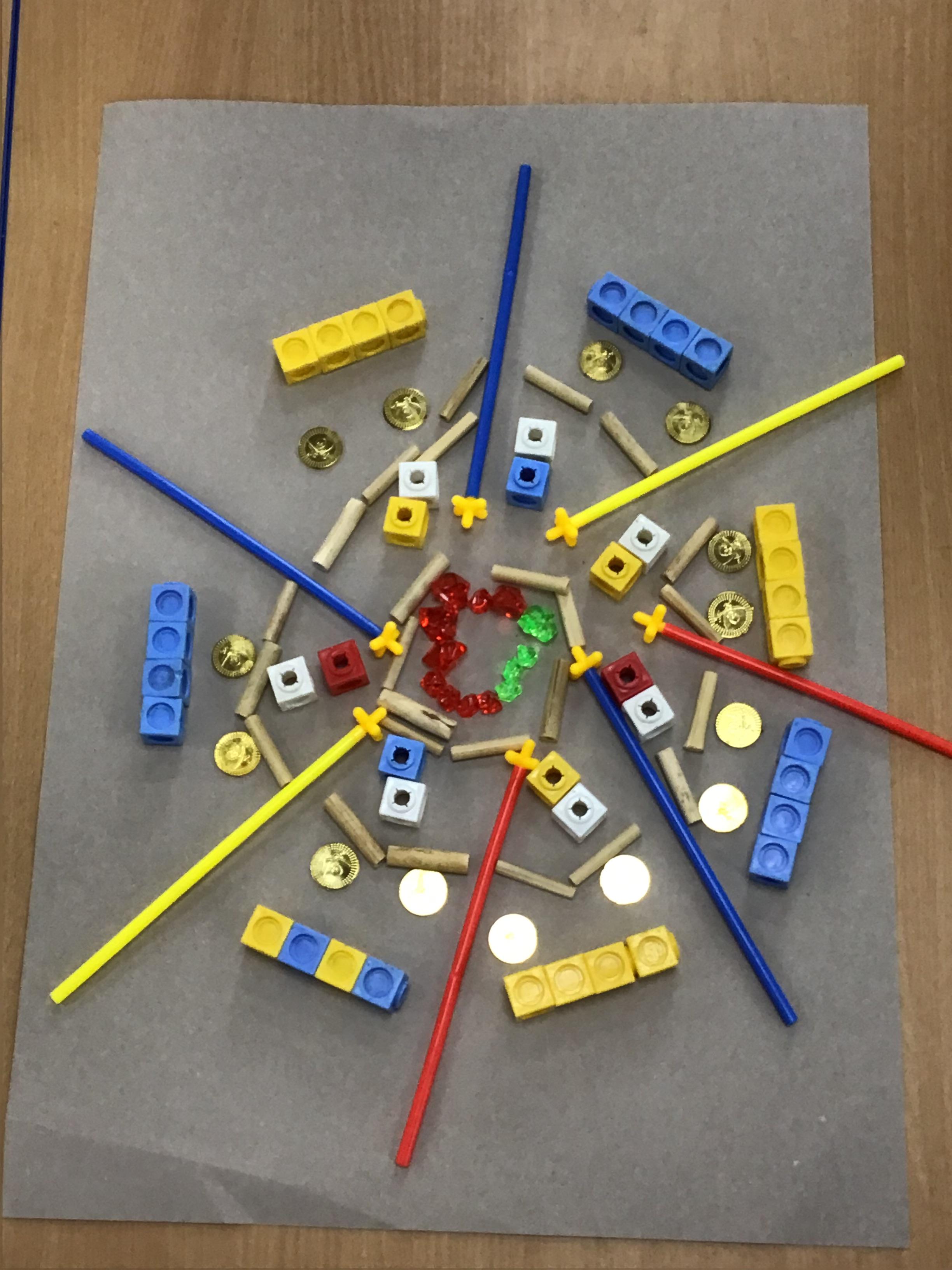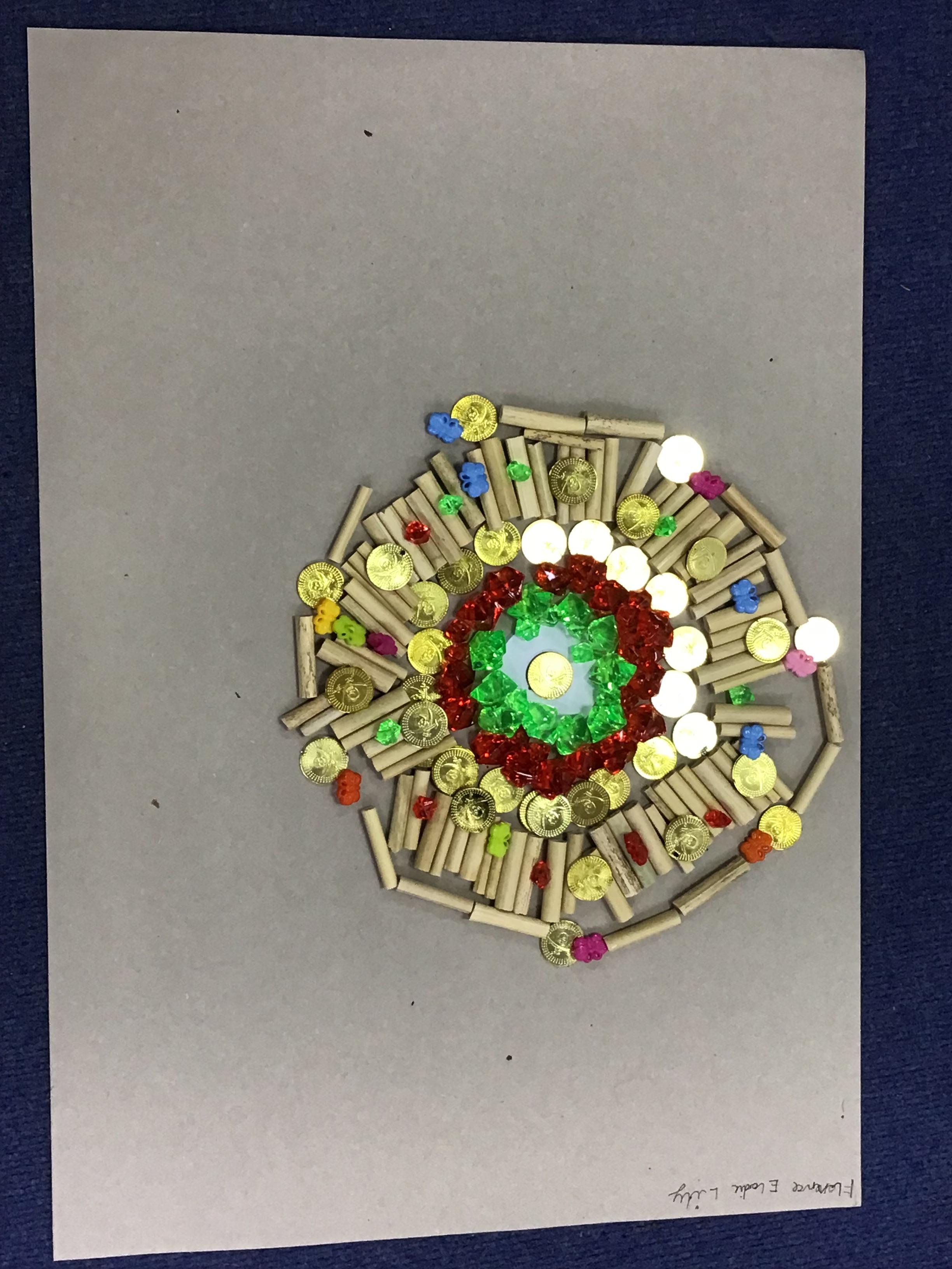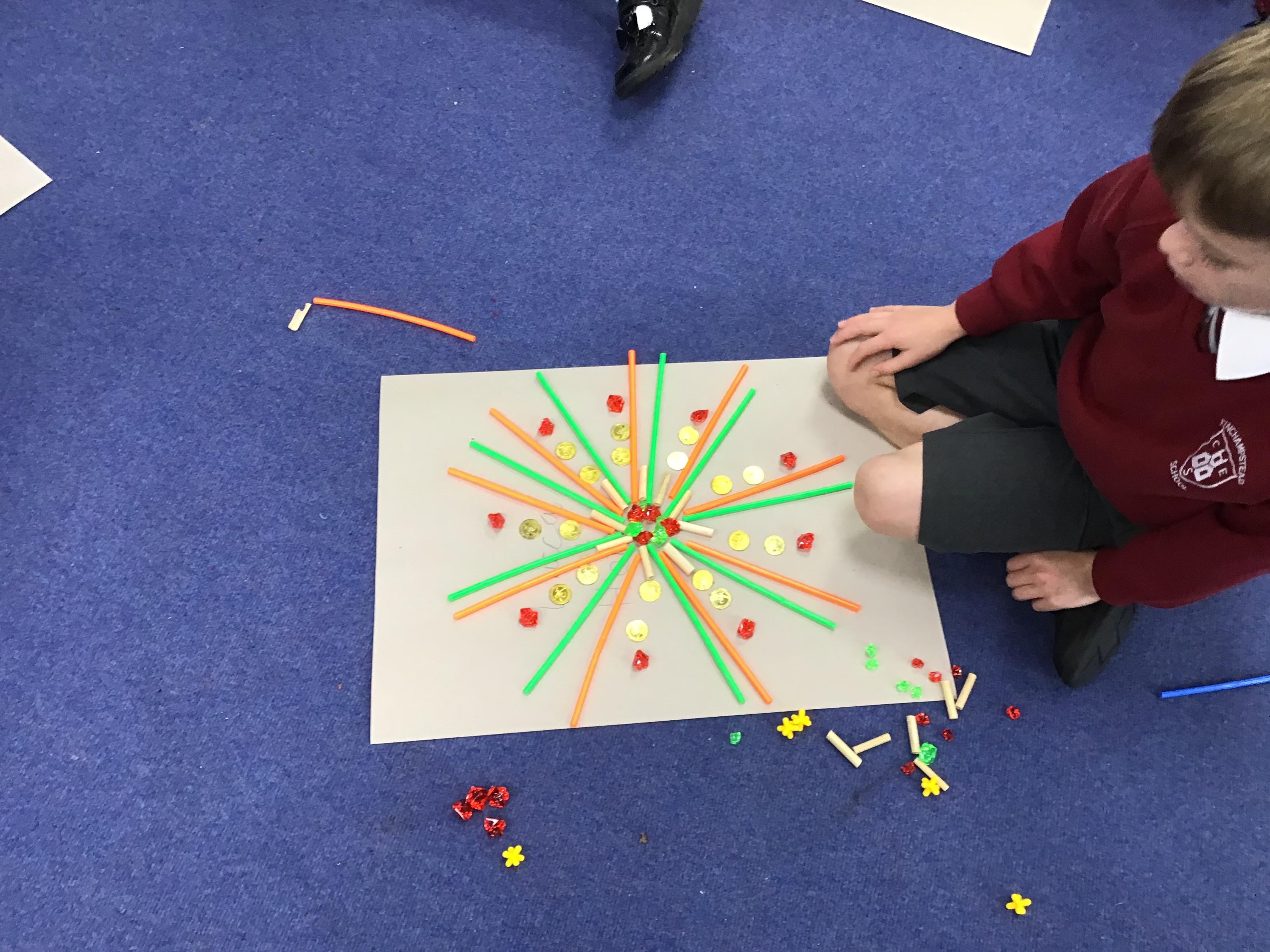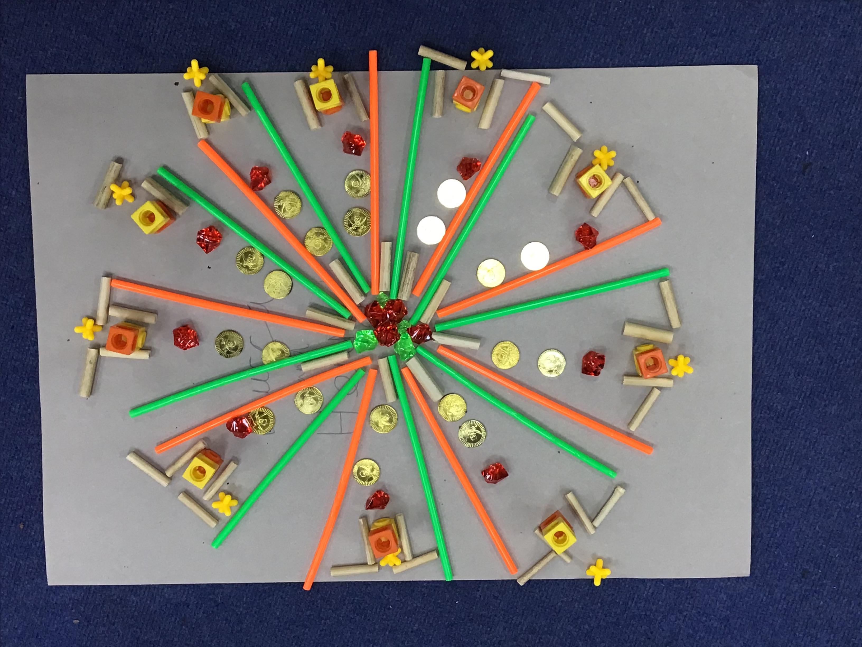 When the weather makes outdoor art challenging, Chaffinch show great resilience and creativity as they continue exploring their work on patterns using maths equipment and various materials indoors. They create some wonderful mandalas.