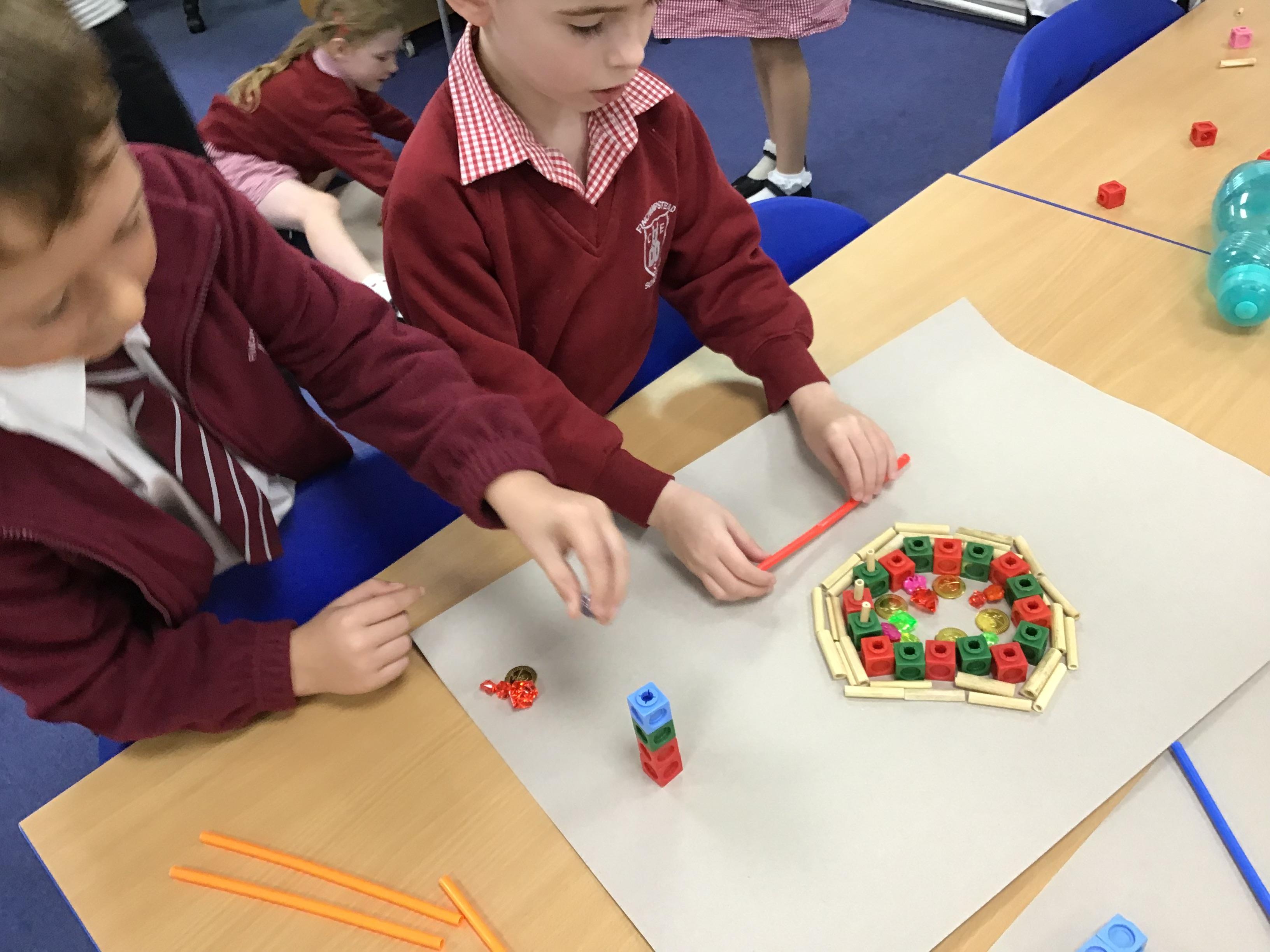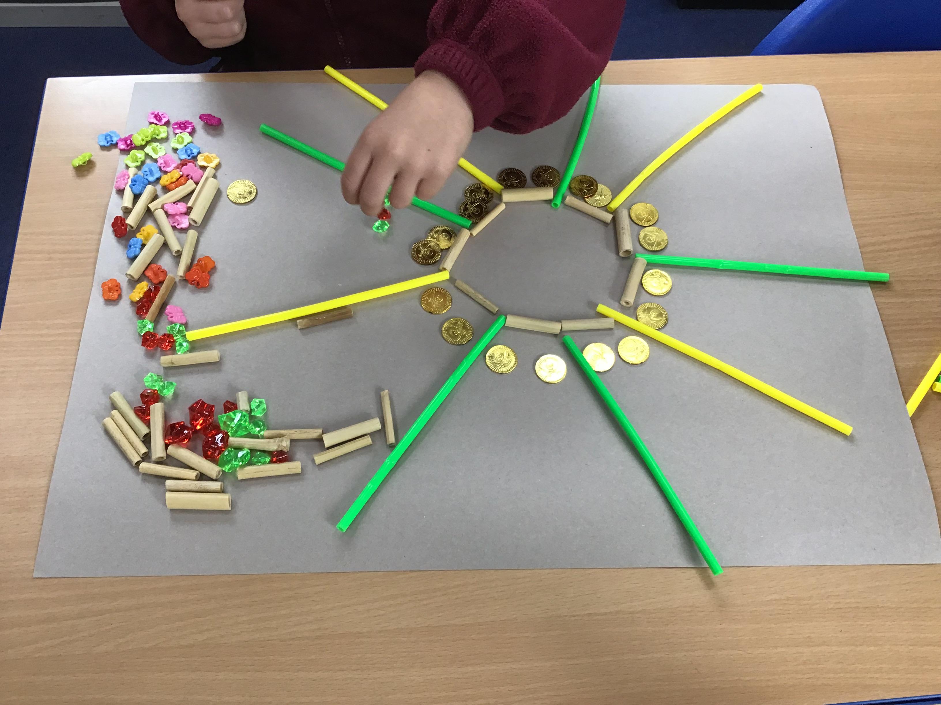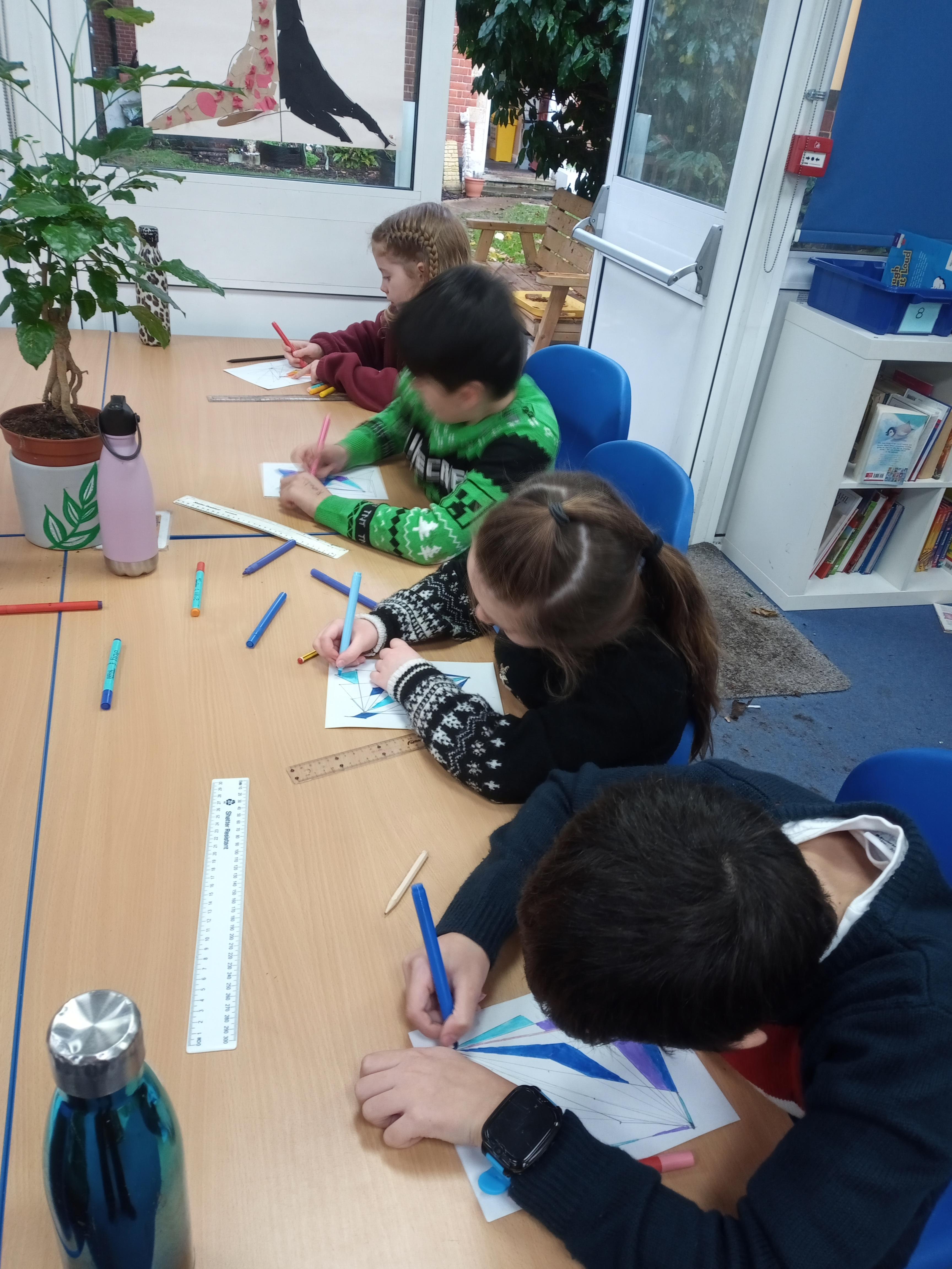 When the weather makes outdoor art challenging, Chaffinch show great resilience and creativity as they continue exploring their work on patterns using maths equipment and various materials indoors. They create some wonderful mandalas.