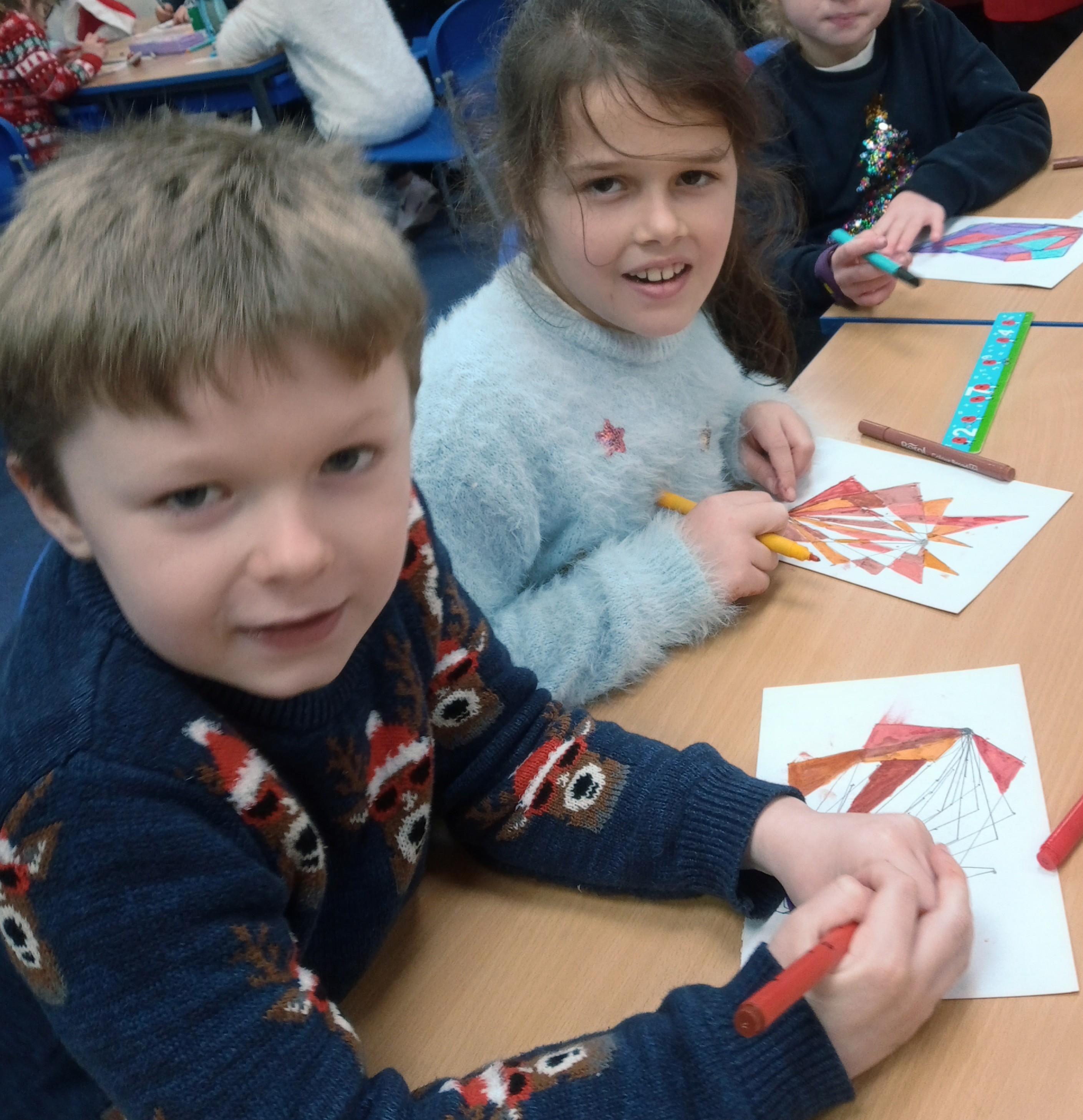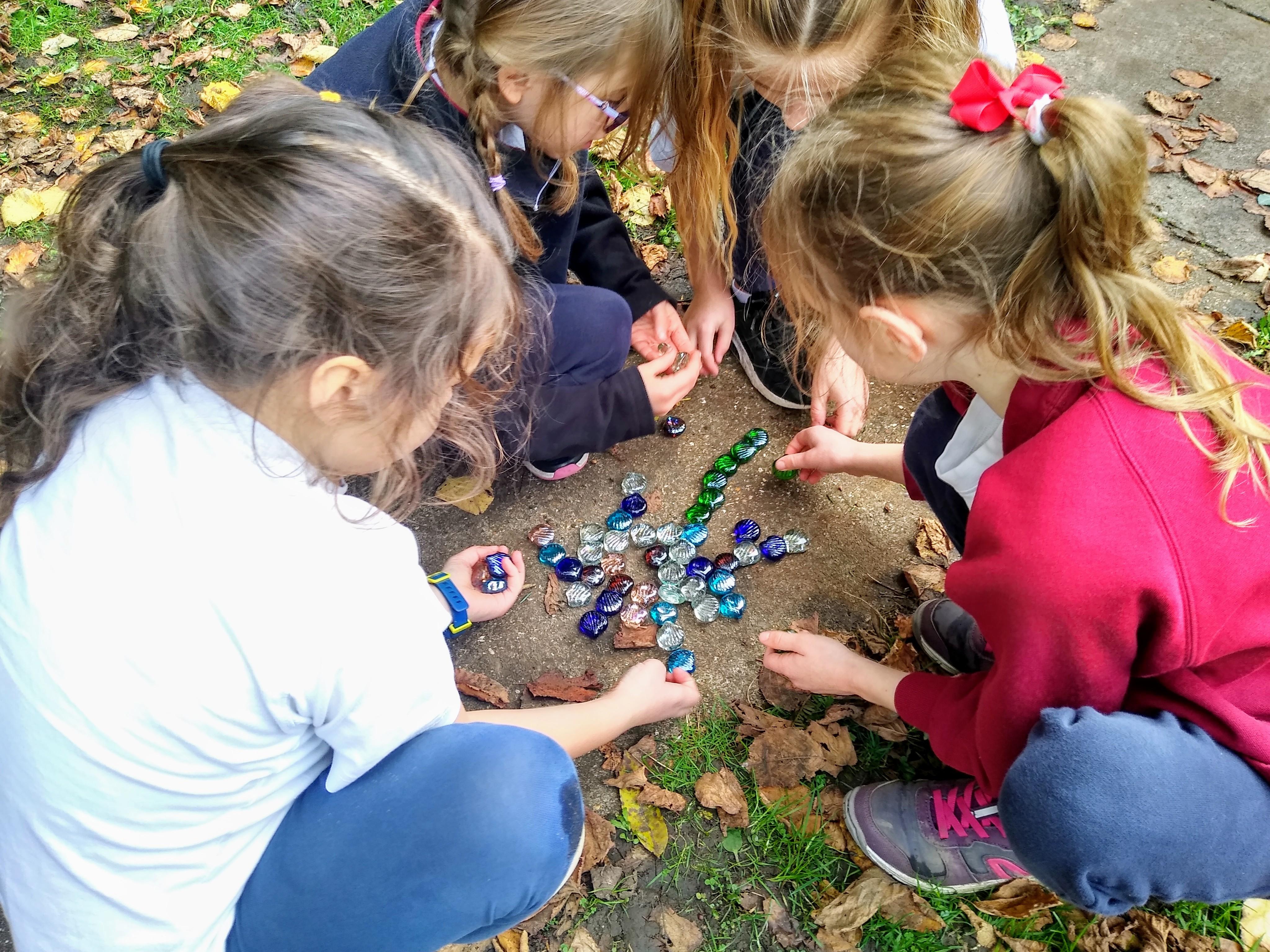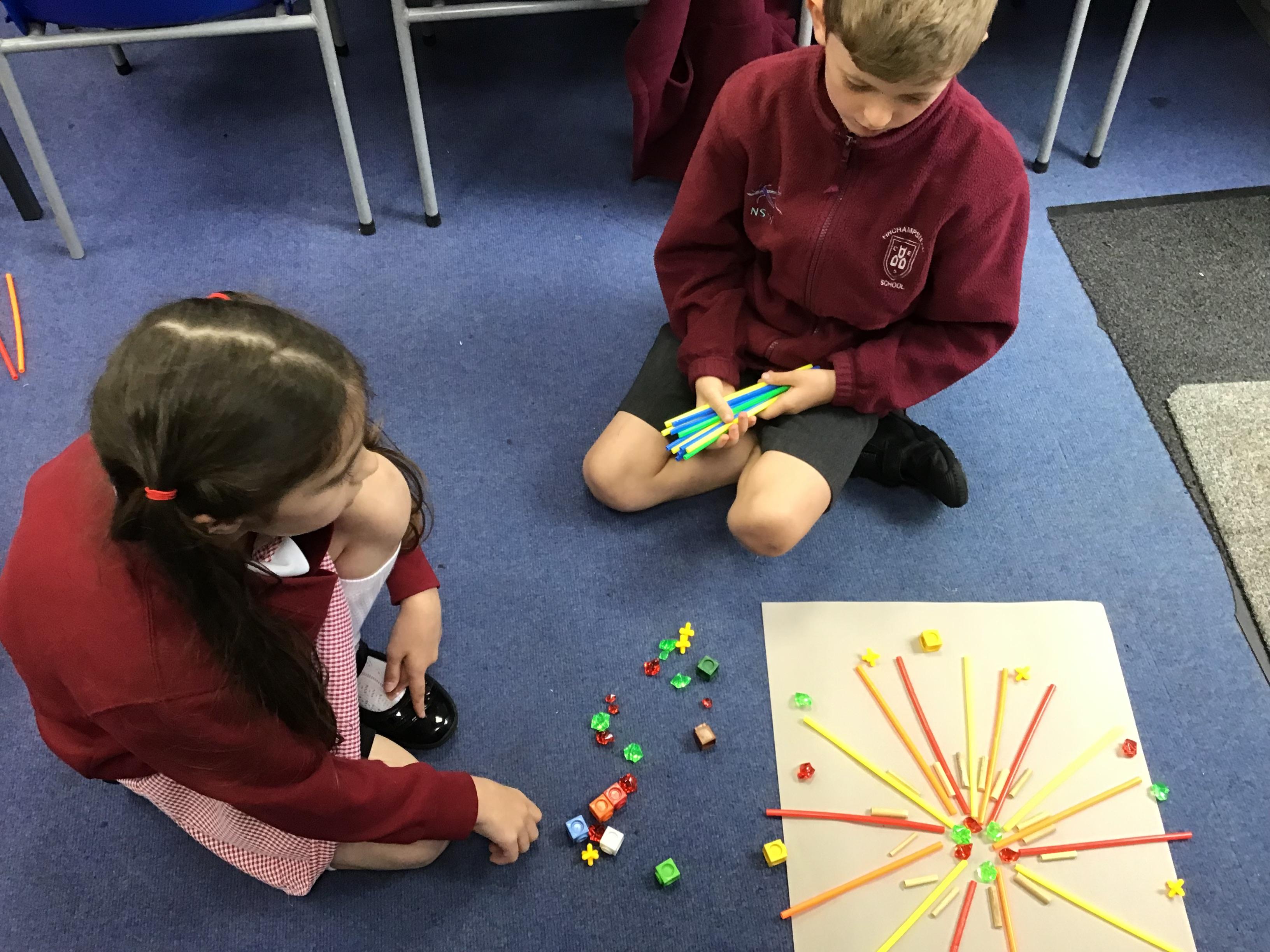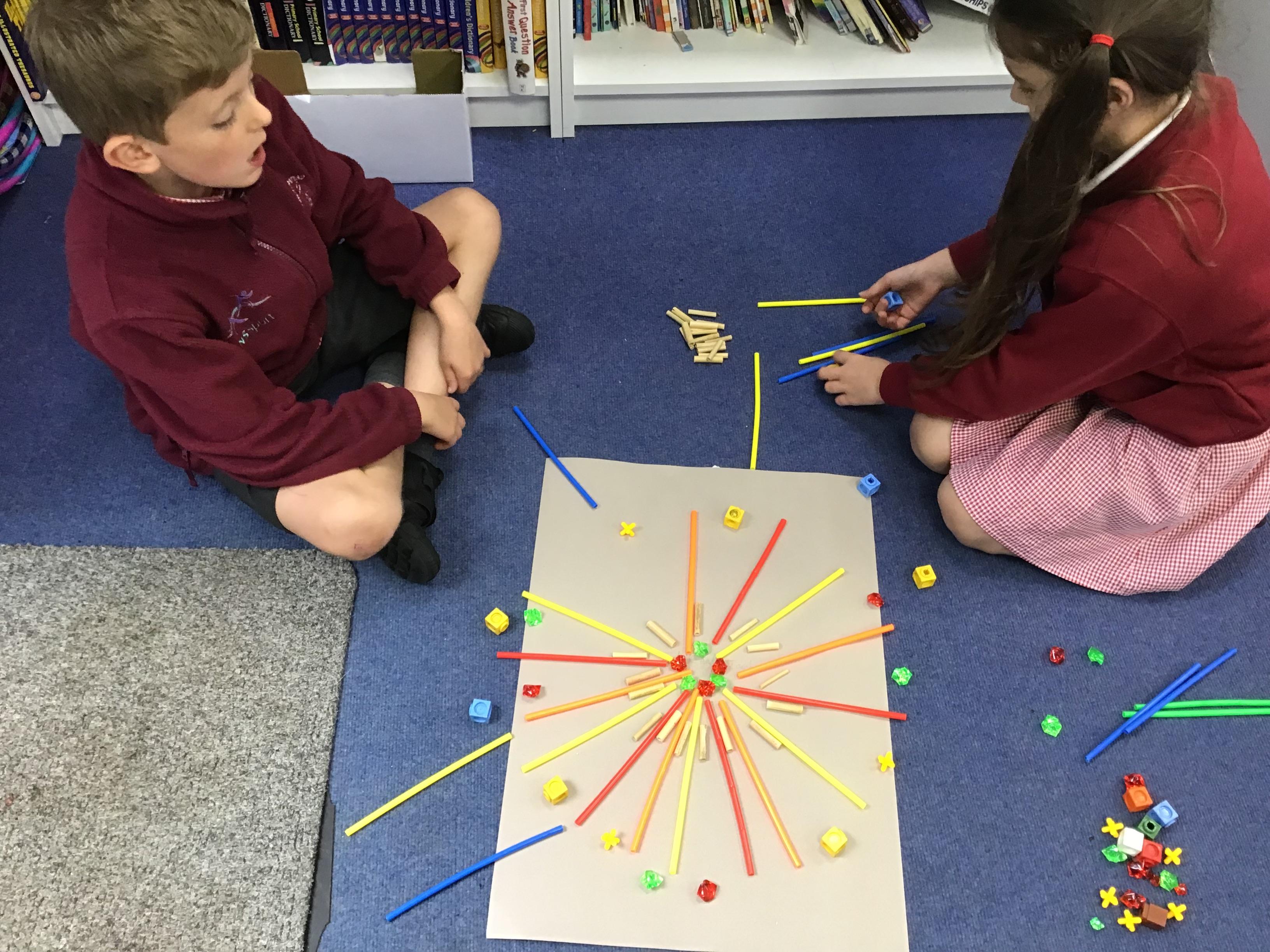 When the weather makes outdoor art challenging, Chaffinch show great resilience and creativity as they continue exploring their work on patterns using maths equipment and various materials indoors. They create some wonderful mandalas.