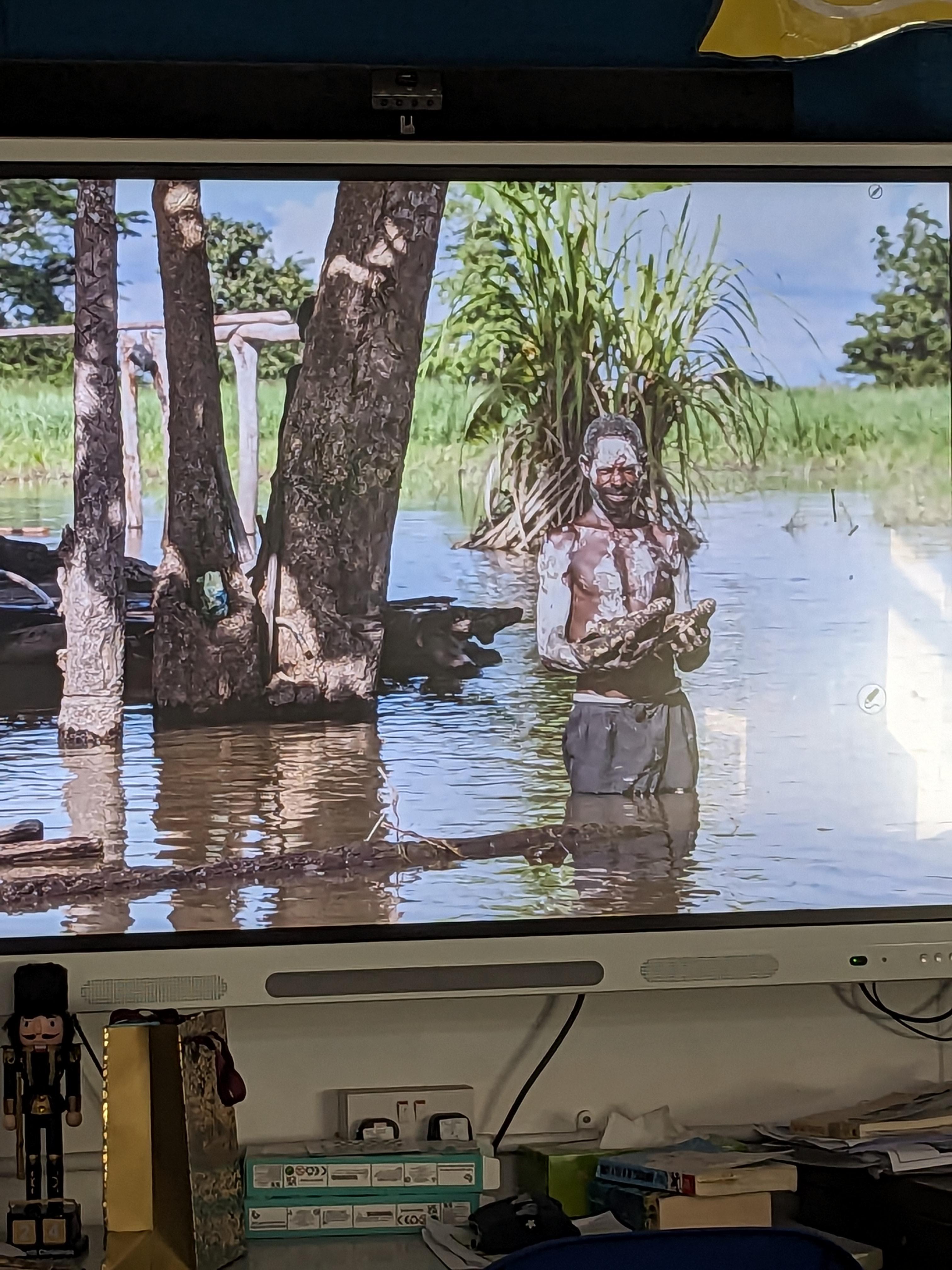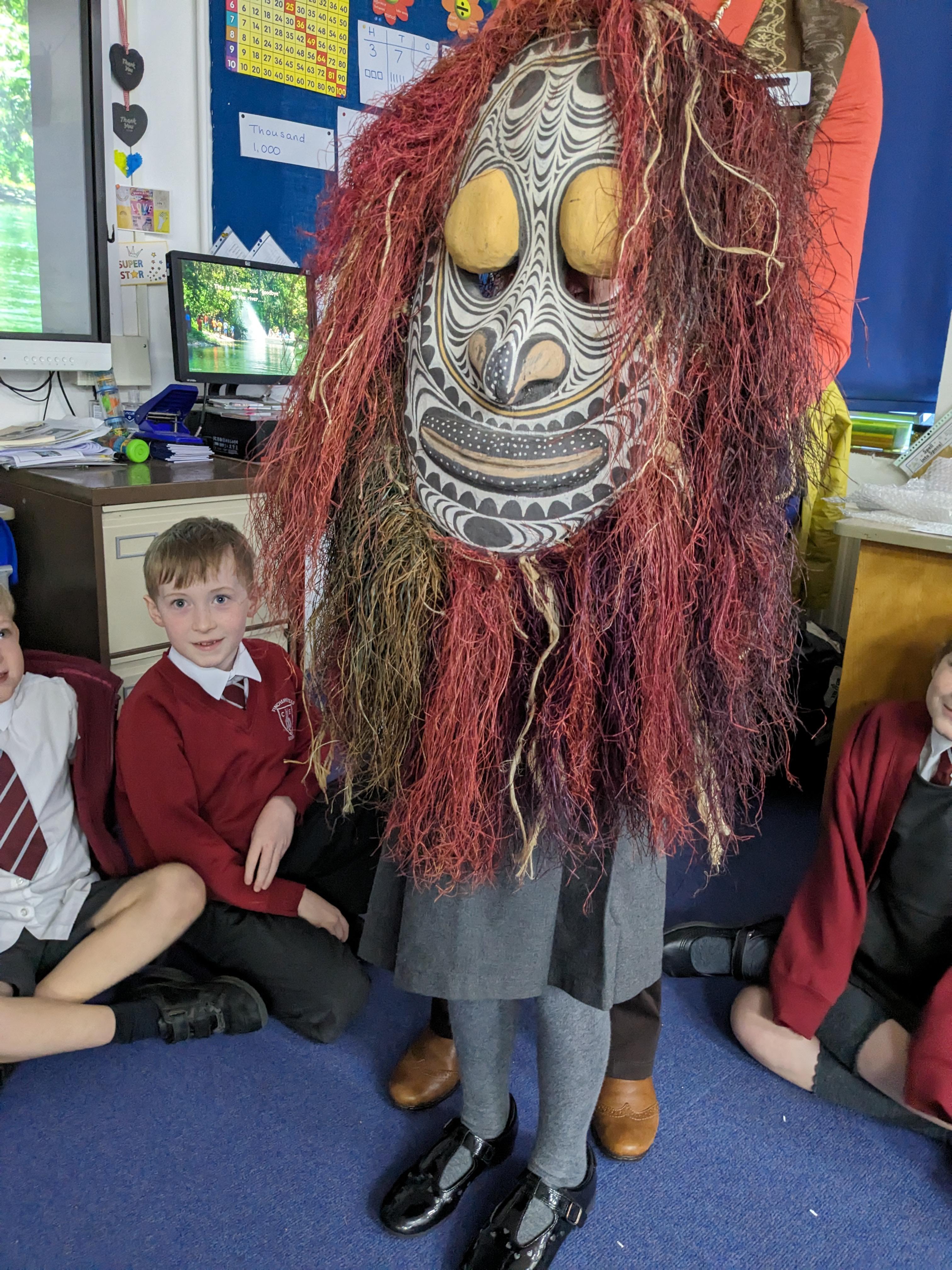 This is completely optional. If your child would like to take part, the story we’re retelling is Anansi and the Tiger. Anansi tricks the tiger into giving away all his stories. They have a copy of the story or you can find one on line.