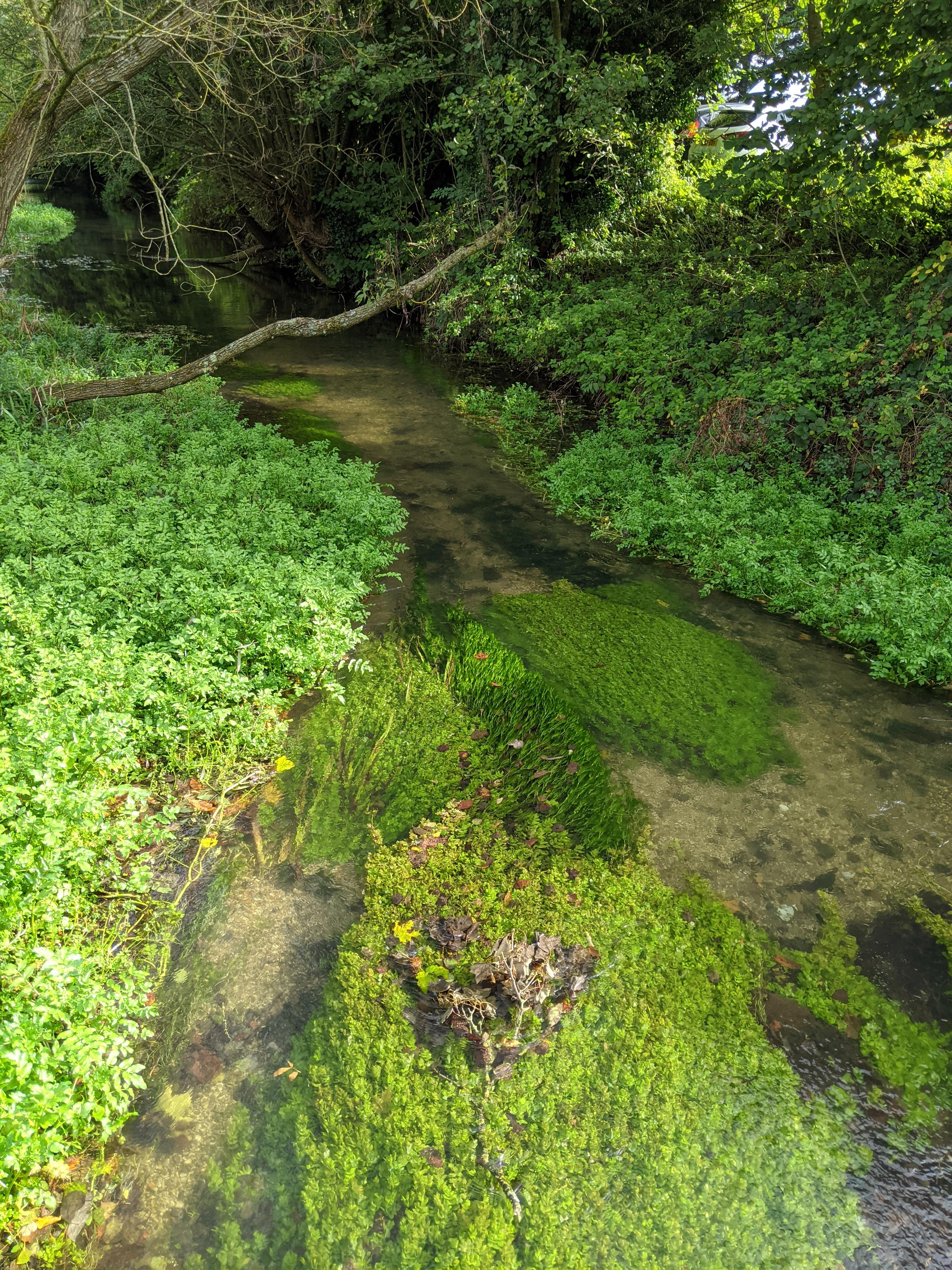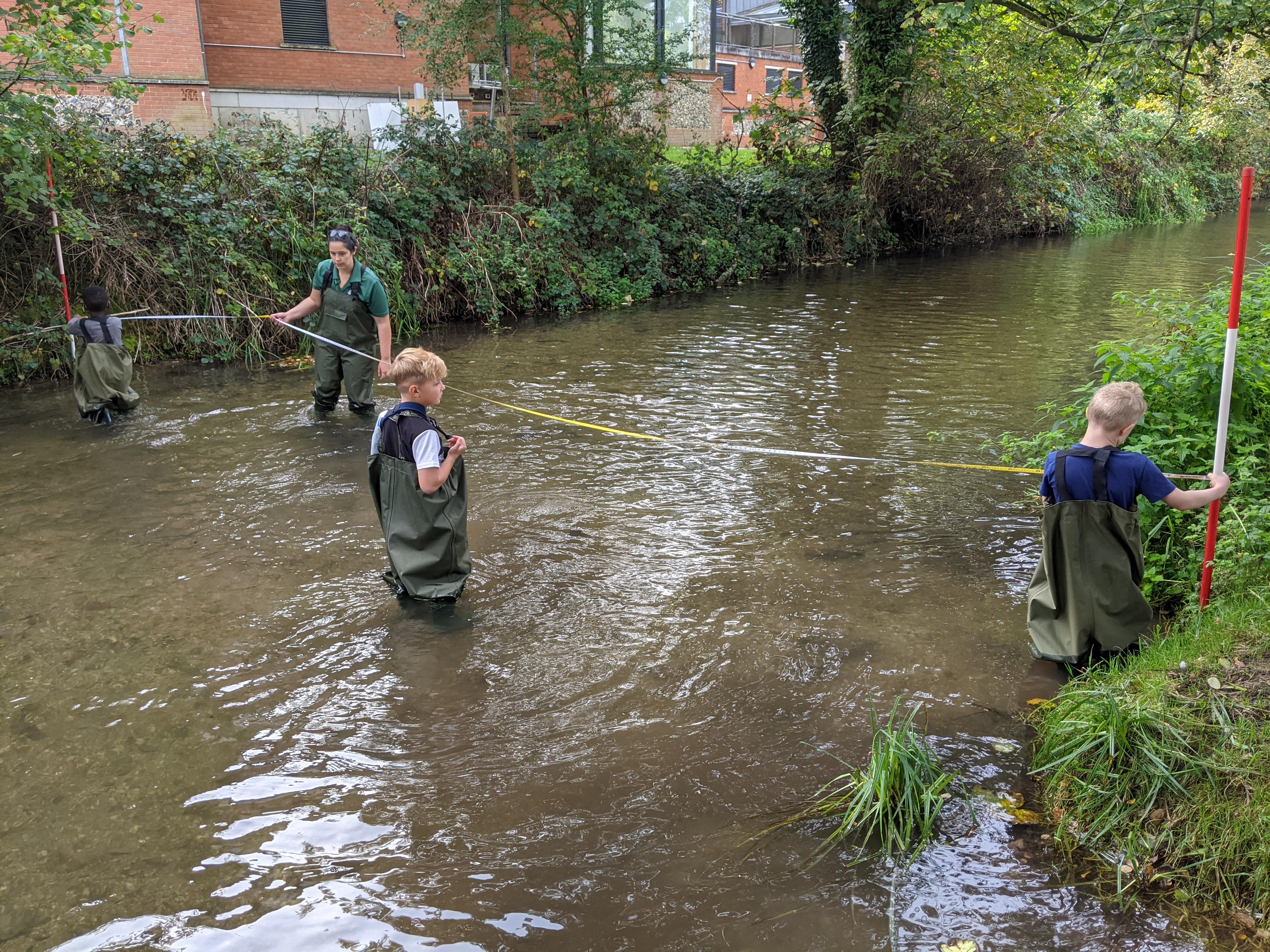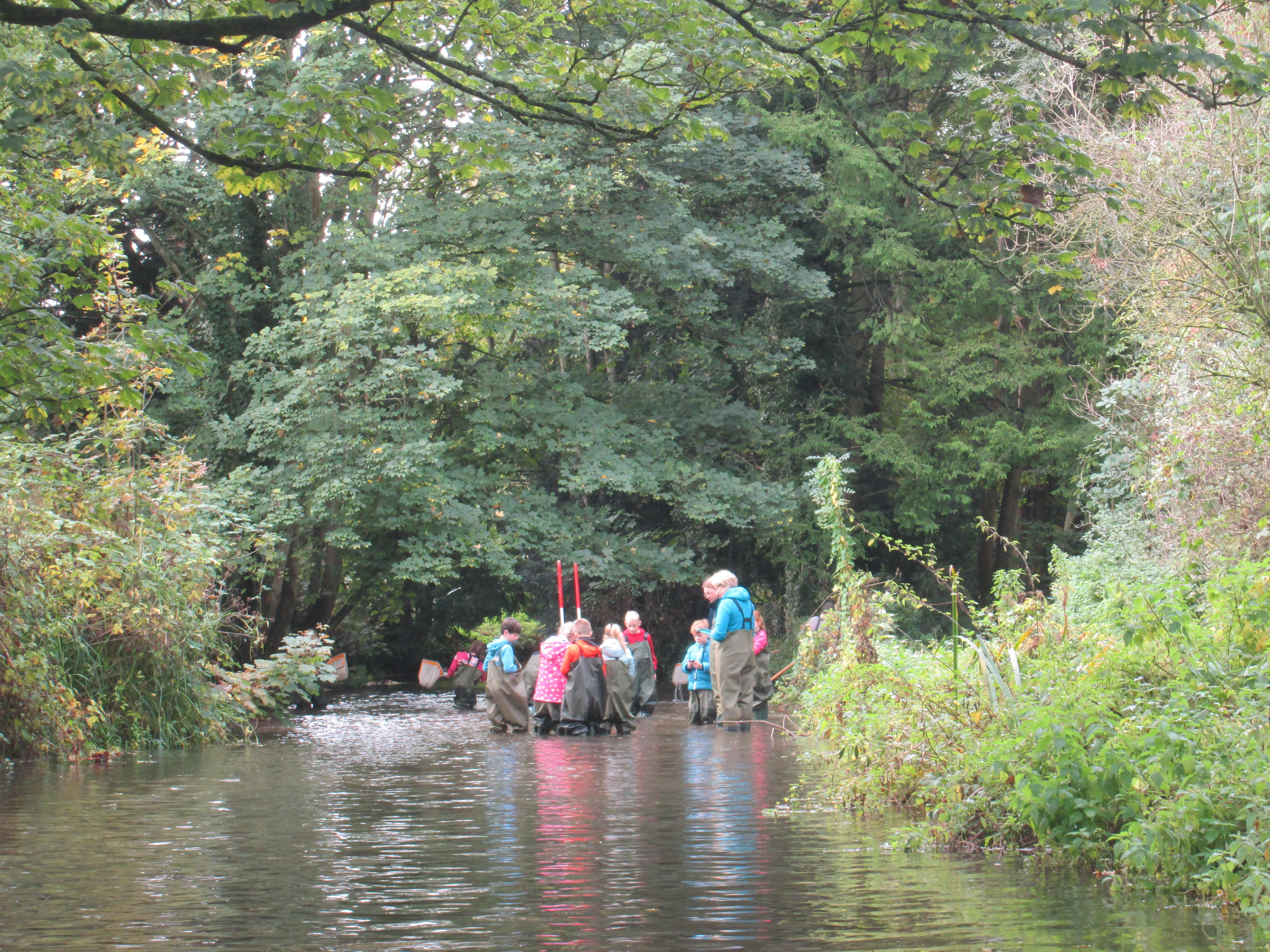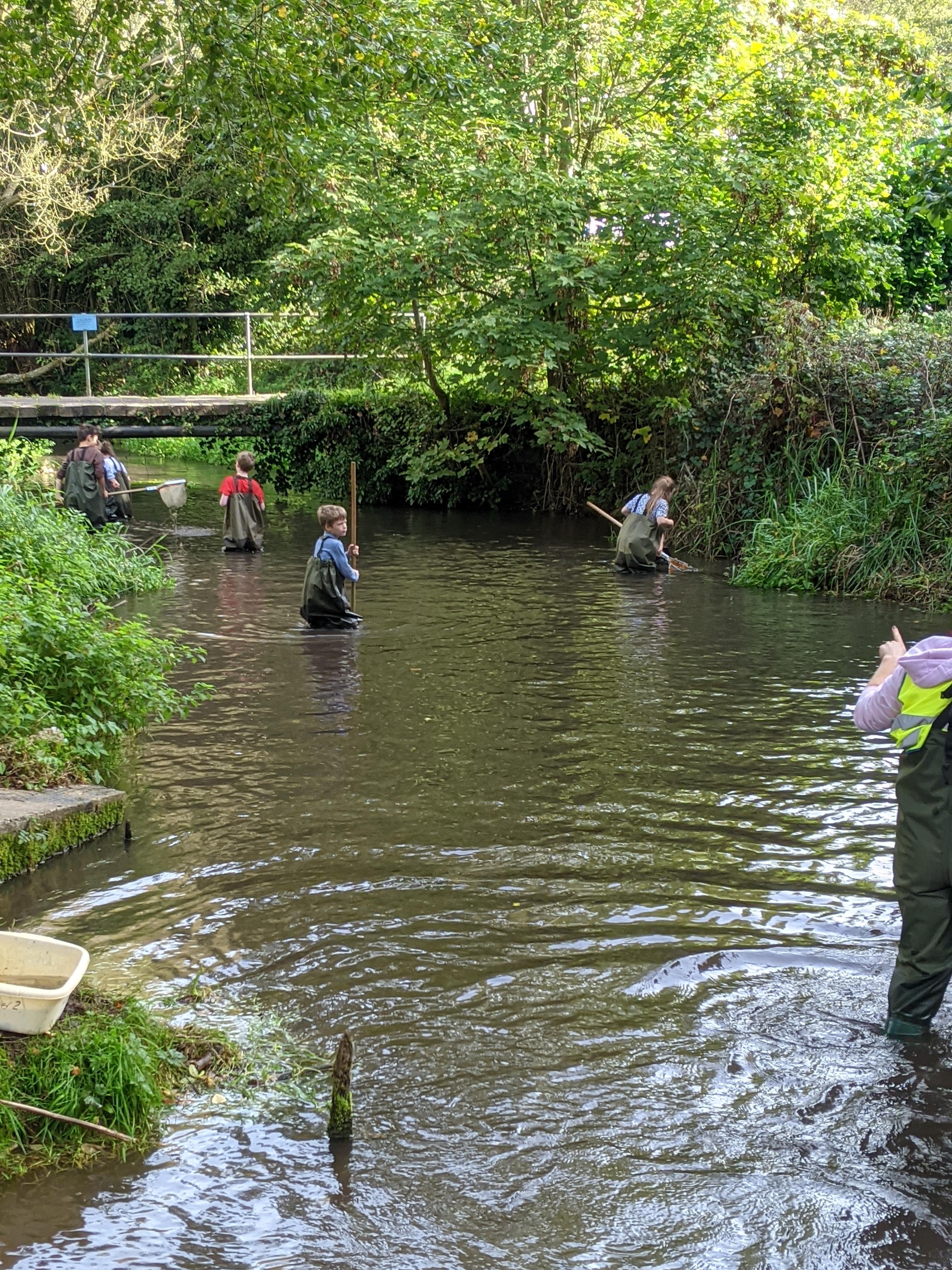 Wading along the chalk bed river