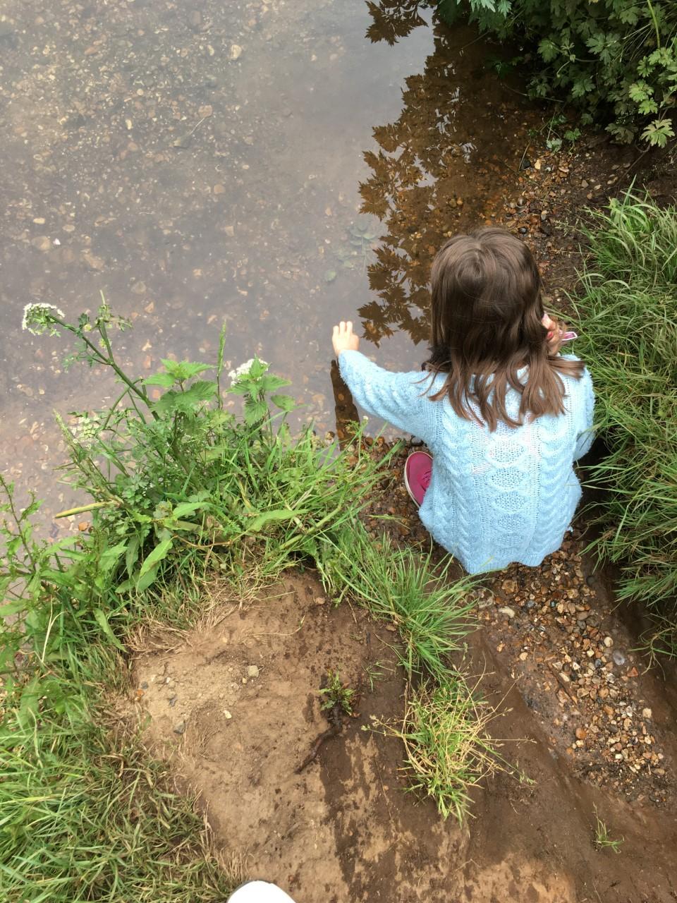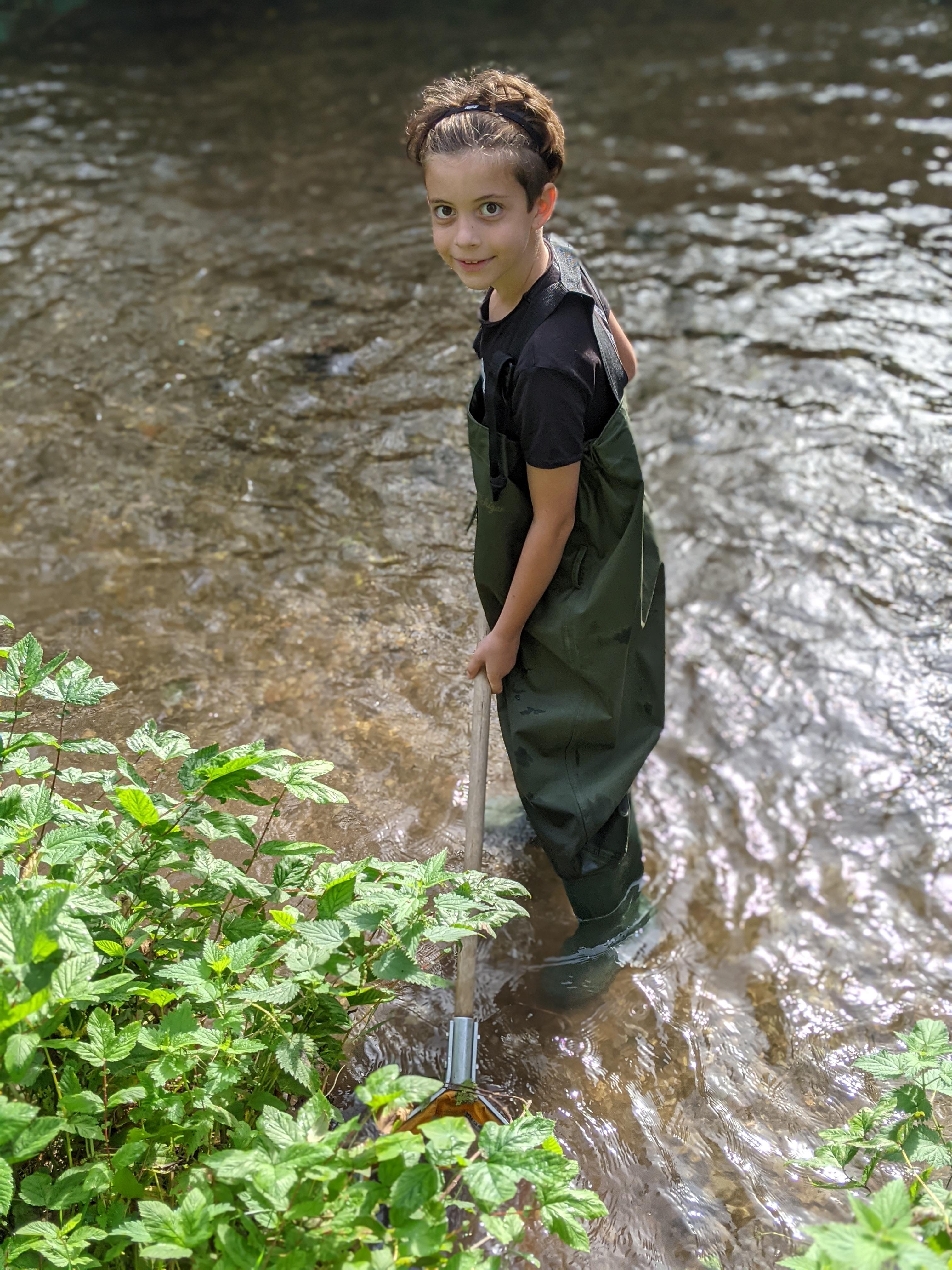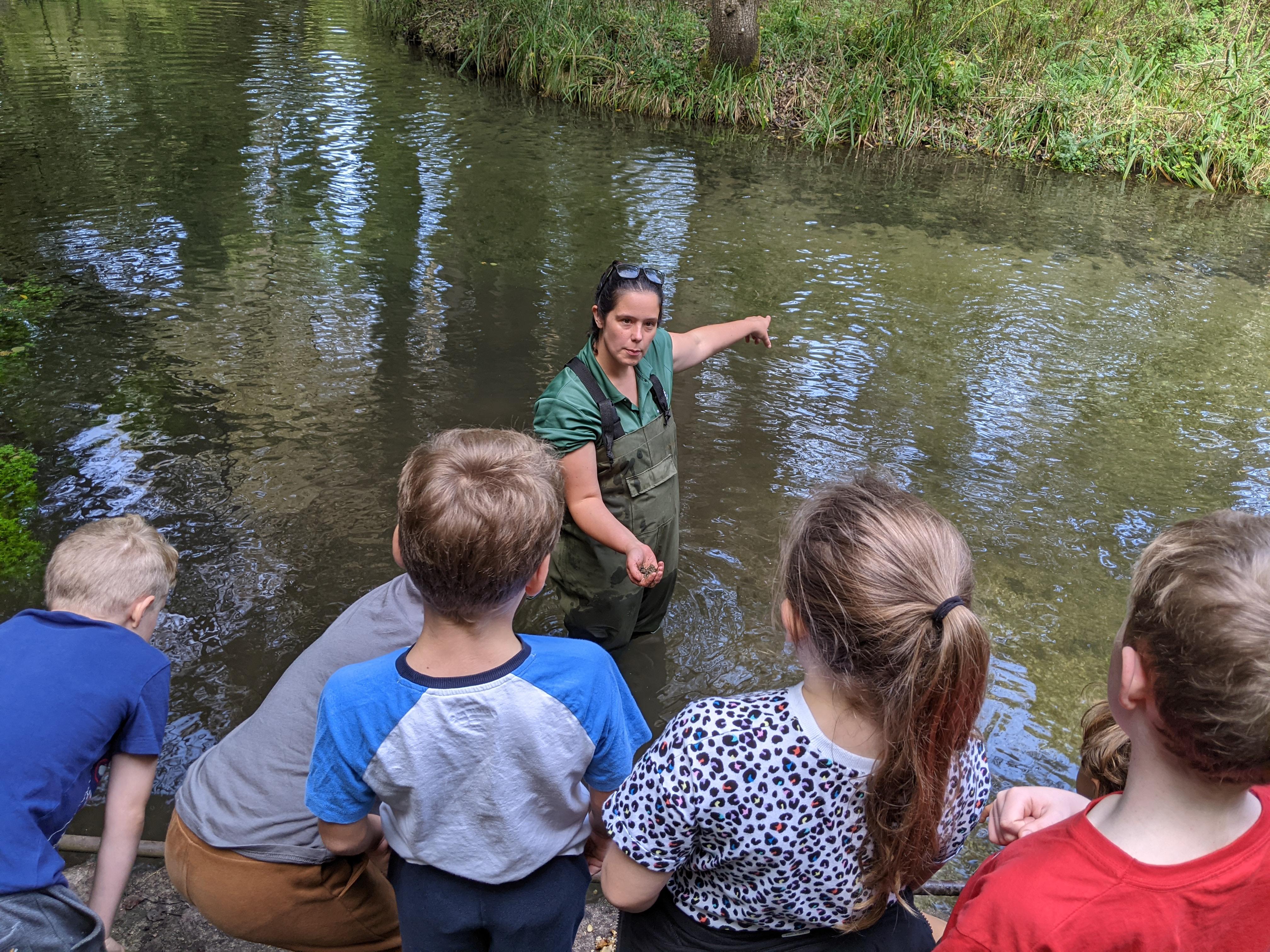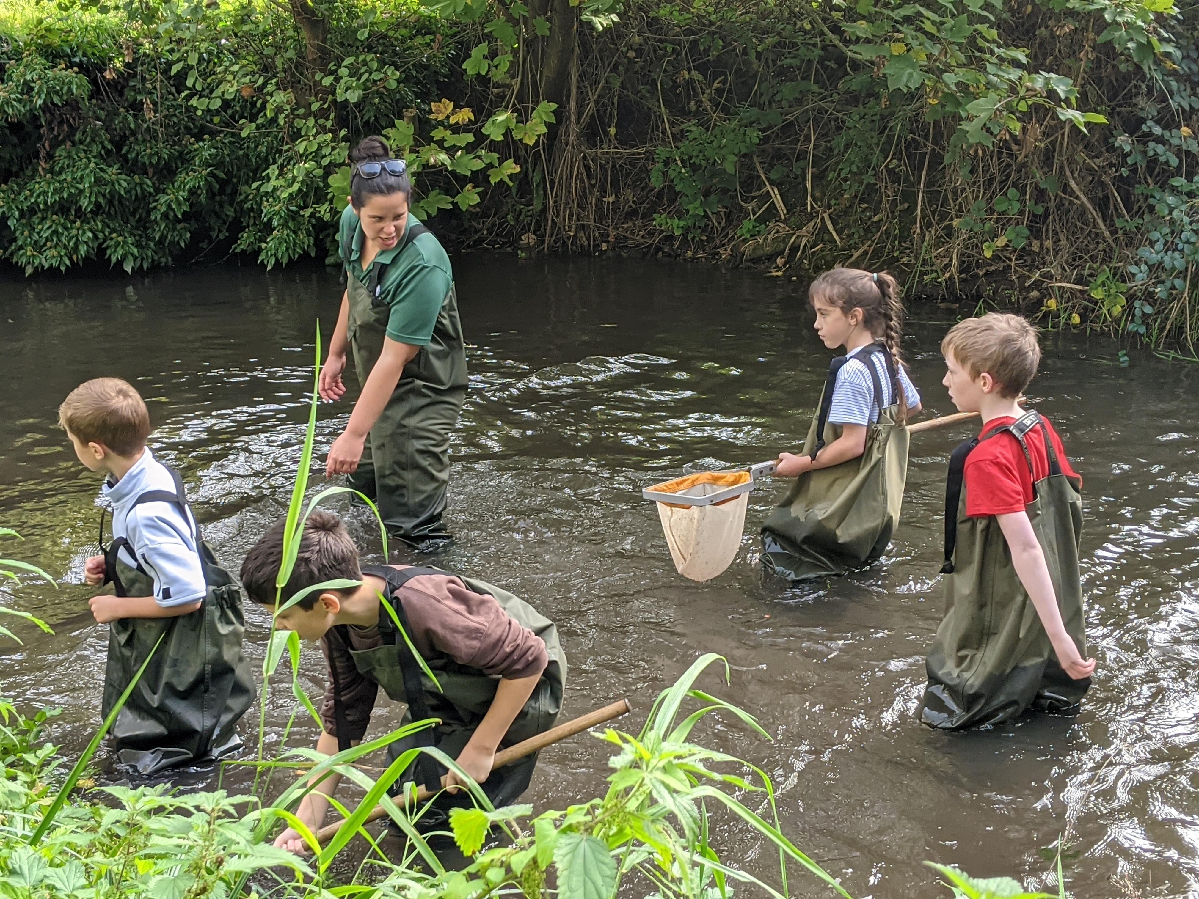 Wading along the chalk bed river