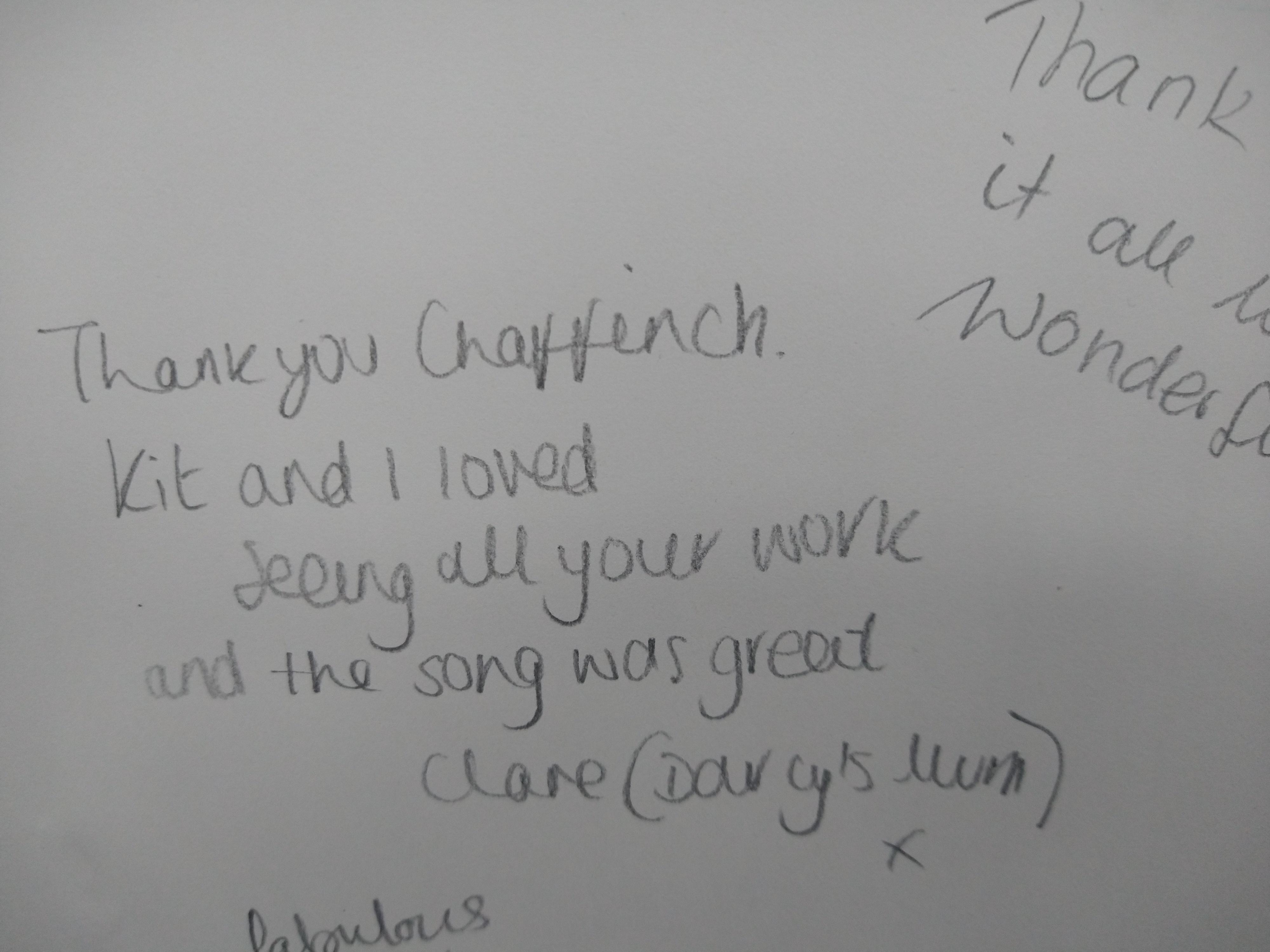 The Chaffinch team would like to thank you all wholeheartedly for your love and support this autumn term and for the kind gifts, cards and messages of appreciation. It means a lot to know that you appreciate us.