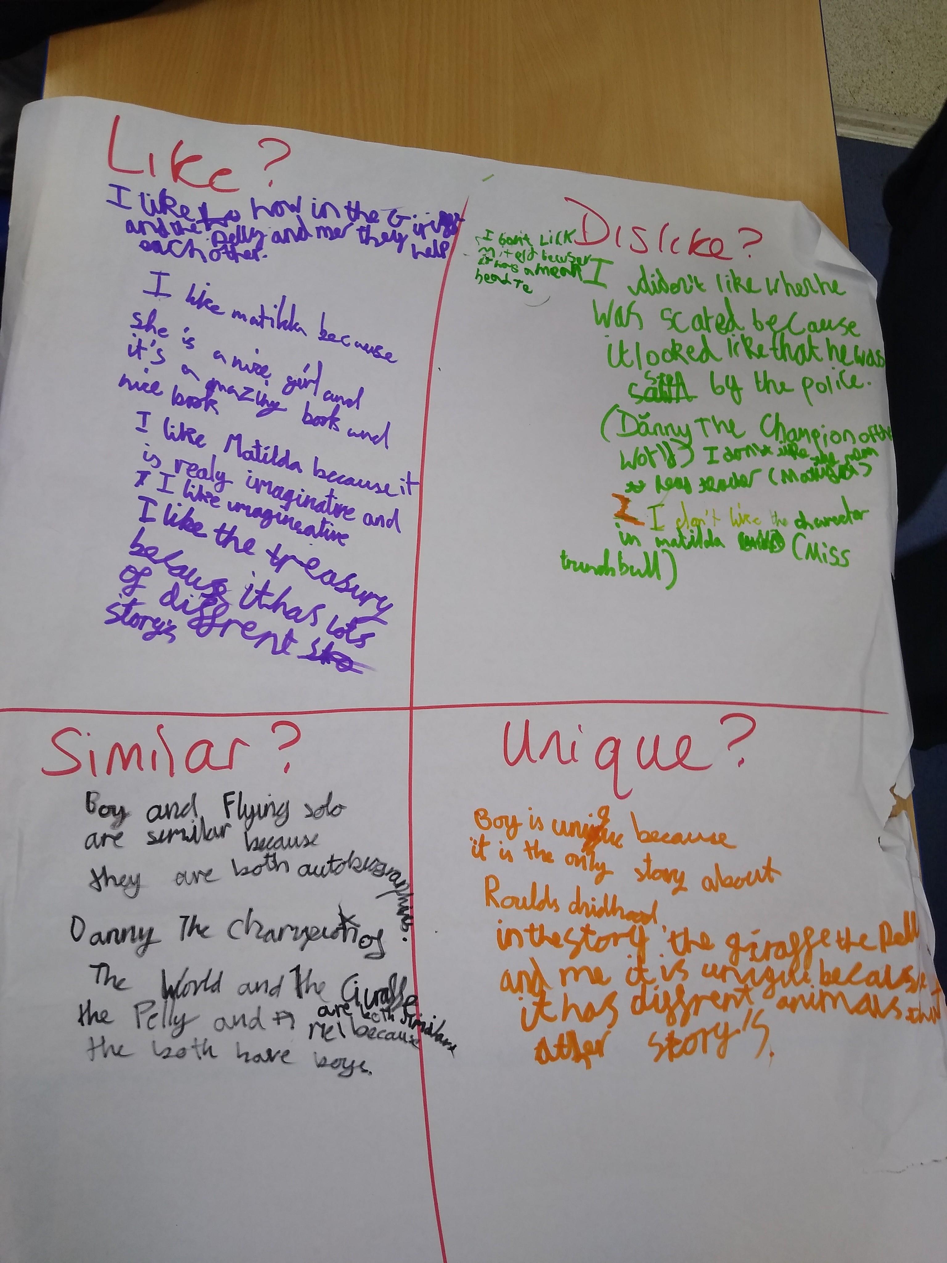 We worked together to explore lots of different books and express our opinions. We looked at our likes and dislikes, what was similar, what was unique and encouraged each other to try new new books.
