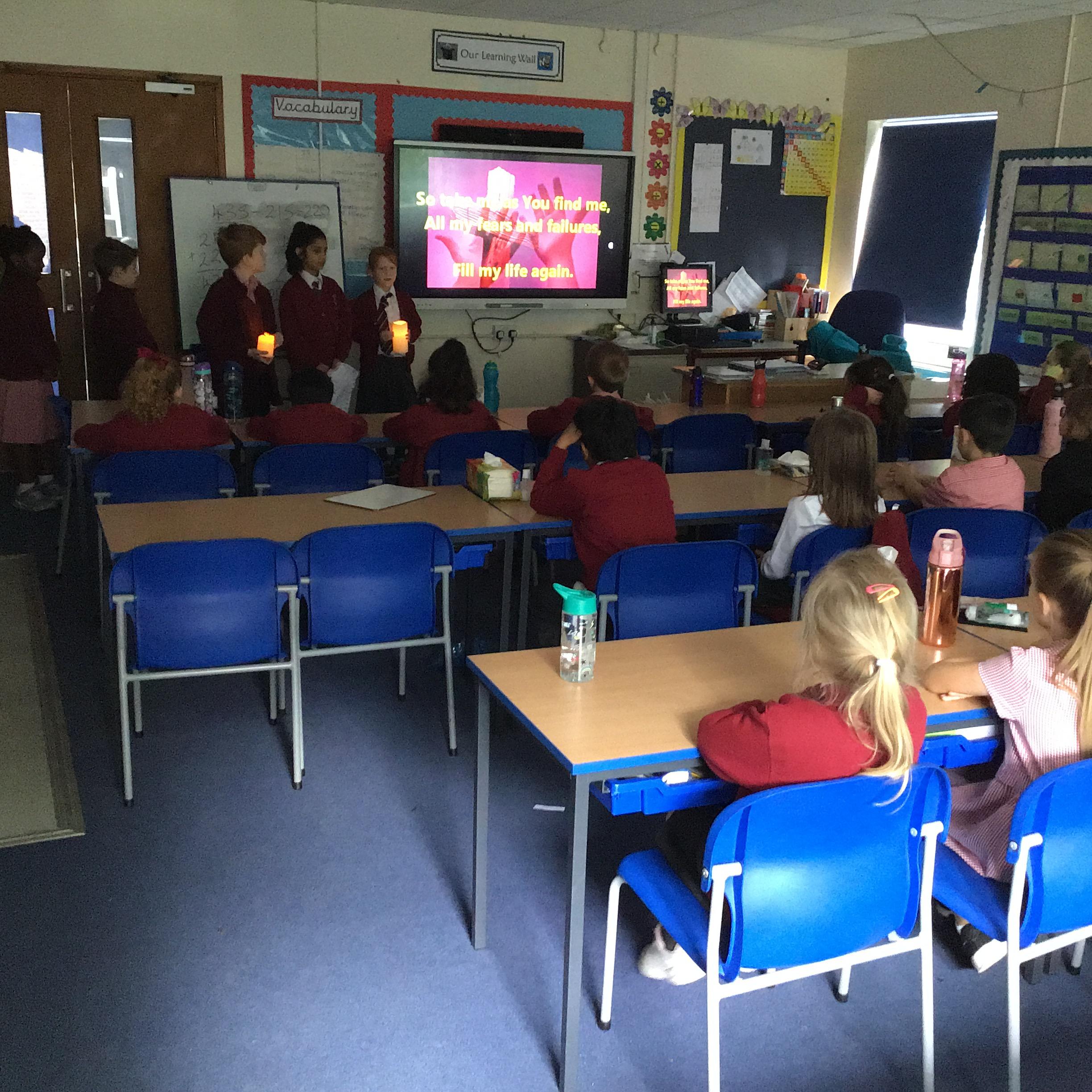 Today we enjoyed a pilgrimage around the school grounds as part of our RE learning. For photographs and more information, please click the link then scroll down to RE photographs.