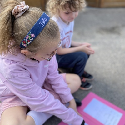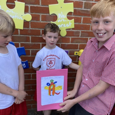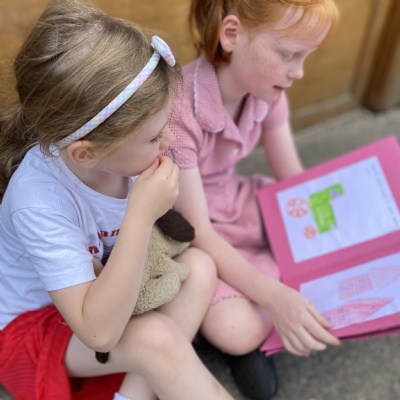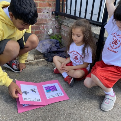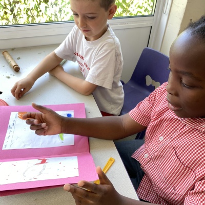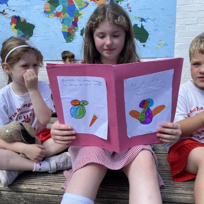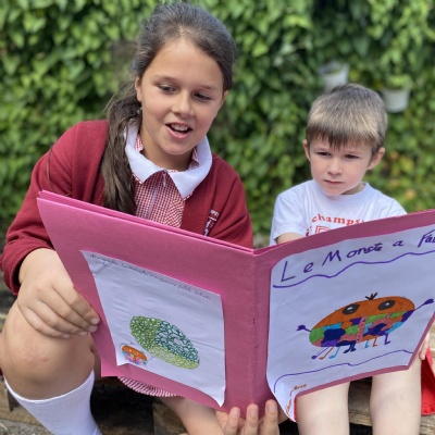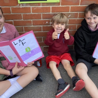Goldfinch class loved sharing the French books they had written ( Le Monstre a Faim ) with the children in Rosefinch class.