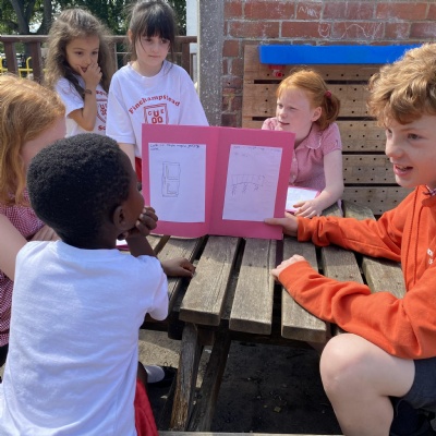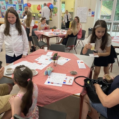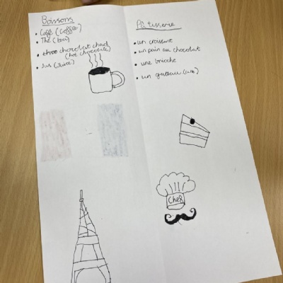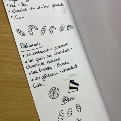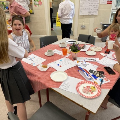 Summer 2022: After two years of Covid restrictions, Year 5 and 6 were excited to be hosting the French cafe at the summer open evening. They practised their key phrases and prepared the French menus ready for their customers.