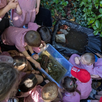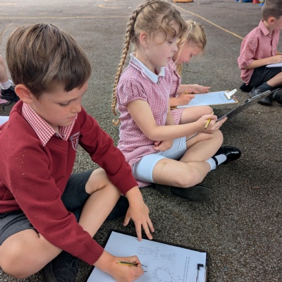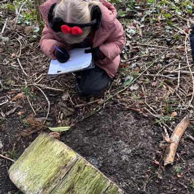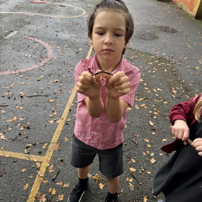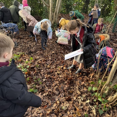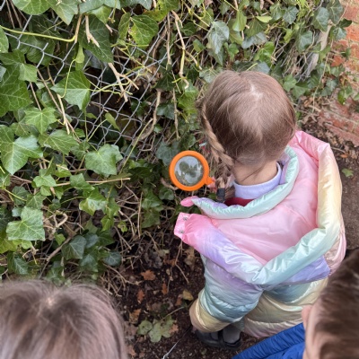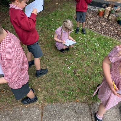 Searching for minibeasts in our school grounds as we thought about their preferred habitats.