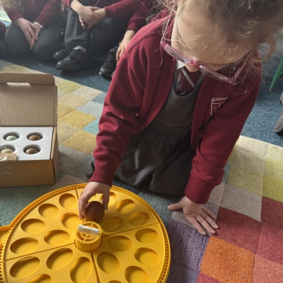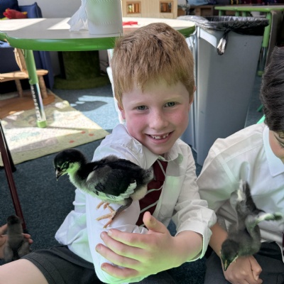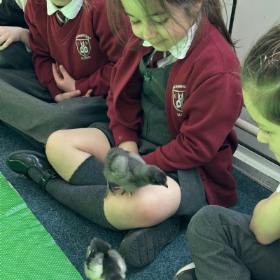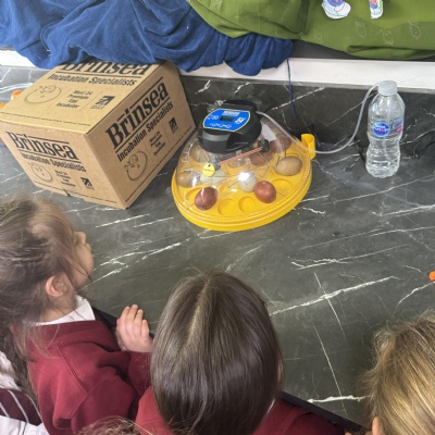 Our chicks hatched! It's been a long three weeks... Look on Bullfinch class page for some videos of them hatching.