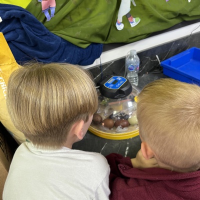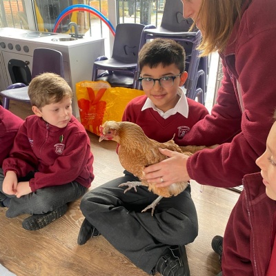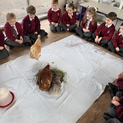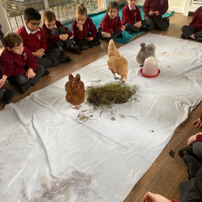 Chickens in school! We continued our science work looking closely at chickens. This also set the scene for our incubation project.