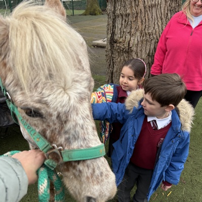 We had two visiting ponies in school today. It helped us with our learning in Science, but so many cross curricular links. A wonderful experience for all to be up close to such large, but very gentle animals