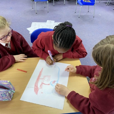 March 2022: How much of the circulatory system can you memorise in 30 seconds? Goldfinch played Memory Tag in teams to replicate a diagram of the circulatory system which they then created as 3D information posters. It really helped them to write their explanations in English.
